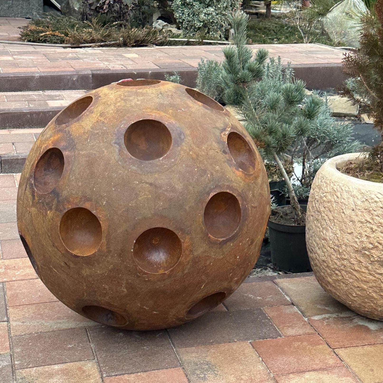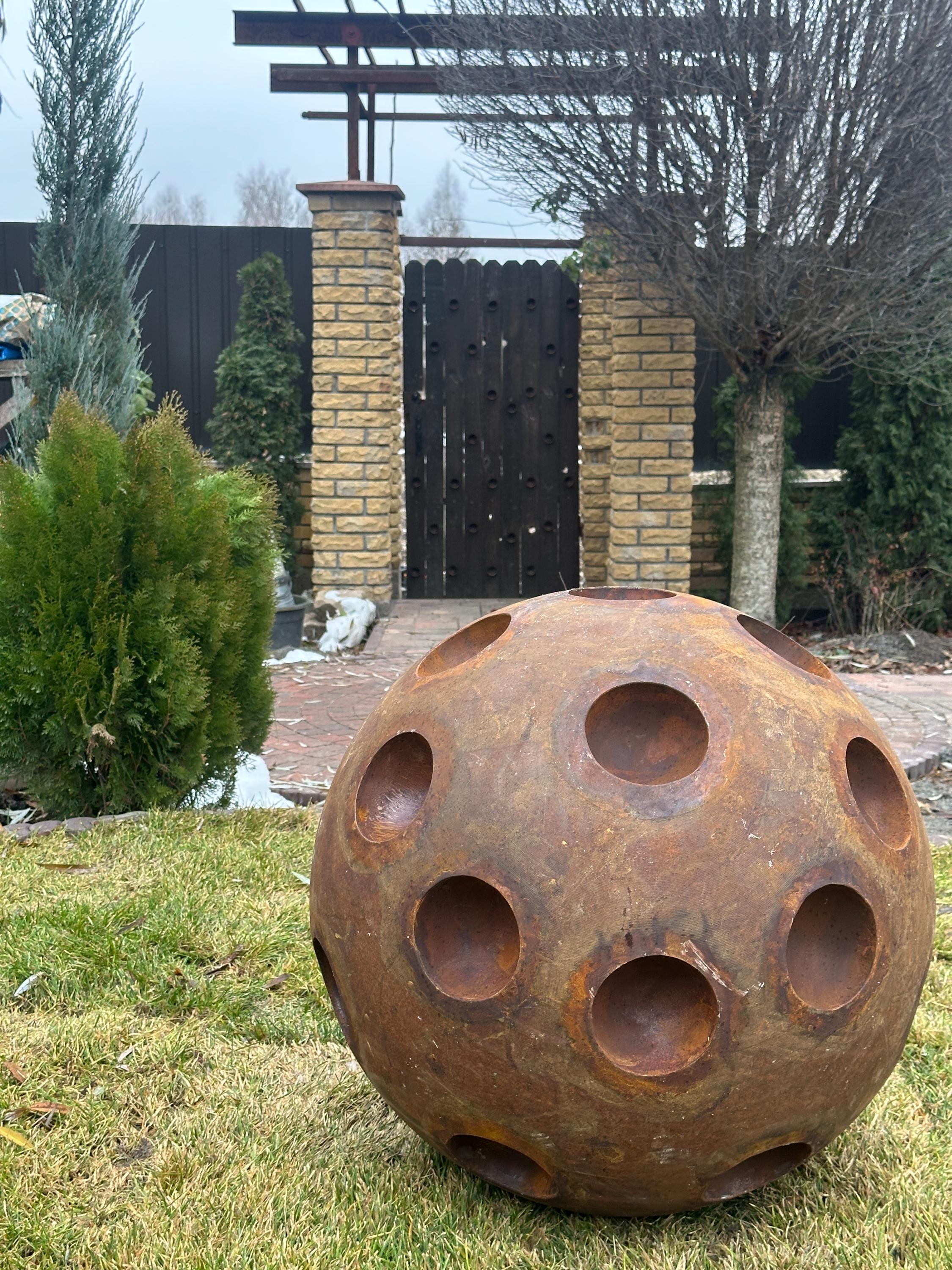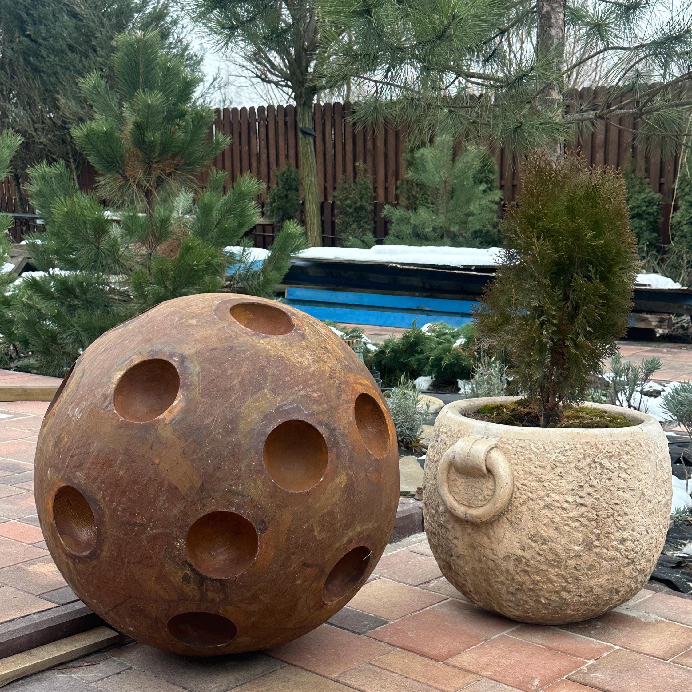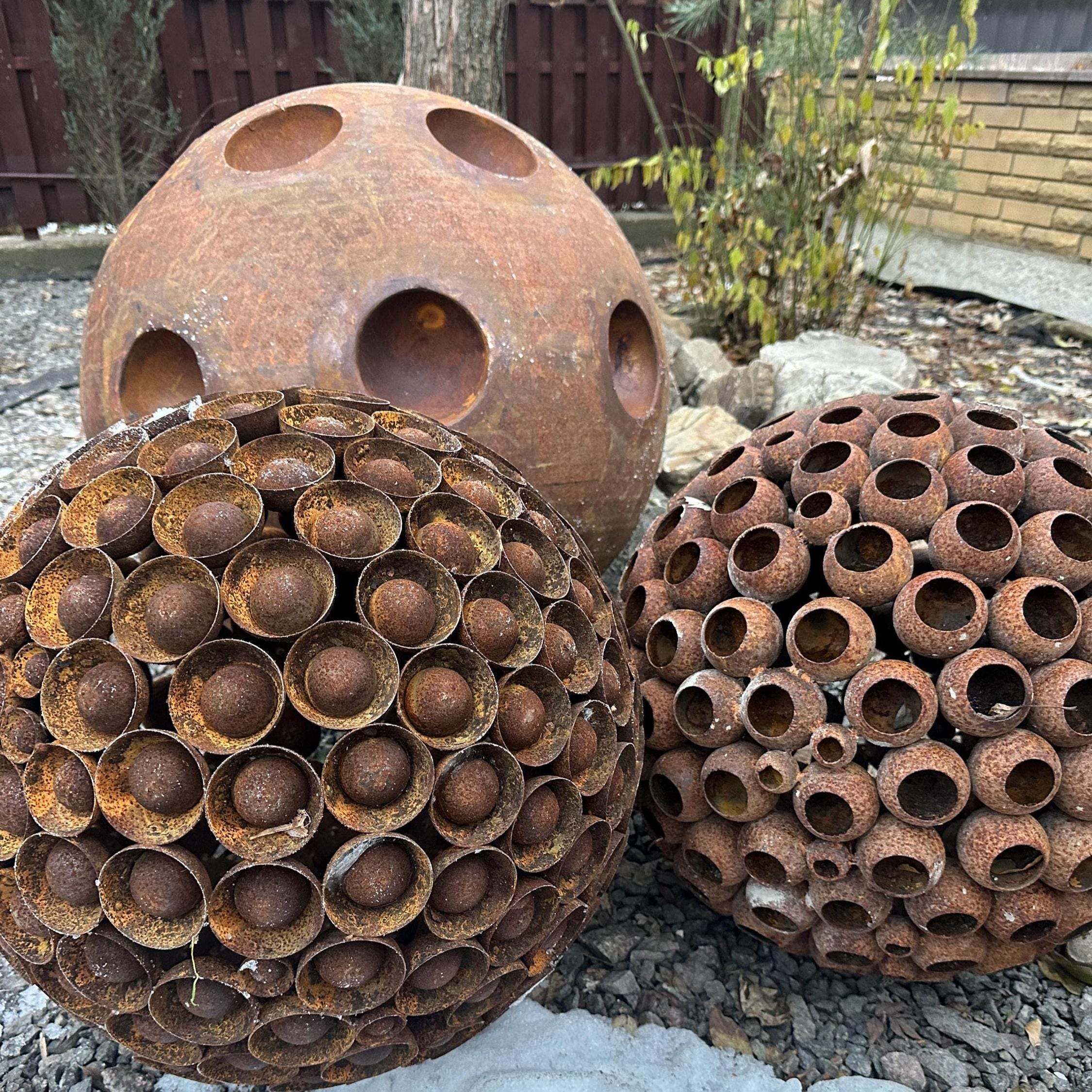 - 27" (67 cm) rusty metal ball;
