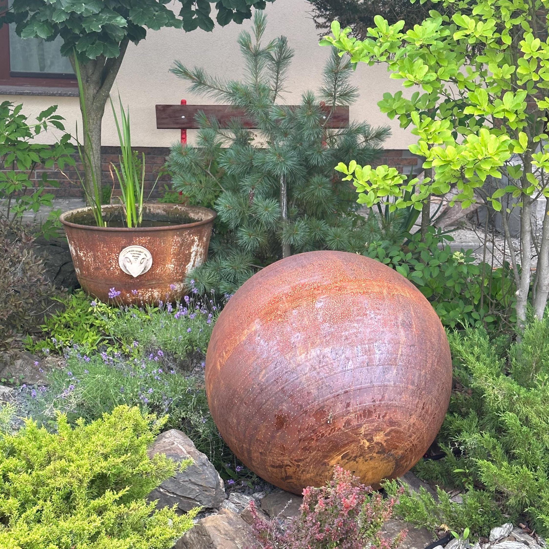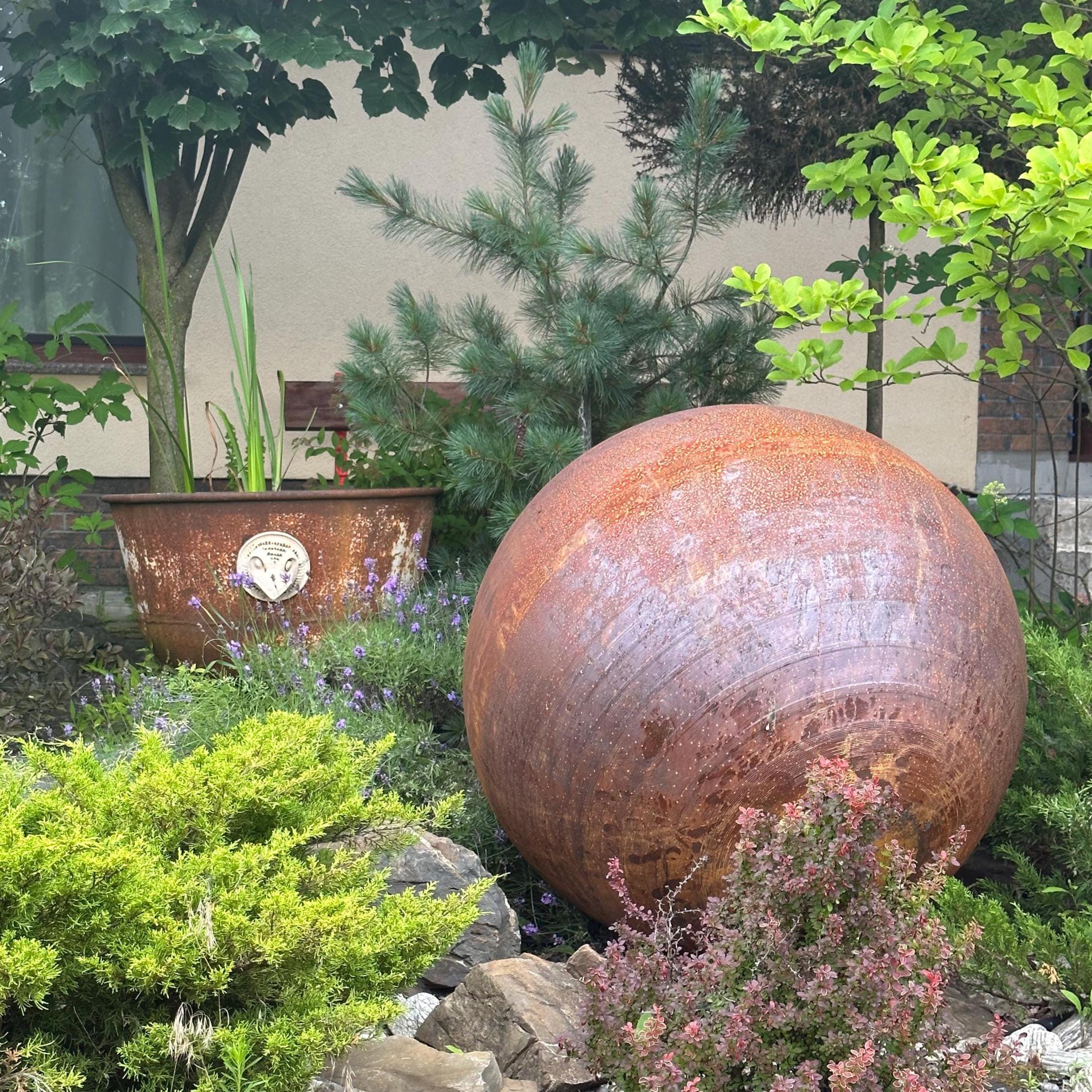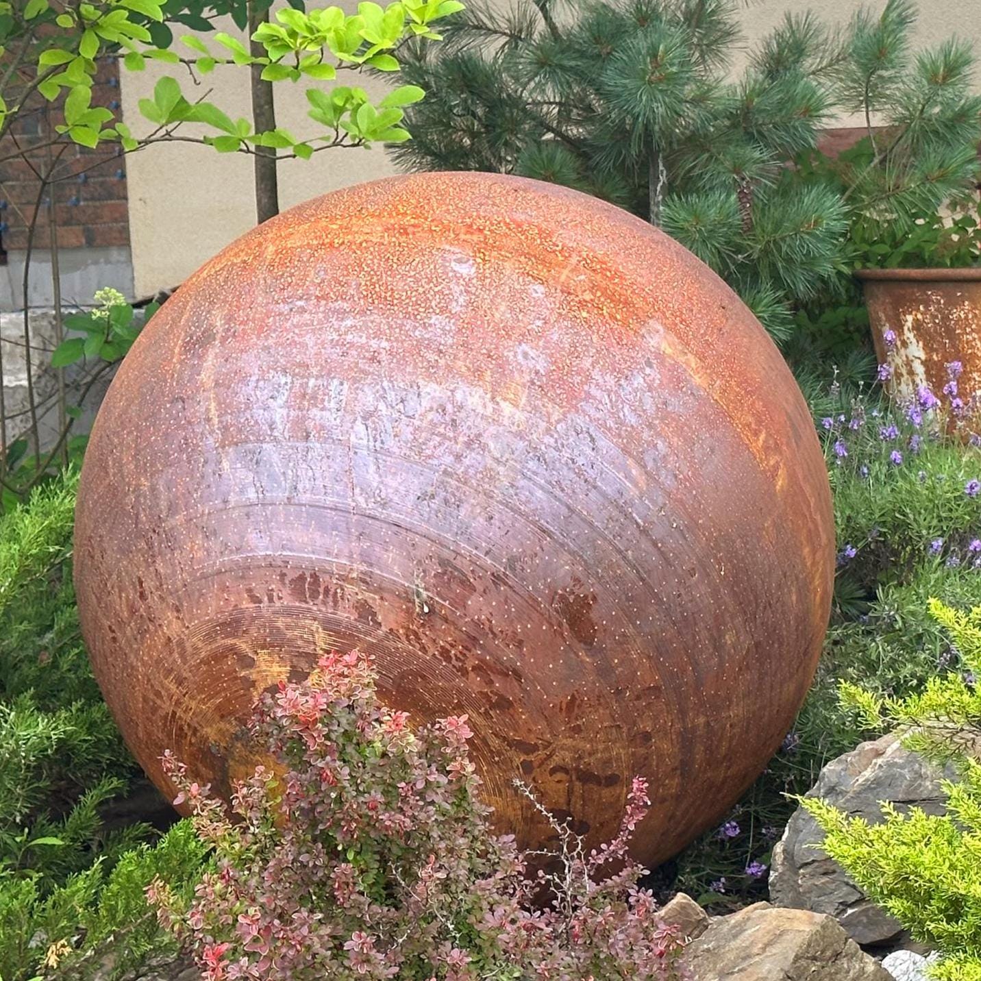Add tranquility and comfort to your outdoor space with our large rusty metal sphere for Zen gardens. This large spherical sculpture will give your garden a modern and minimalist charm, creating a calm and meditative atmosphere. Made from high-quality metal, the sphere has a rustic, weathered finish that creates a natural and organic look. Place it in your garden or patio and watch as the ball takes on a beautiful appearance over time. This ball blends perfectly with the surrounding flora, creating a true Zen experience. Use it as the centerpiece of your mini Japanese rock garden or use this sphere to decorate your lawn, garden, or patio throughout the year. It also makes a great conversation piece in your living room or office, a unique way to bring nature into your home.