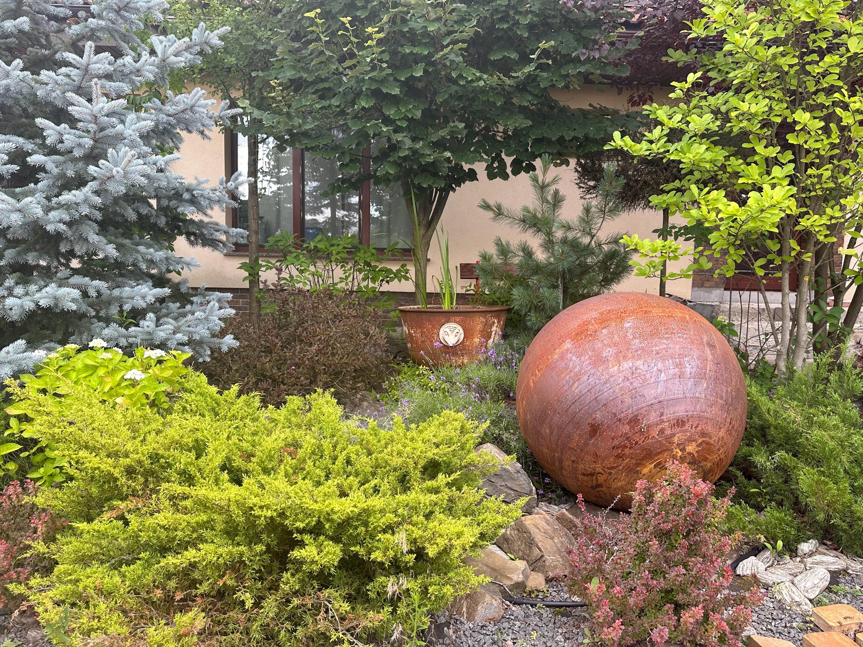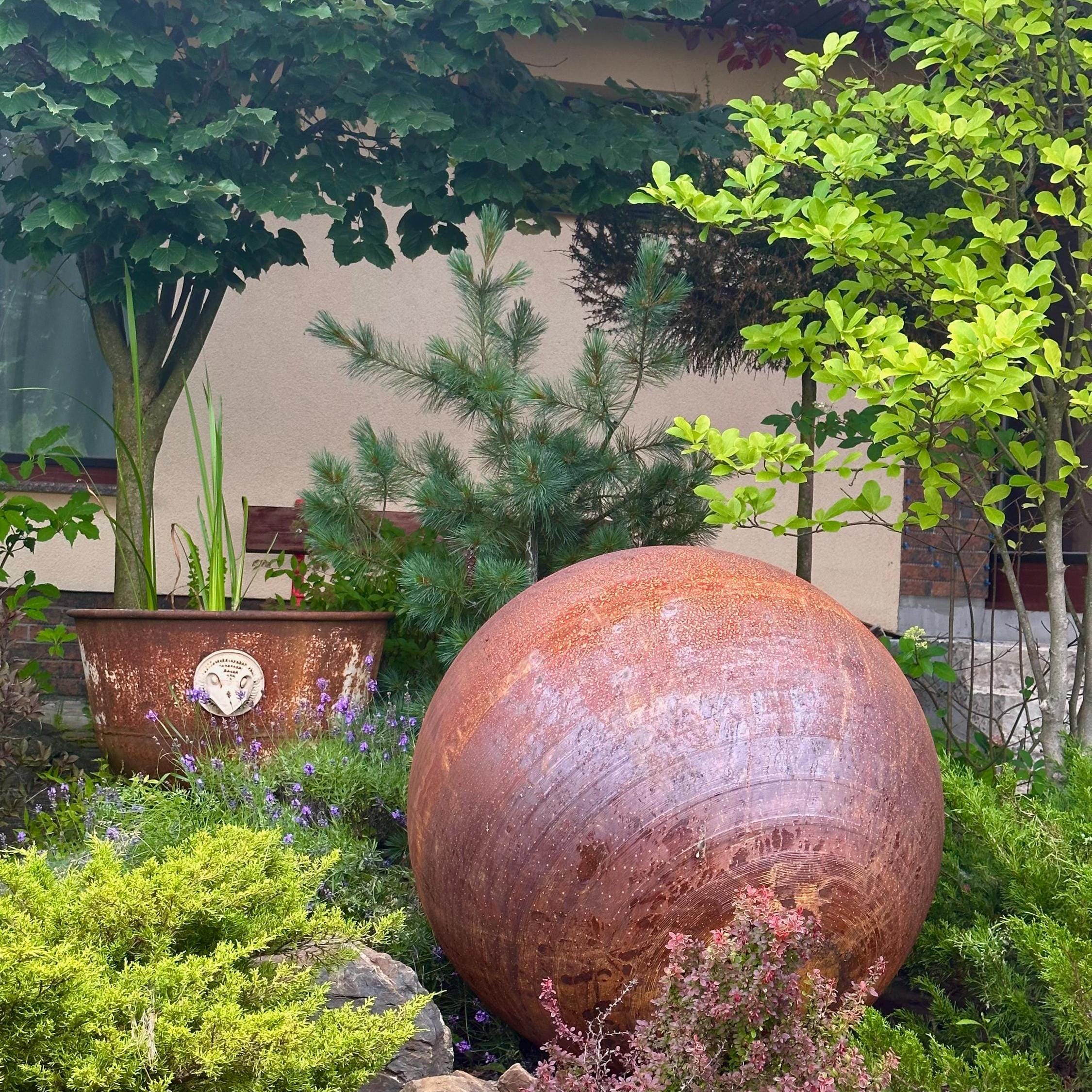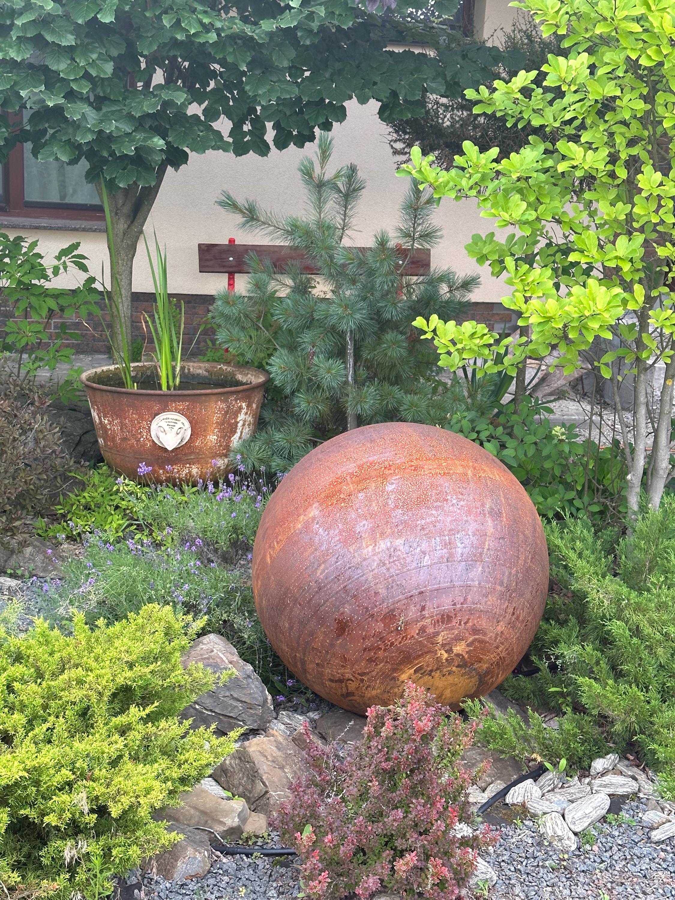 Add tranquility and comfort to your outdoor space with our large rusty metal sphere for Zen gardens. This large spherical sculpture will give your garden a modern and minimalist charm, creating a calm and meditative atmosphere. Made from high-quality metal, the sphere has a rustic, weathered finish that creates a natural and organic look. Place it in your garden or patio and watch as the ball takes on a beautiful appearance over time. This ball blends perfectly with the surrounding flora, creating a true Zen experience. Use it as the centerpiece of your mini Japanese rock garden or use this sphere to decorate your lawn, garden, or patio throughout the year. It also makes a great conversation piece in your living room or office, a unique way to bring nature into your home.