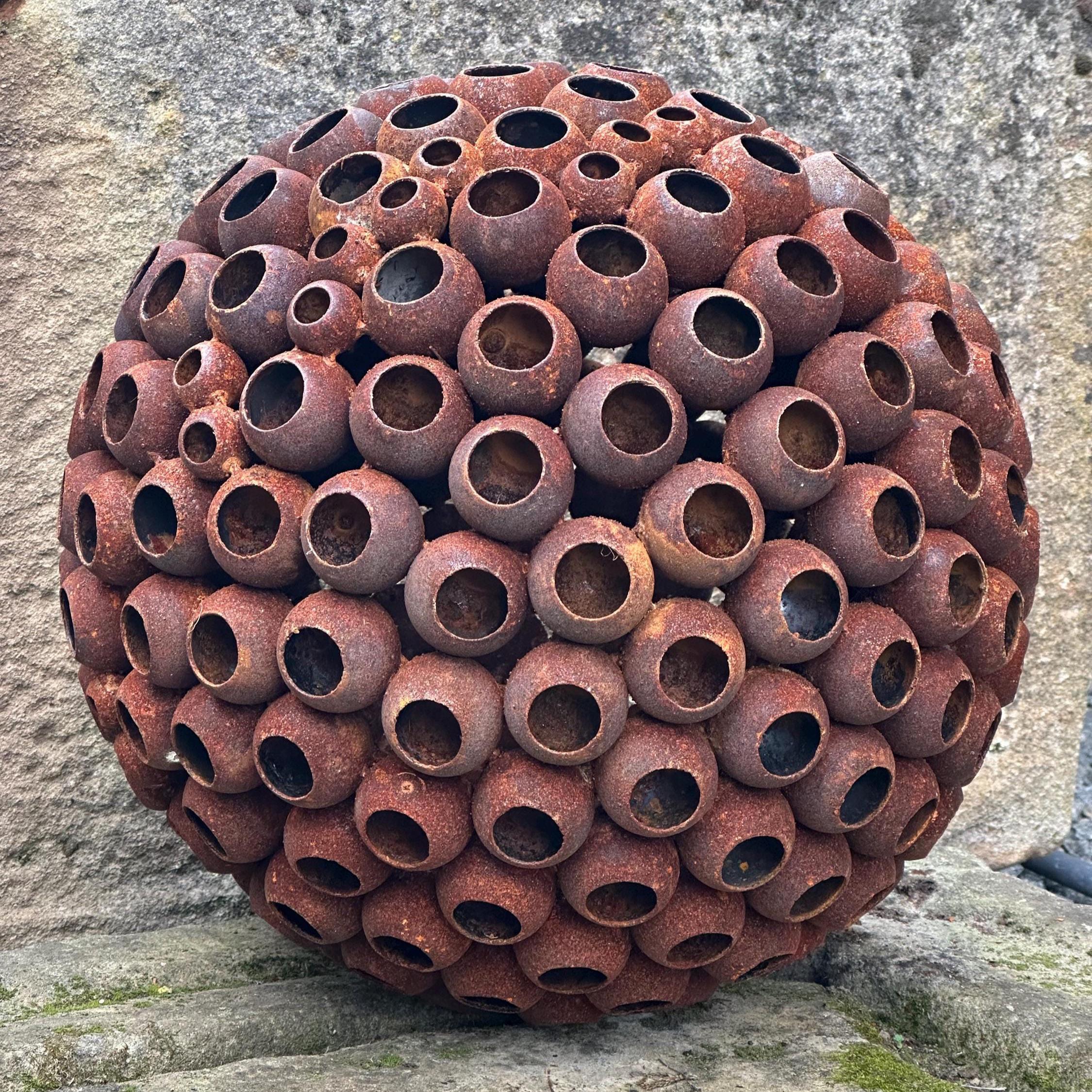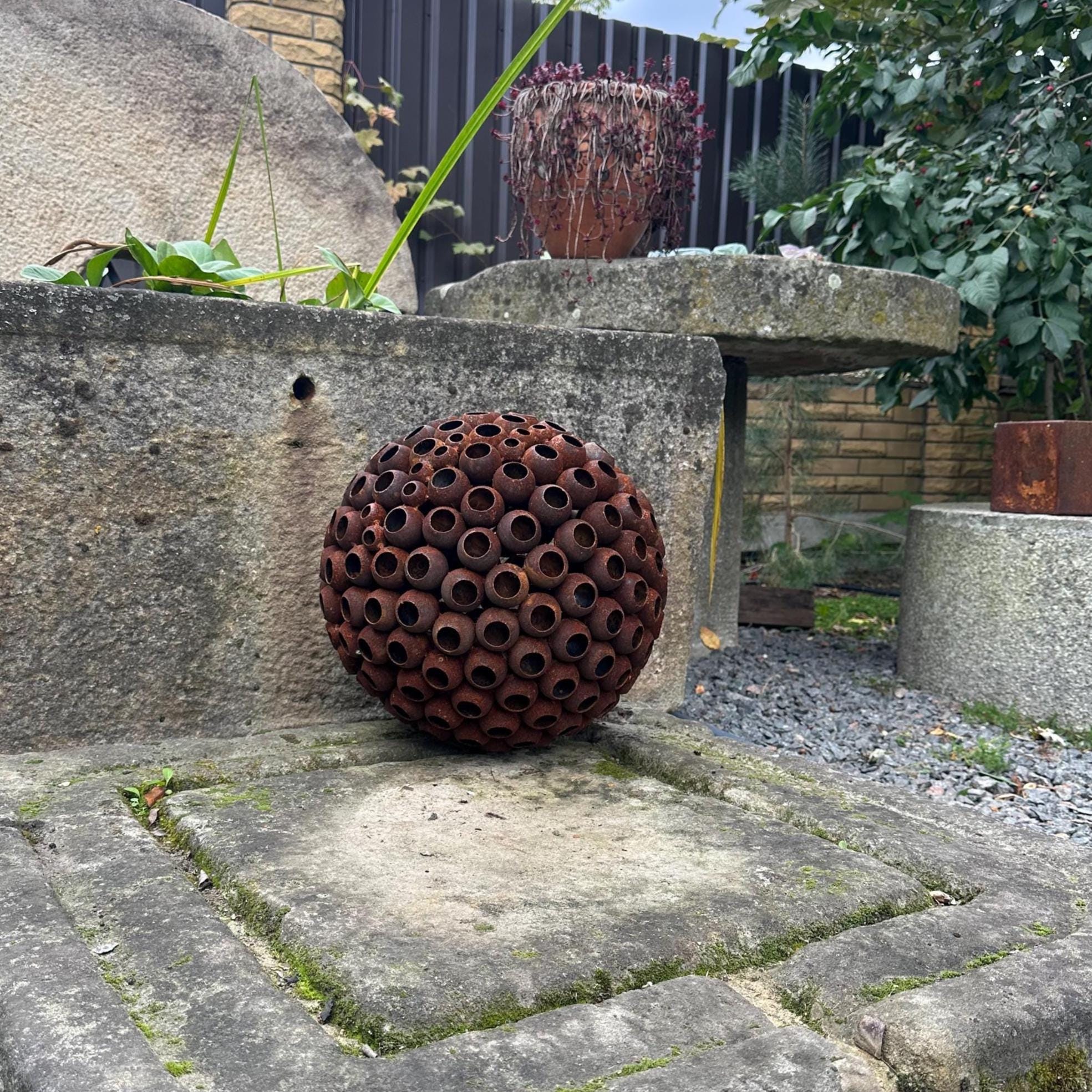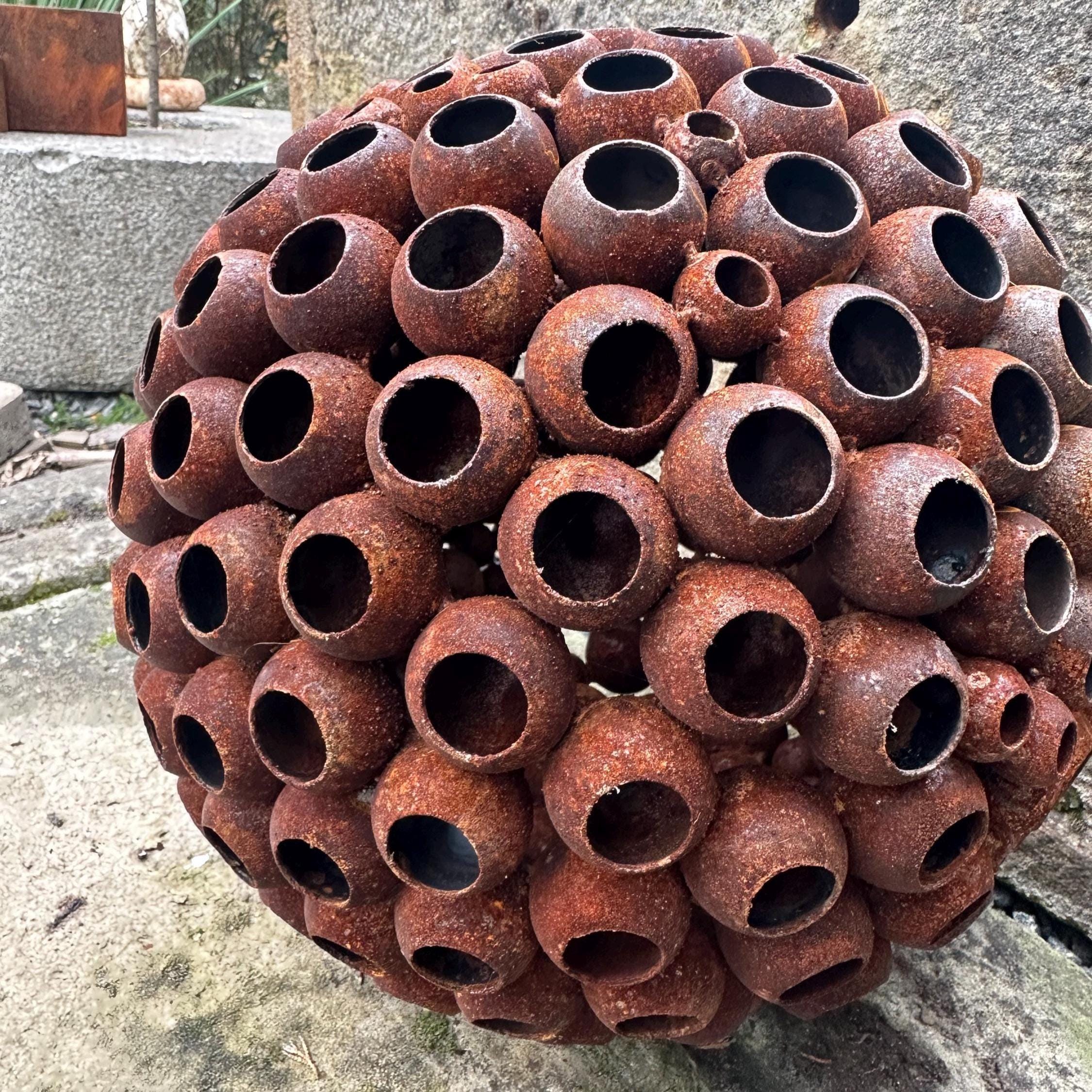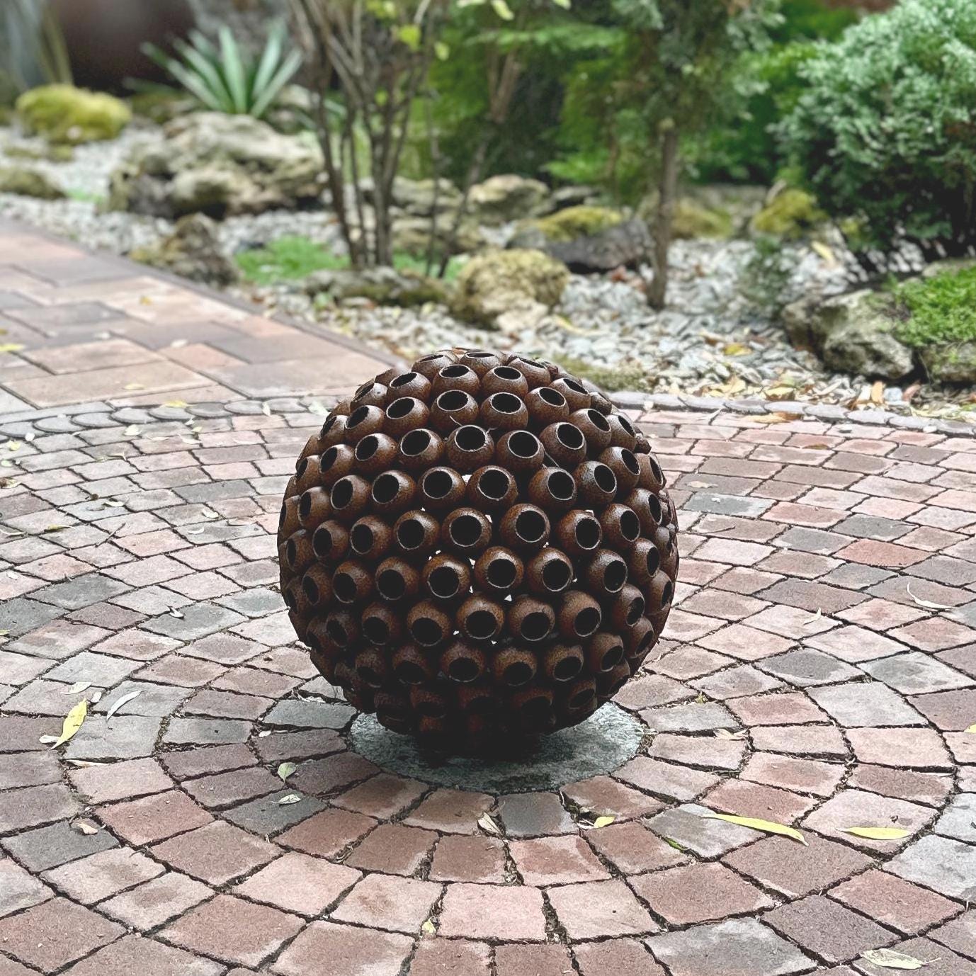 This Big 14” Abstract Rusty metal ball sculpture will place decorative accent in the garden compositions and landscape, create an atmosphere of romance and coziness in your home and become an awesome piece of rusty metal art.