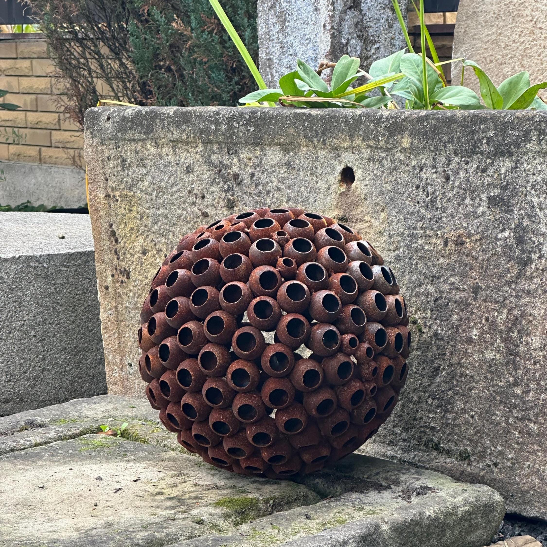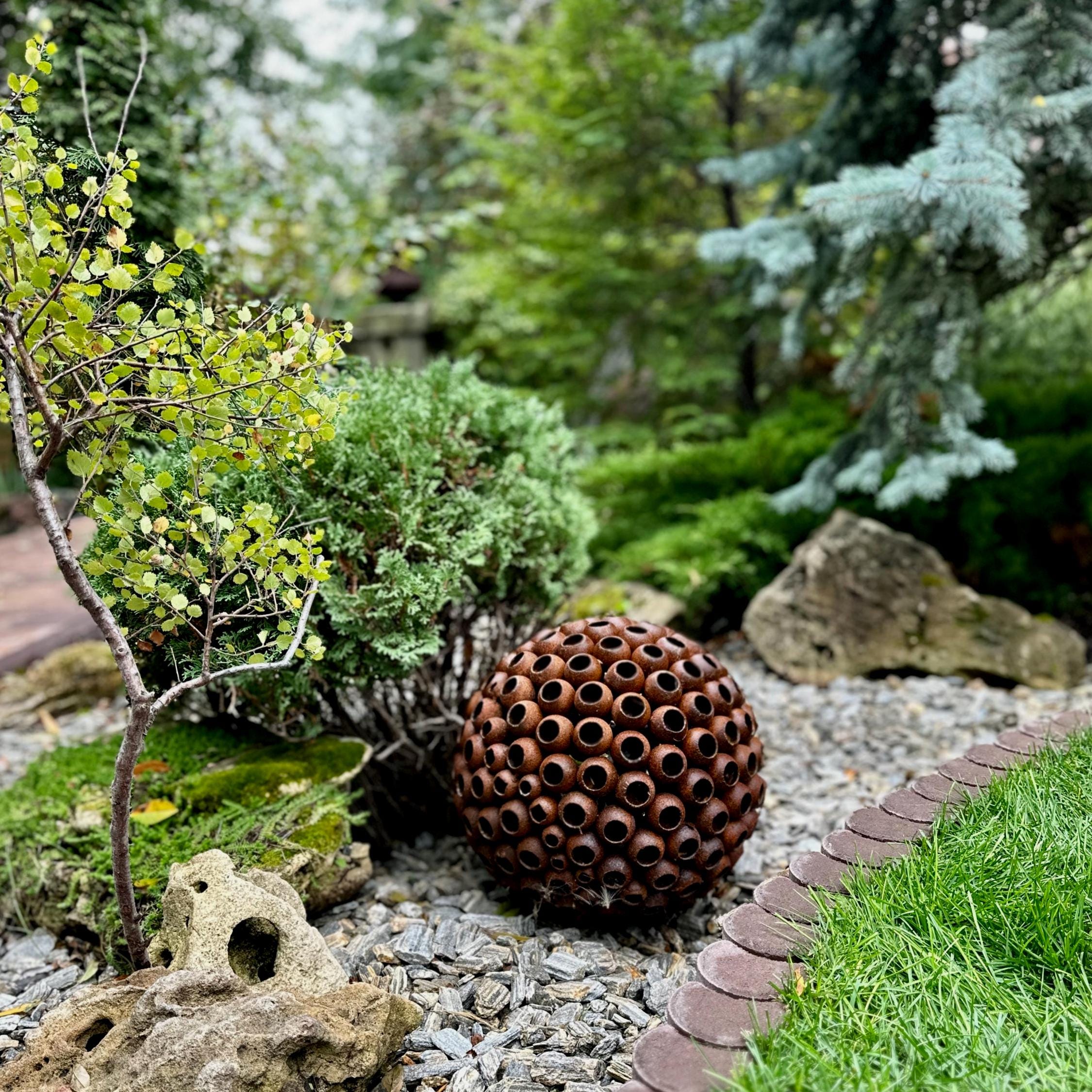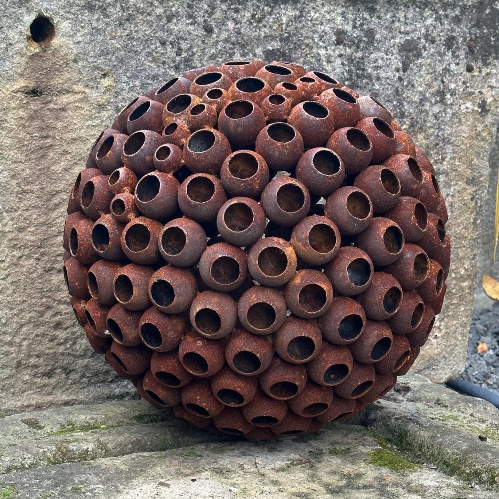 This Big 14” Abstract Rusty metal ball sculpture will place decorative accent in the garden compositions and landscape, create an atmosphere of romance and coziness in your home and become an awesome piece of rusty metal art.