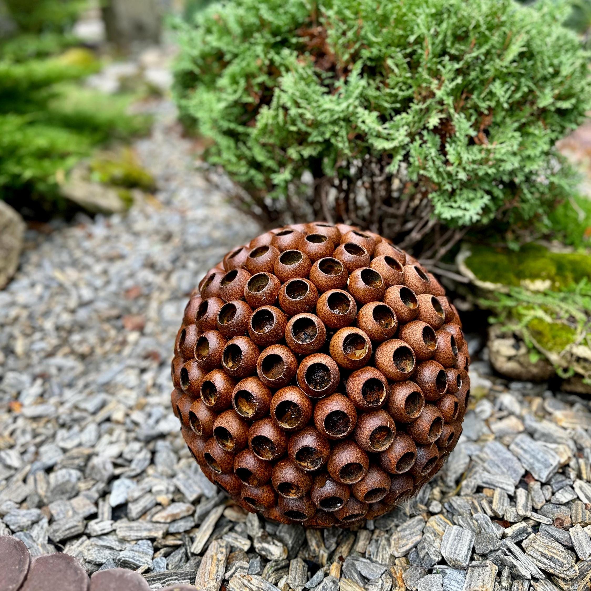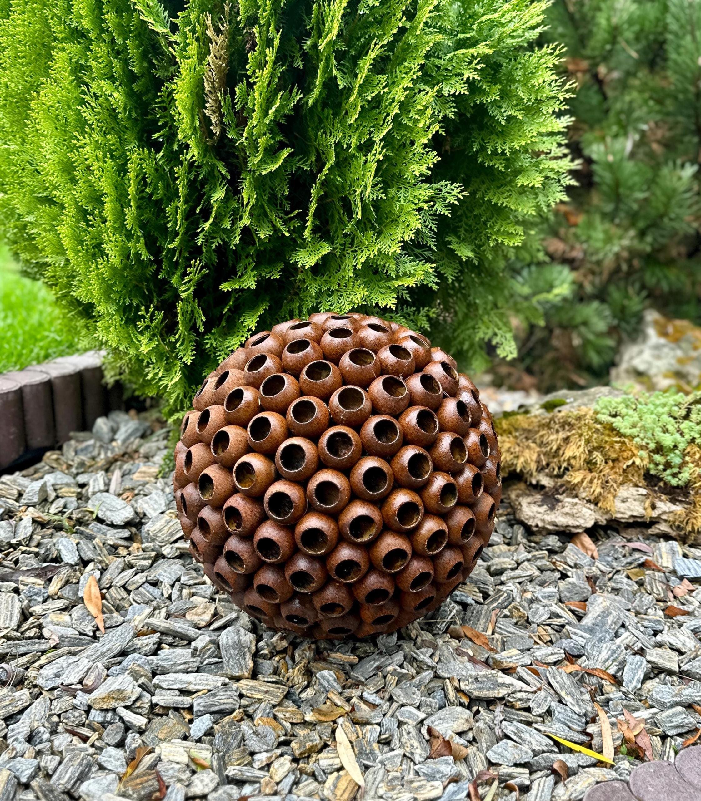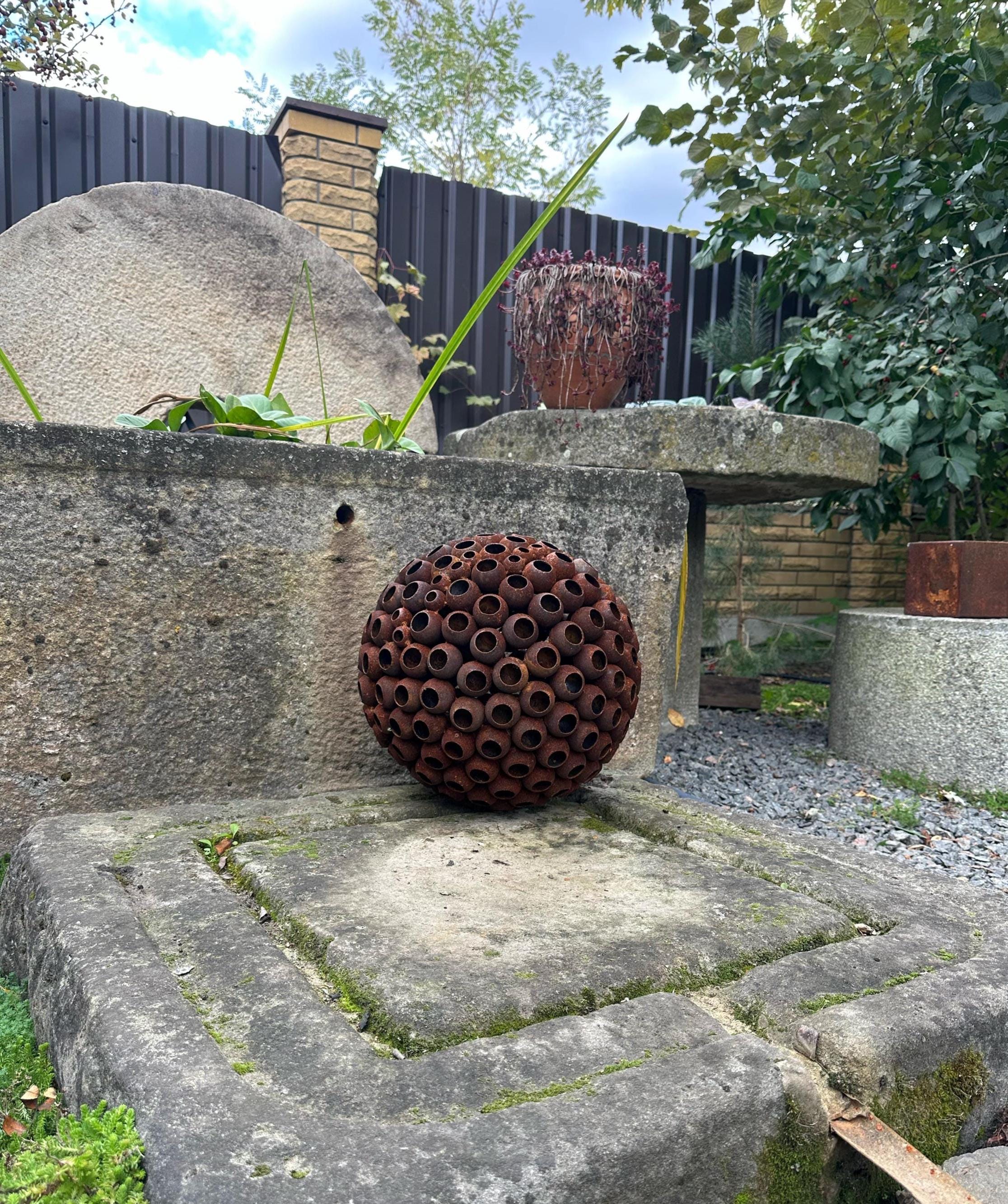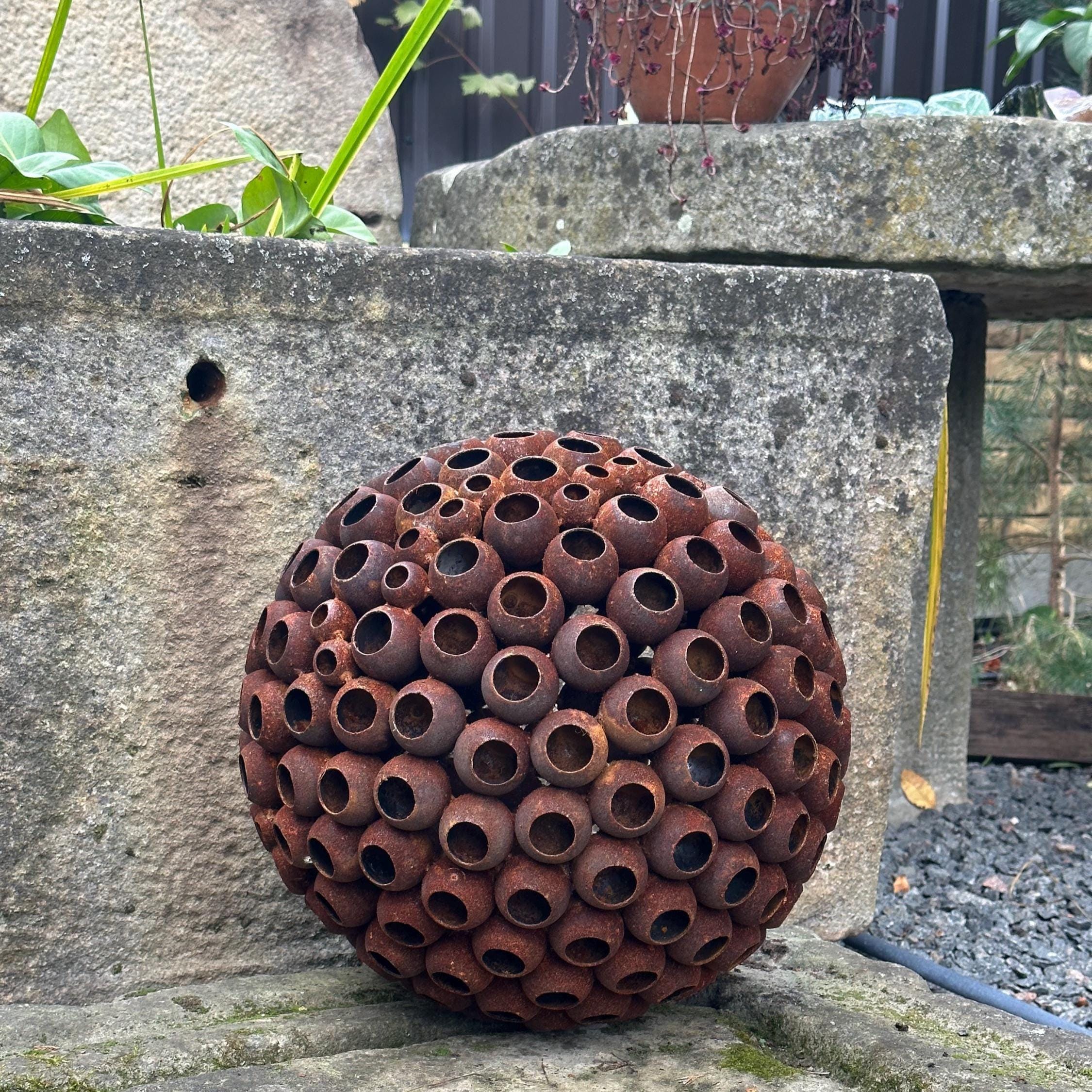 This Big 14” Abstract Rusty metal ball sculpture will place decorative accent in the garden compositions and landscape, create an atmosphere of romance and coziness in your home and become an awesome piece of rusty metal art.