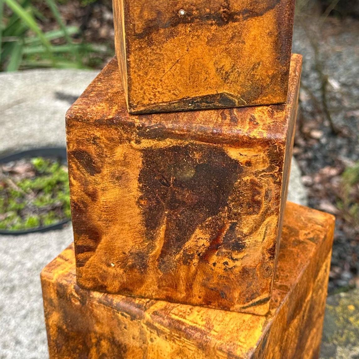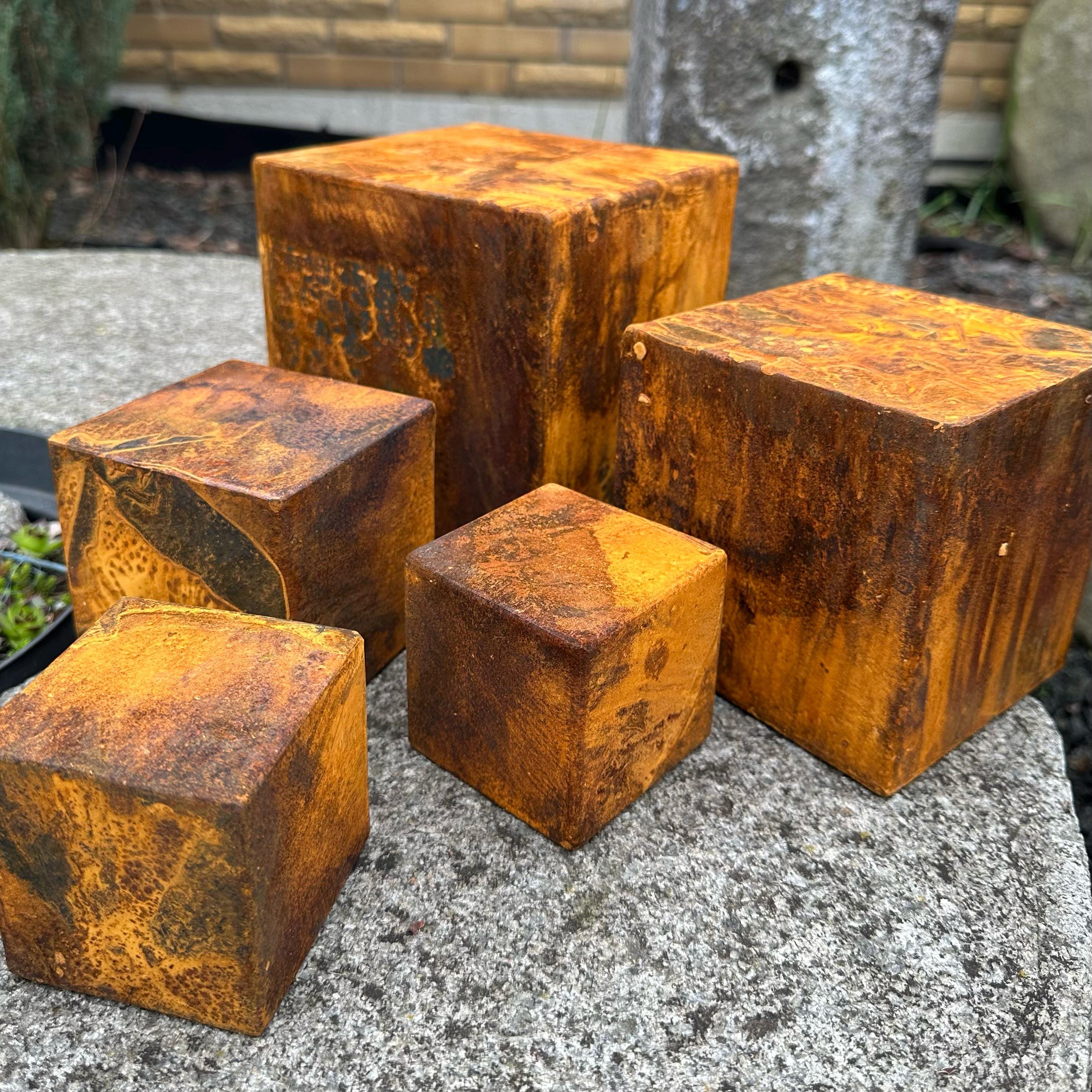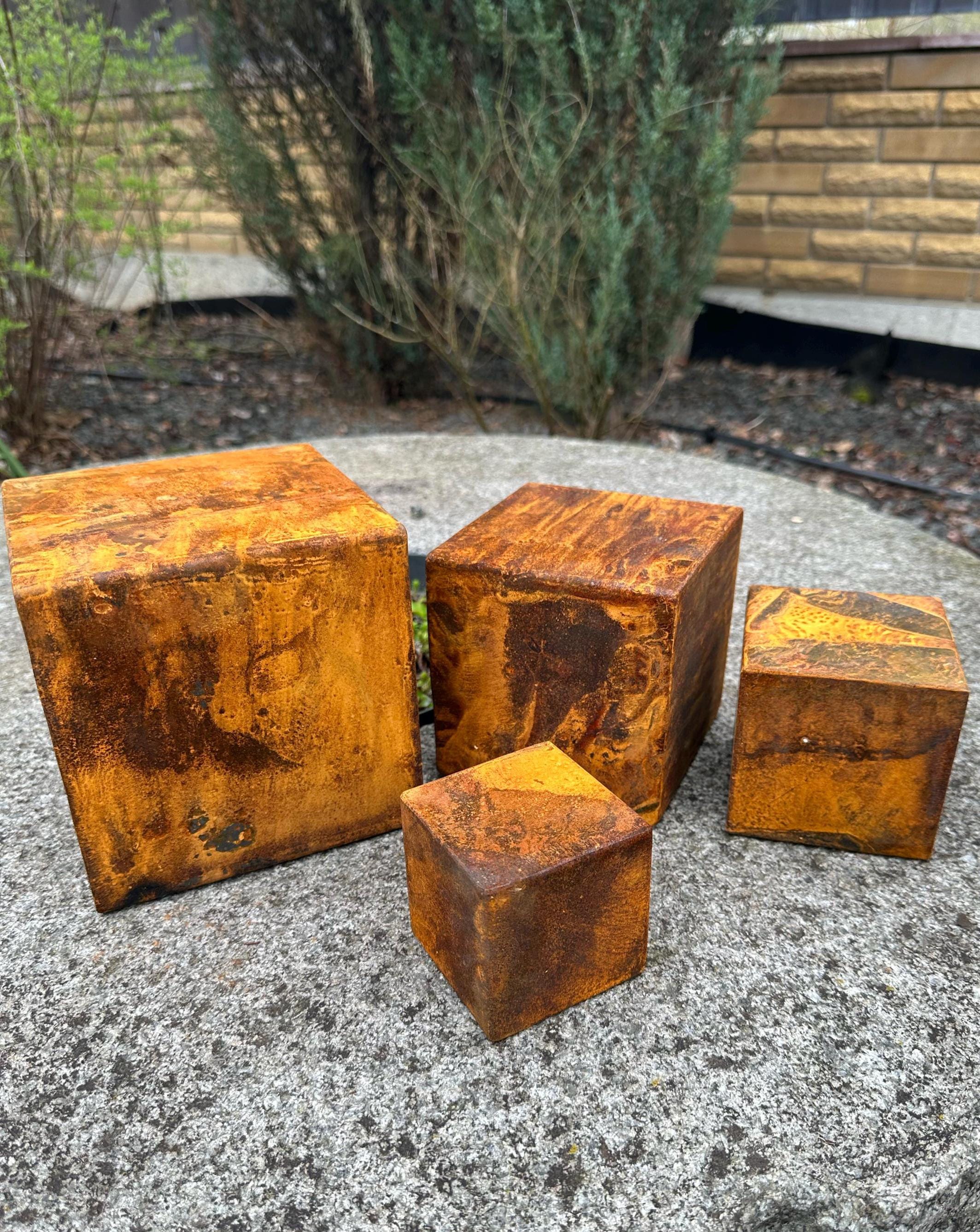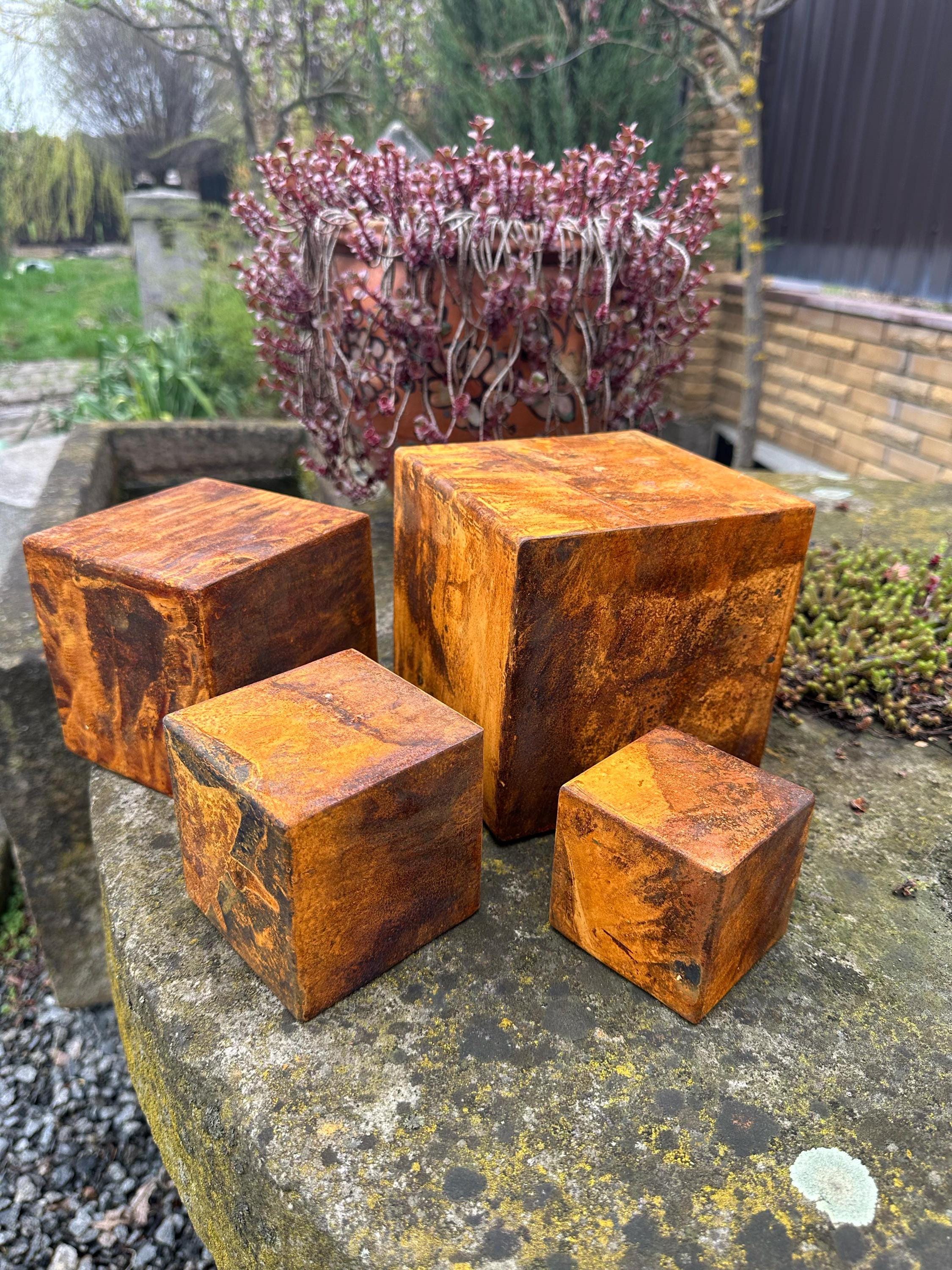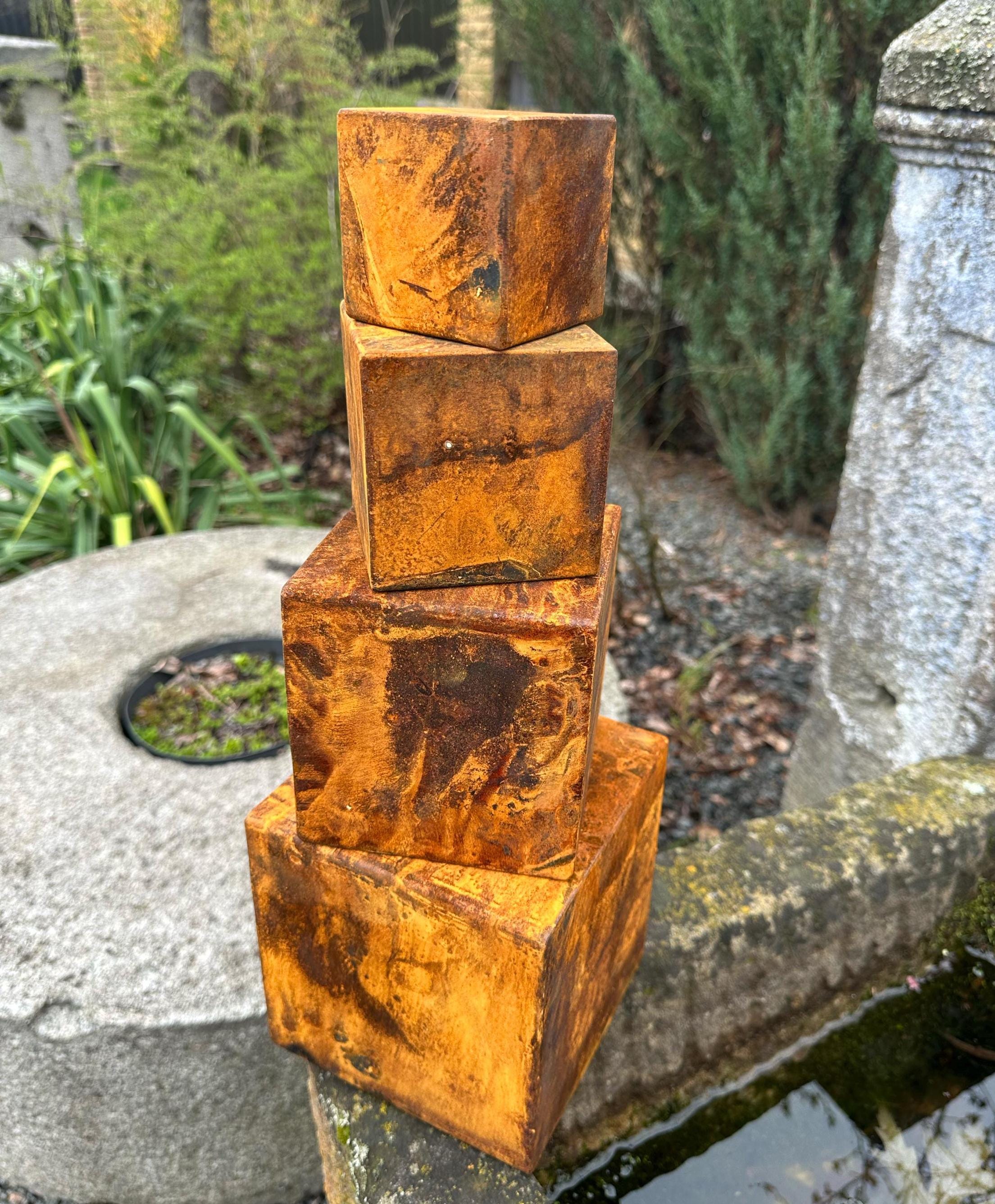 If you're looking for a unique and creative way to enhance your home decor, you have found it! Combining minimalism and rustic style, this exclusive Zen rusty metal cube set is perfect as a meditative sculpture or as stylish decoration elements for your living space.