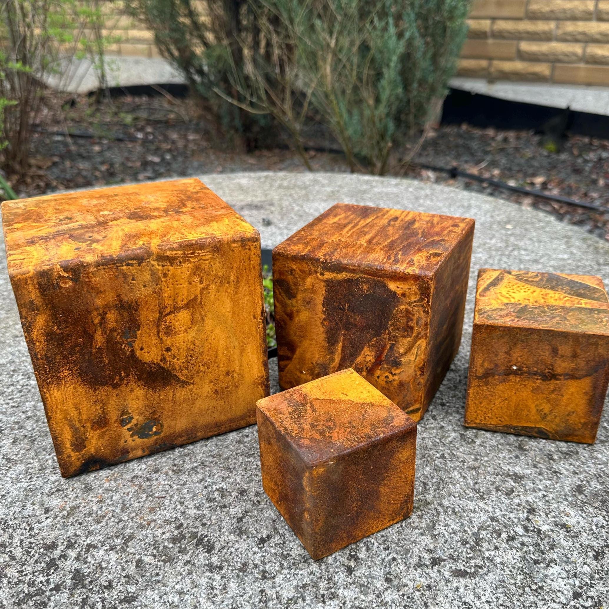 This garden rusty steel cubes are hollow inside.