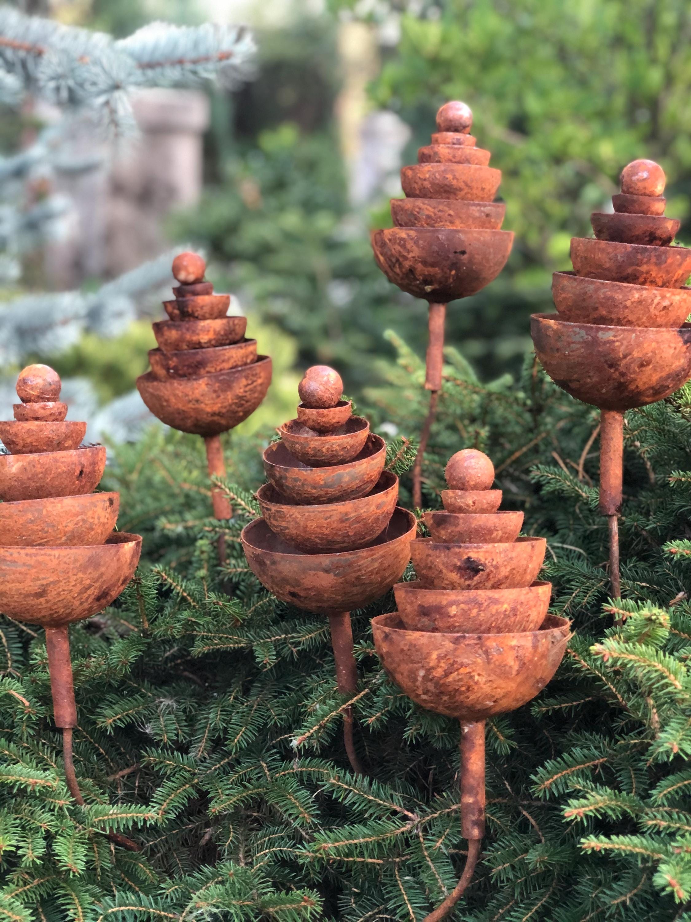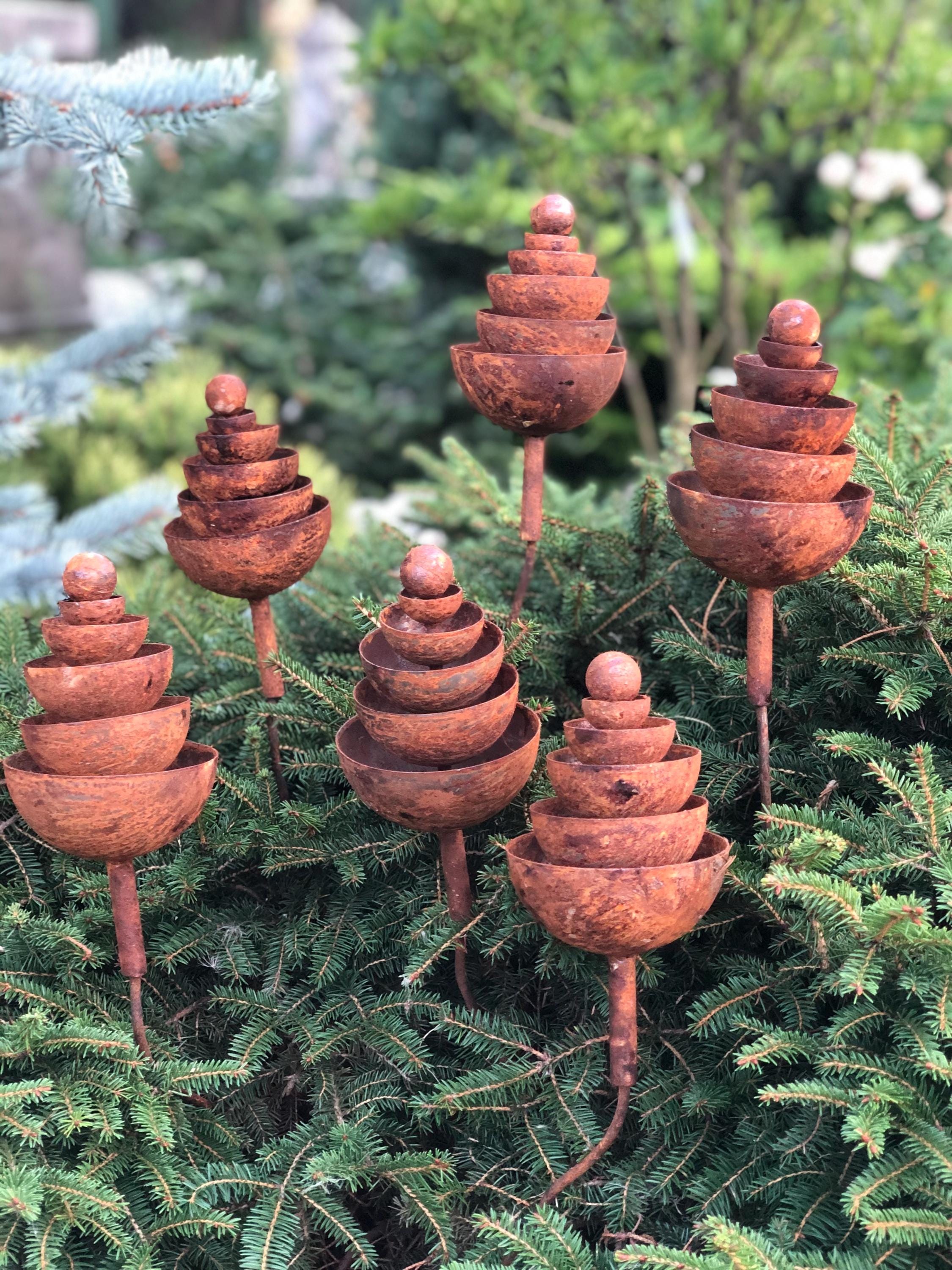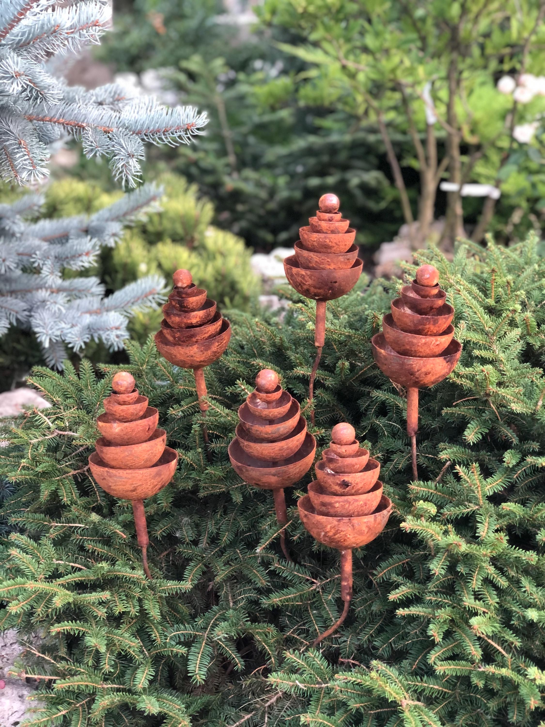- Six rusty metal flowers - 8" (21cm) high and 4" (10cm) in diameter. Each weighs approximately 0.7 lbs (330 gr).