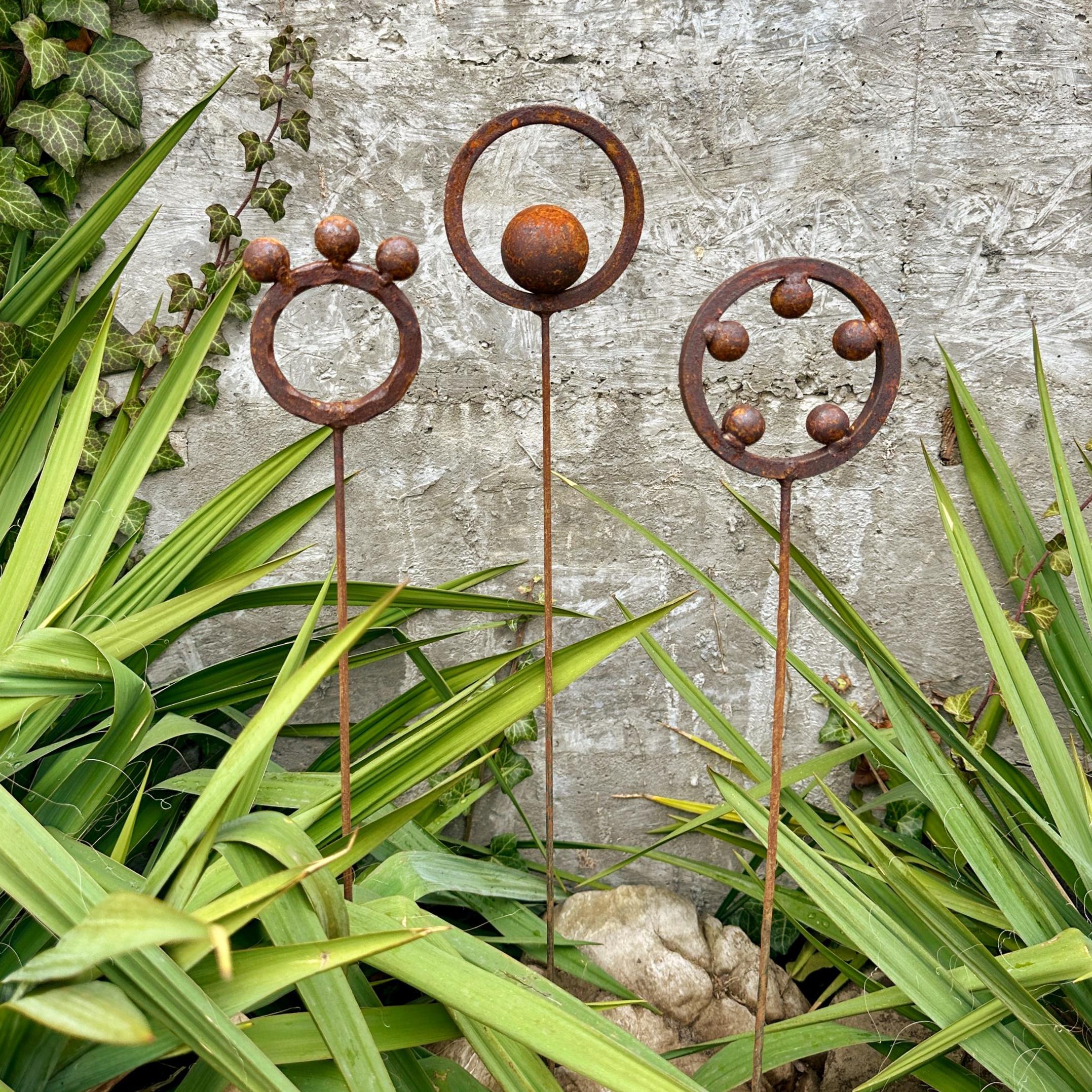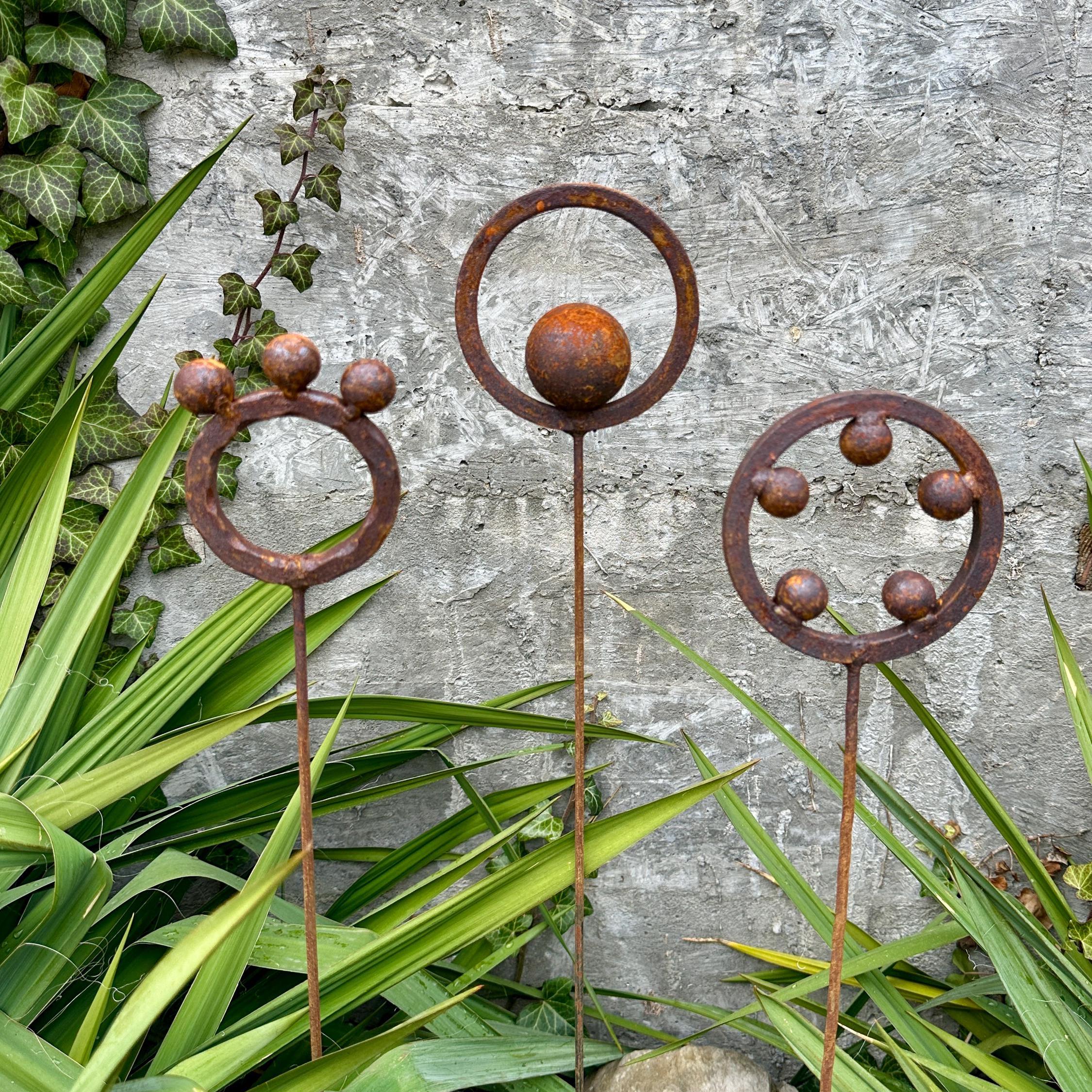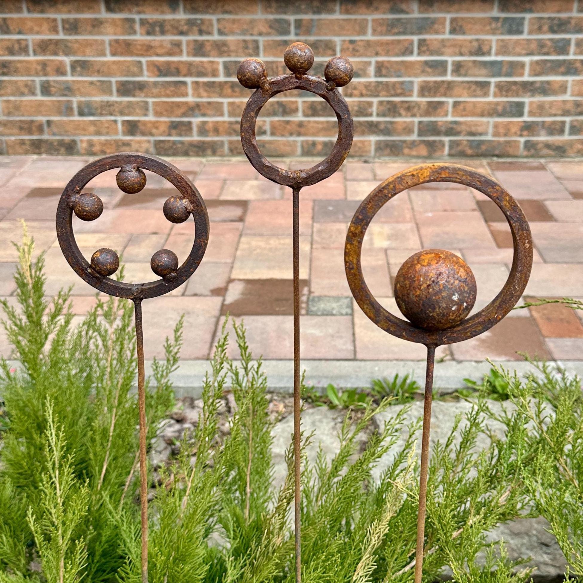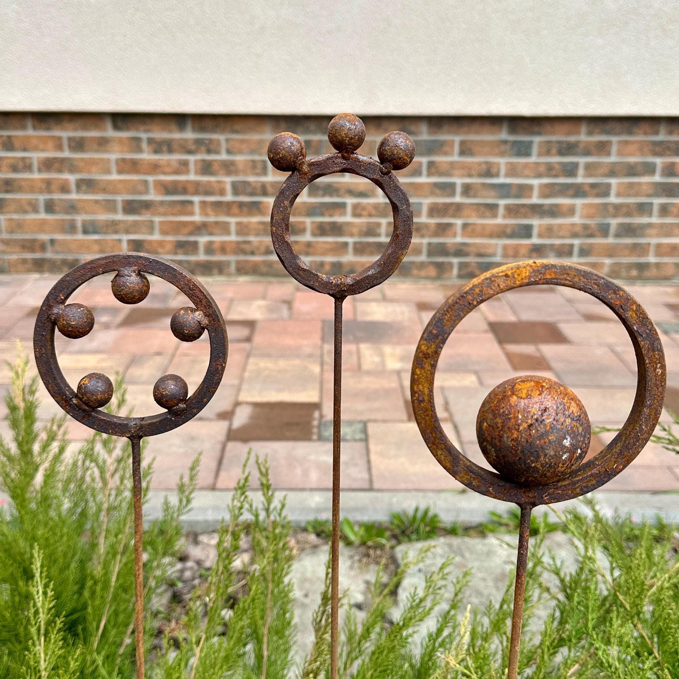 This Rustic metal garden finials set of 3 is just the thing for adding a touch of something special to your garden and outdoor areas. They'll create a romantic and cosy atmosphere in your home. This rusty metal piece of art can be used to add a touch of something special to your home, garden, backyard, terrace or entrance. It's made from natural metal and has a natural rust finish. This rusty garden decor can be used all year round and is not afraid of rain, direct sunlight, etc.