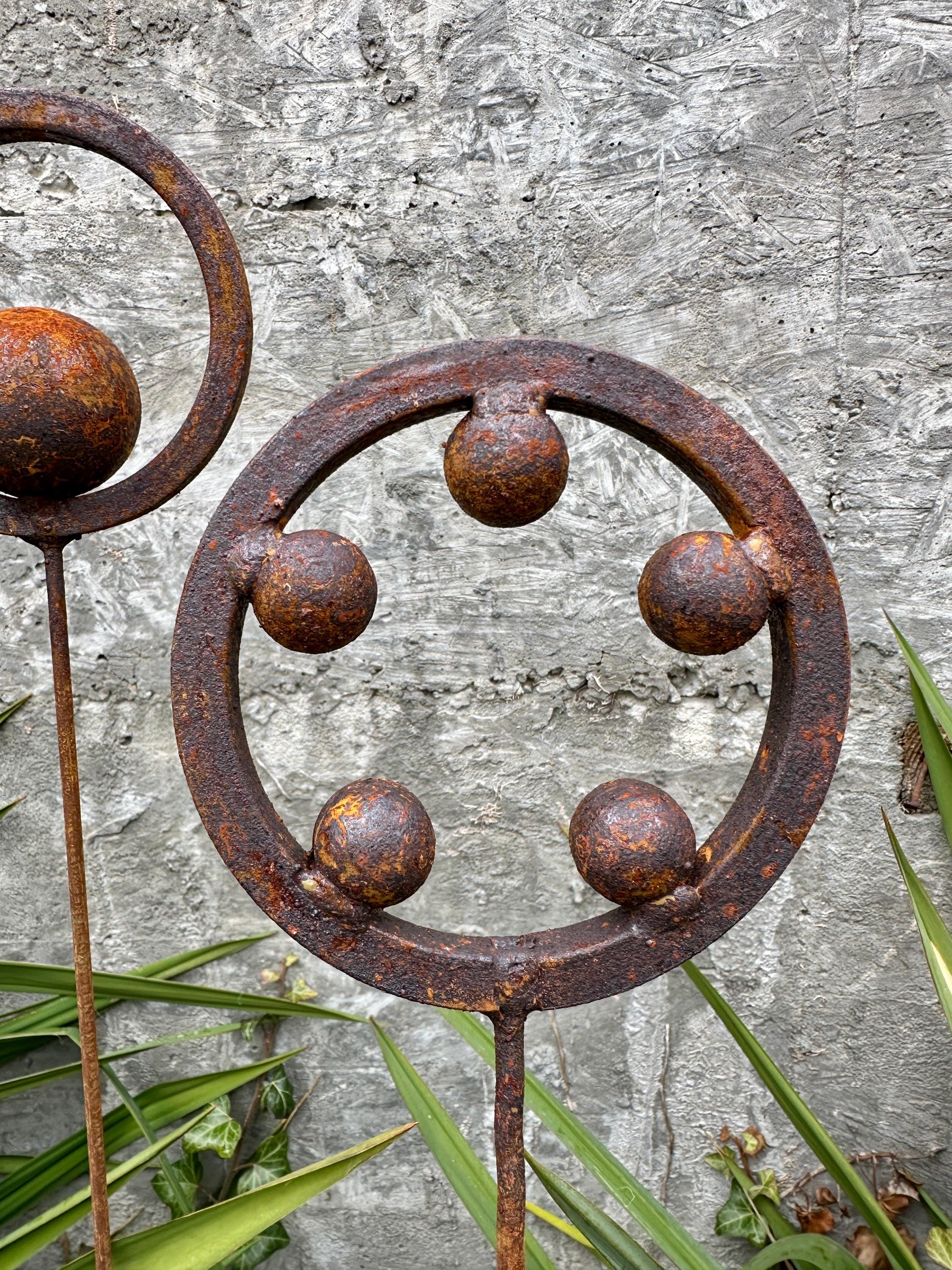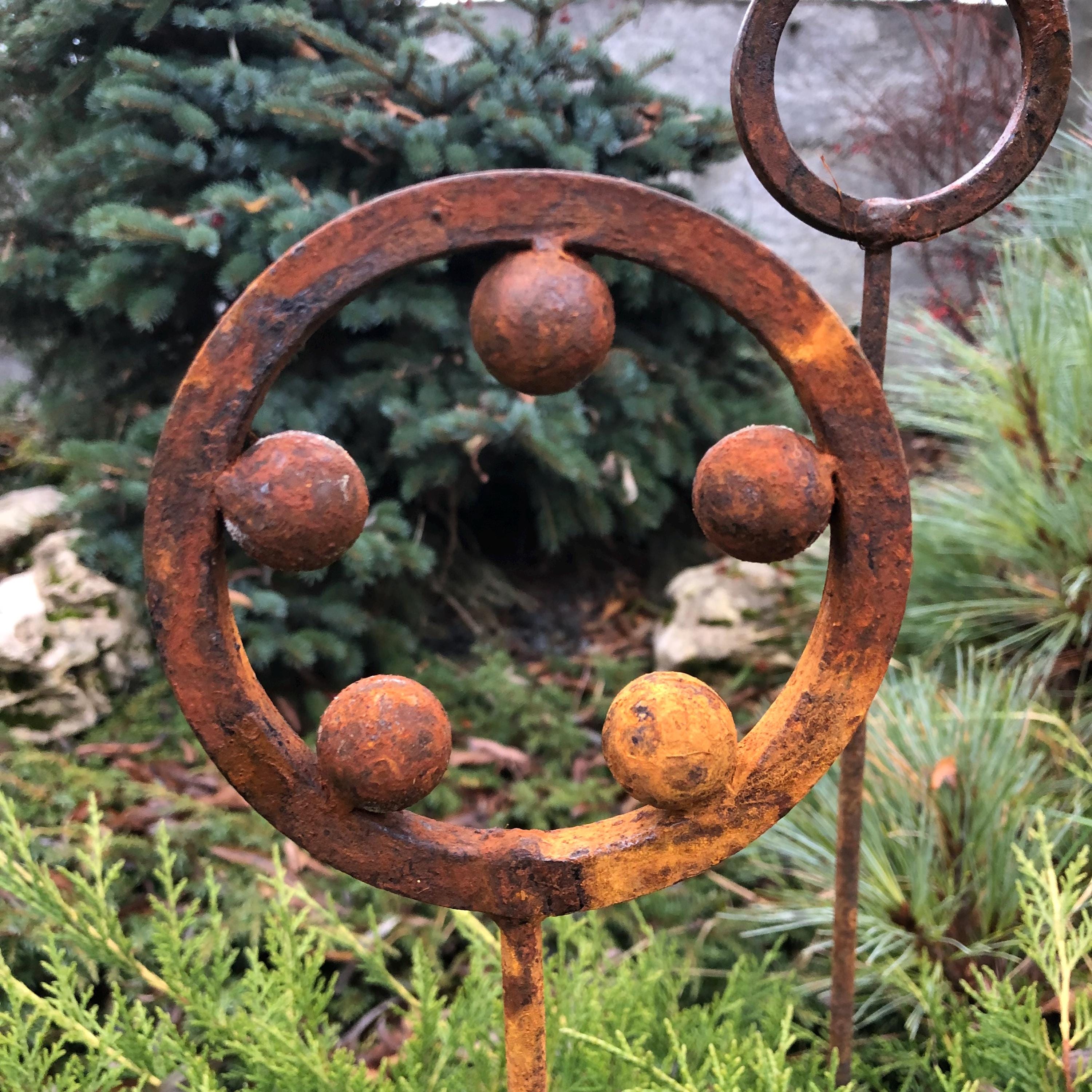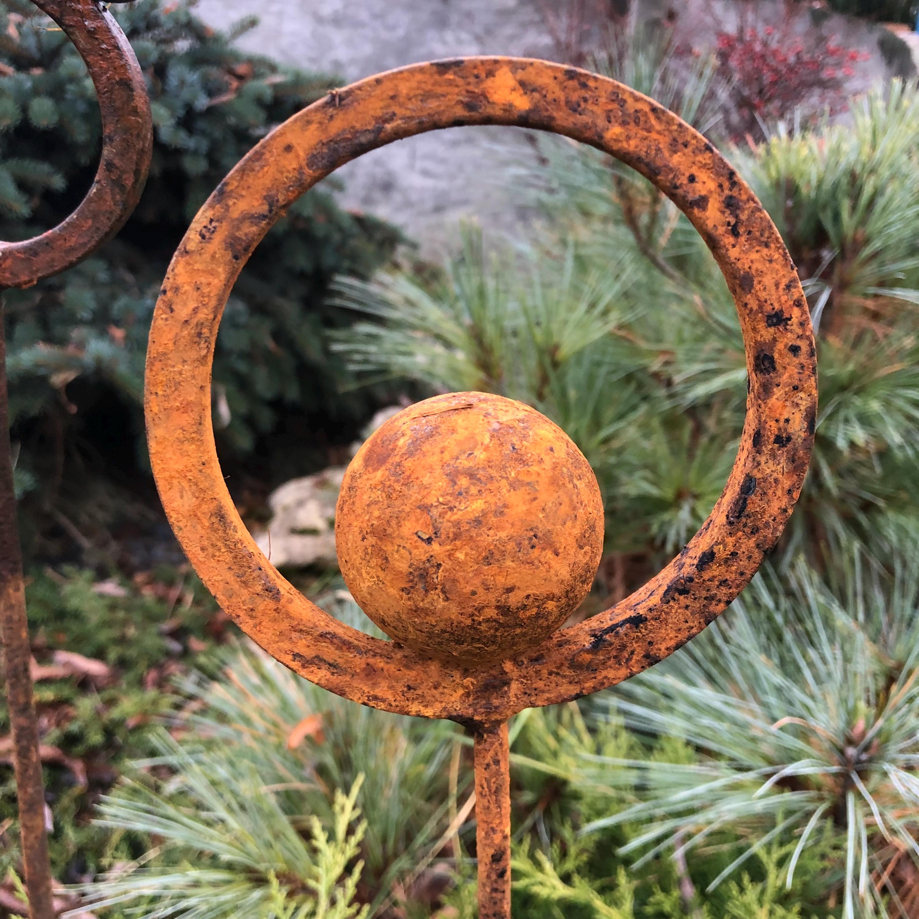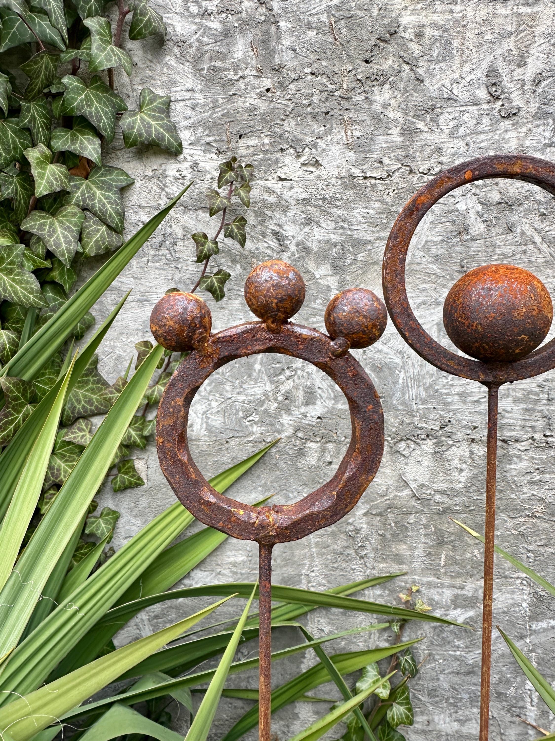 This Rustic metal garden finials set of 3 is just the thing for adding a touch of something special to your garden and outdoor areas. They'll create a romantic and cosy atmosphere in your home. This rusty metal piece of art can be used to add a touch of something special to your home, garden, backyard, terrace or entrance. It's made from natural metal and has a natural rust finish. This rusty garden decor can be used all year round and is not afraid of rain, direct sunlight, etc.