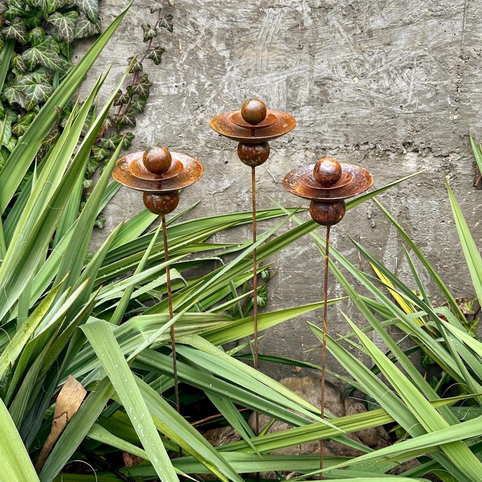 Enchanting Rustic Metal Flower Set: Bring a Touch of Whimsy to Your Garden
