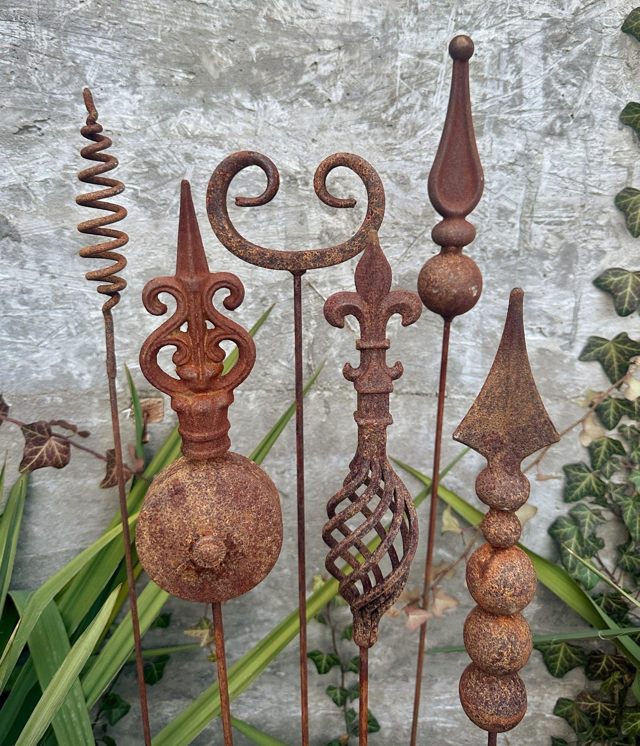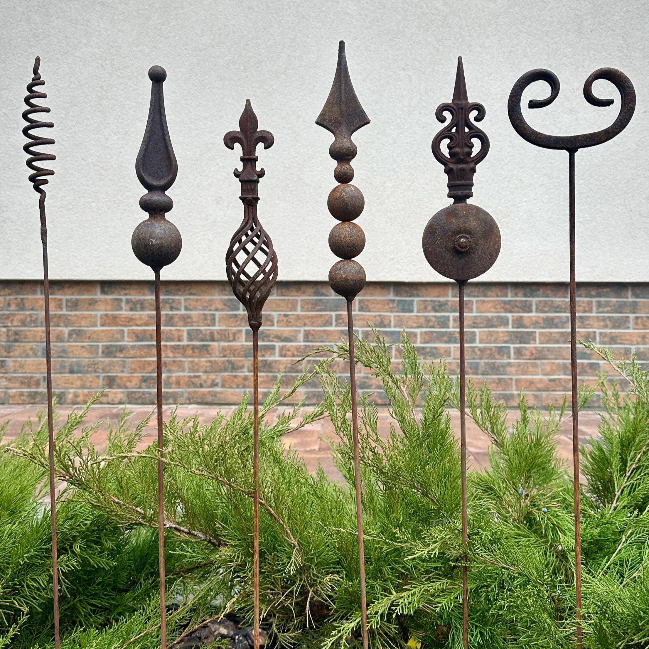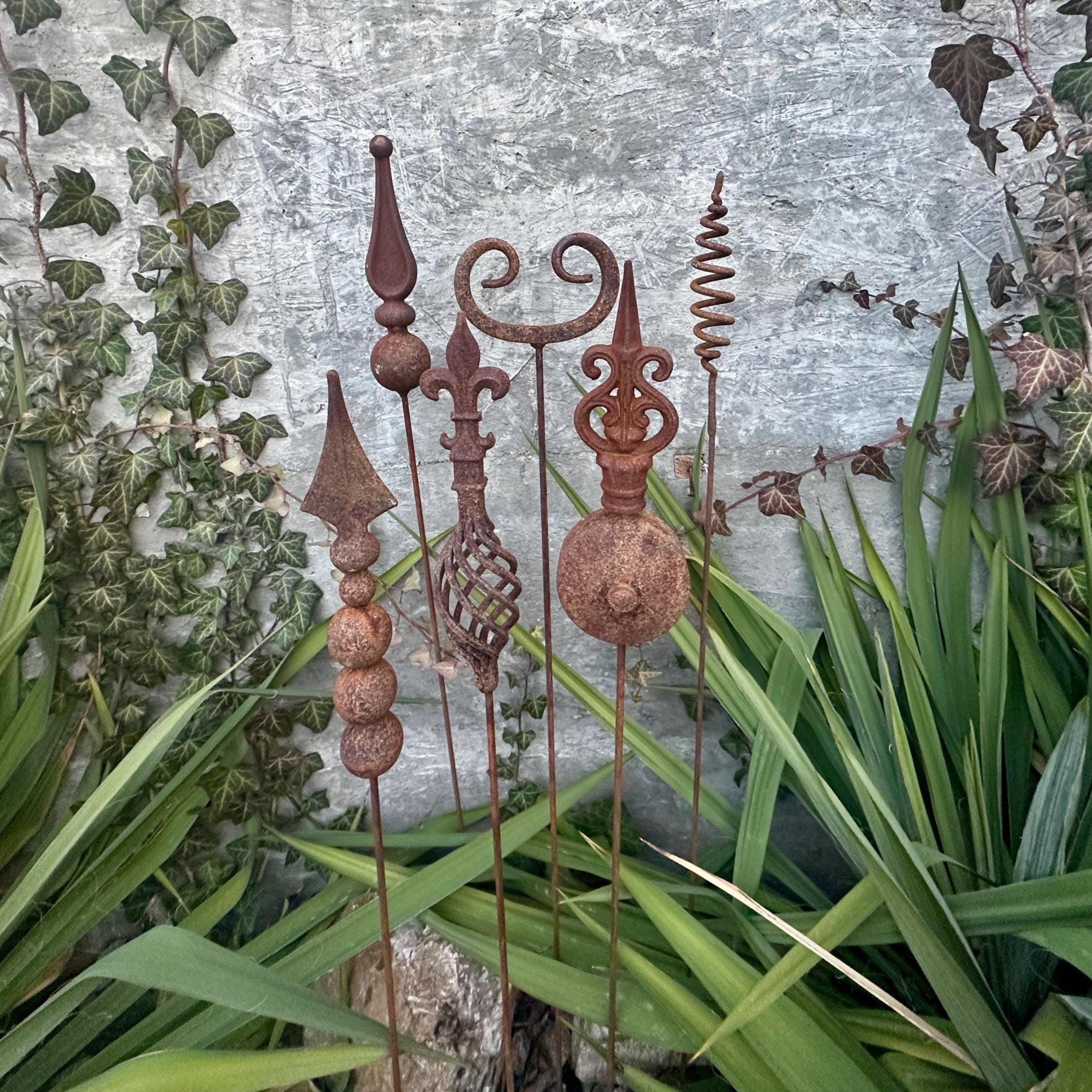 Add charm and character to your outdoor space with this set of 6 rustic, handcrafted metal finials. Perfect for enhancing garden compositions and landscapes, these decorative accents create a cosy and romantic atmosphere in any setting.