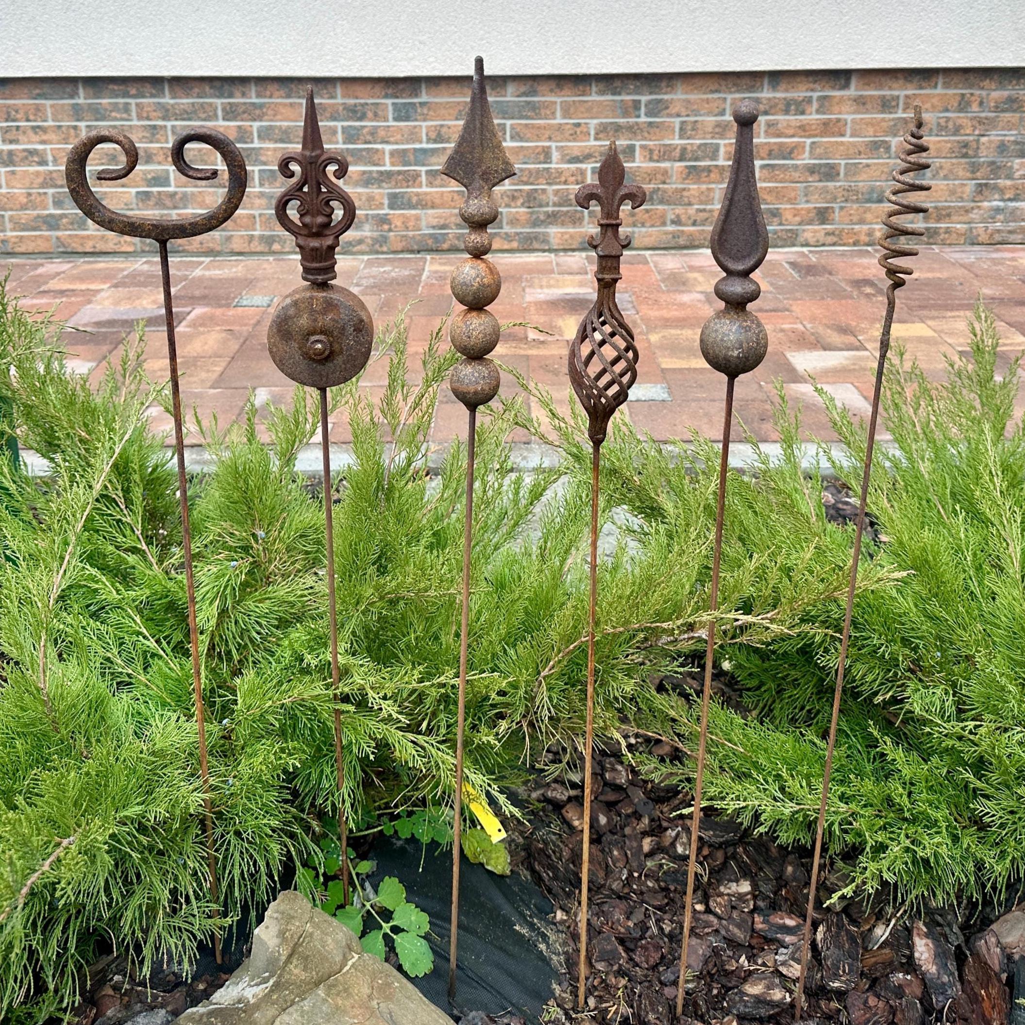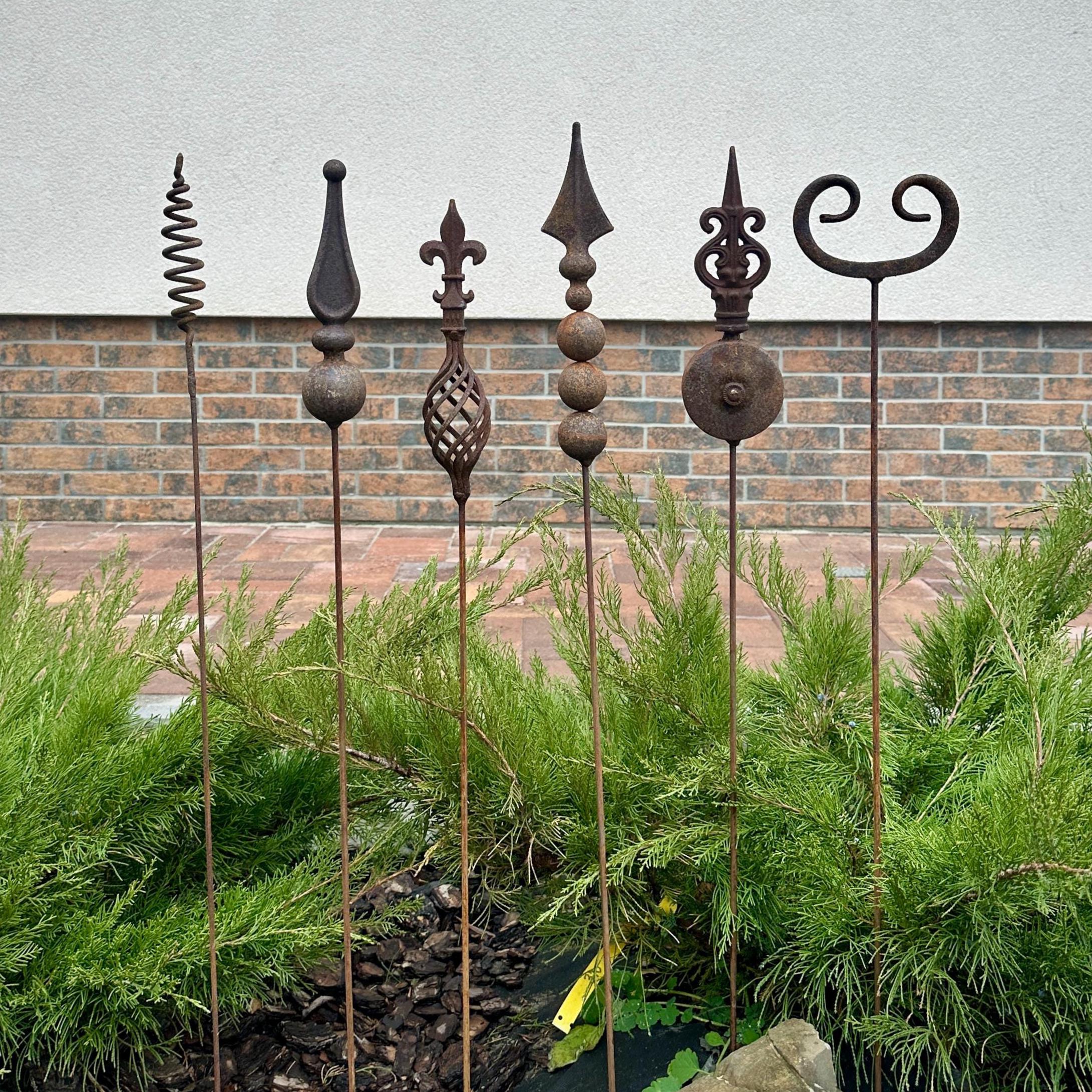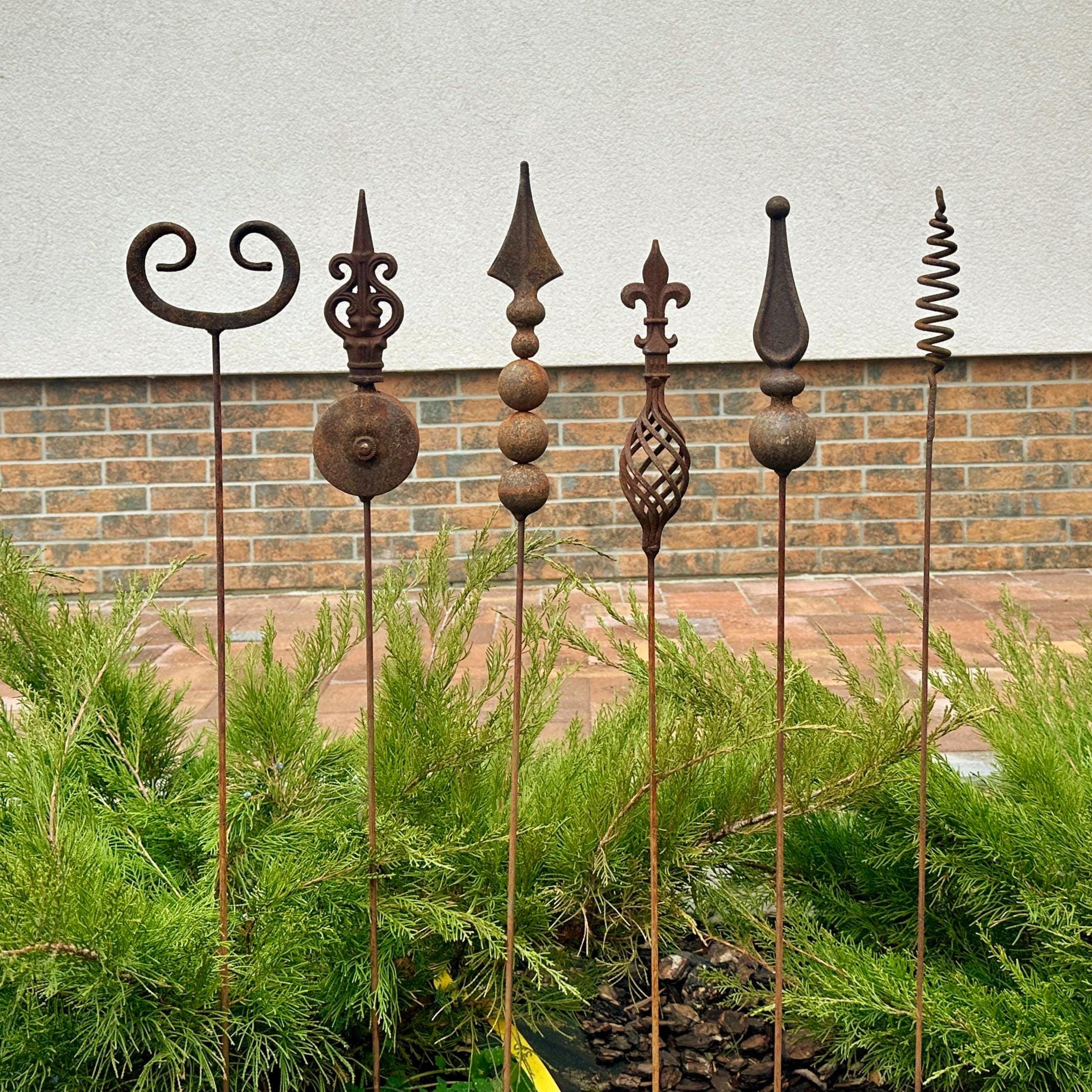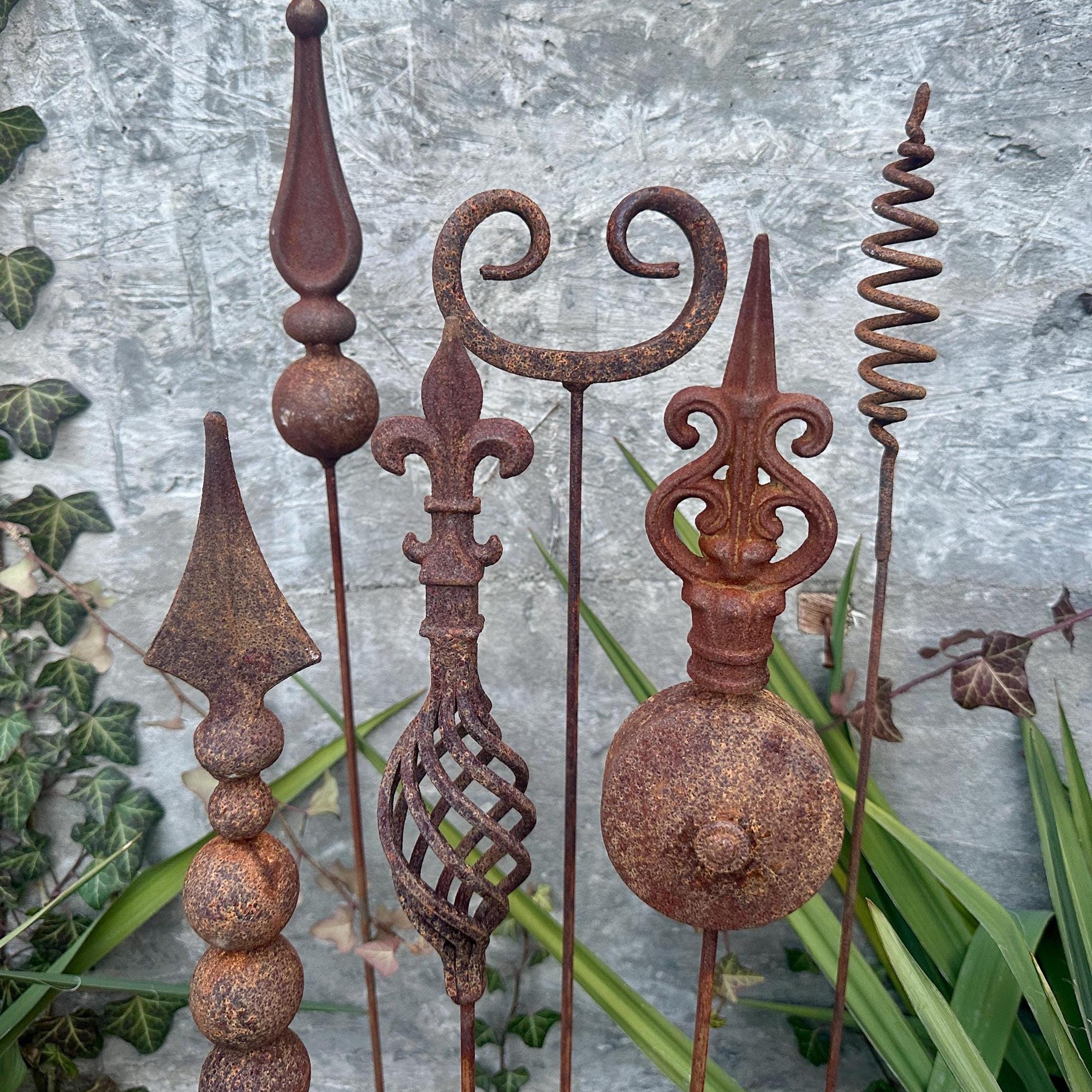 Add charm and character to your outdoor space with this set of 6 rustic, handcrafted metal finials. Perfect for enhancing garden compositions and landscapes, these decorative accents create a cosy and romantic atmosphere in any setting.