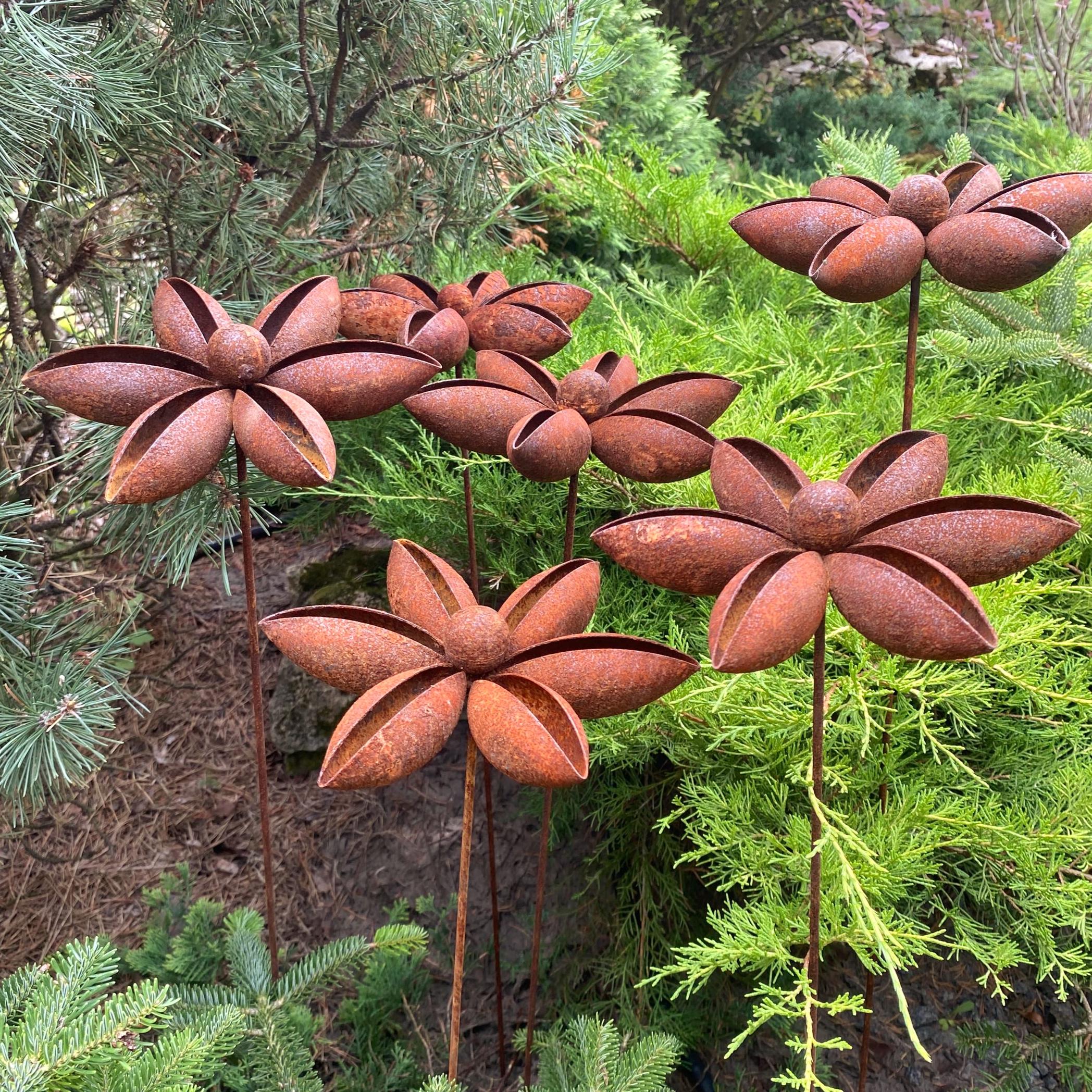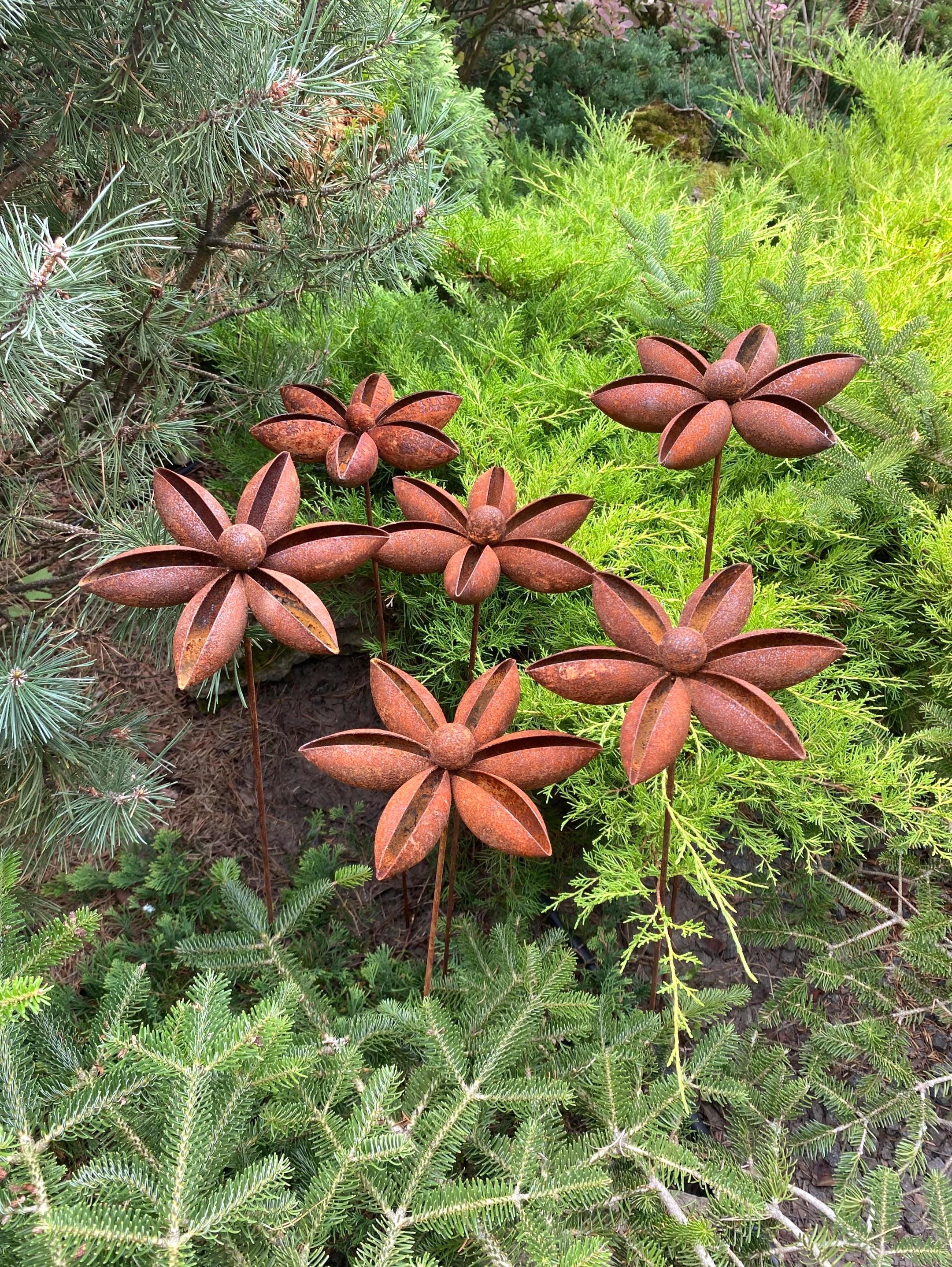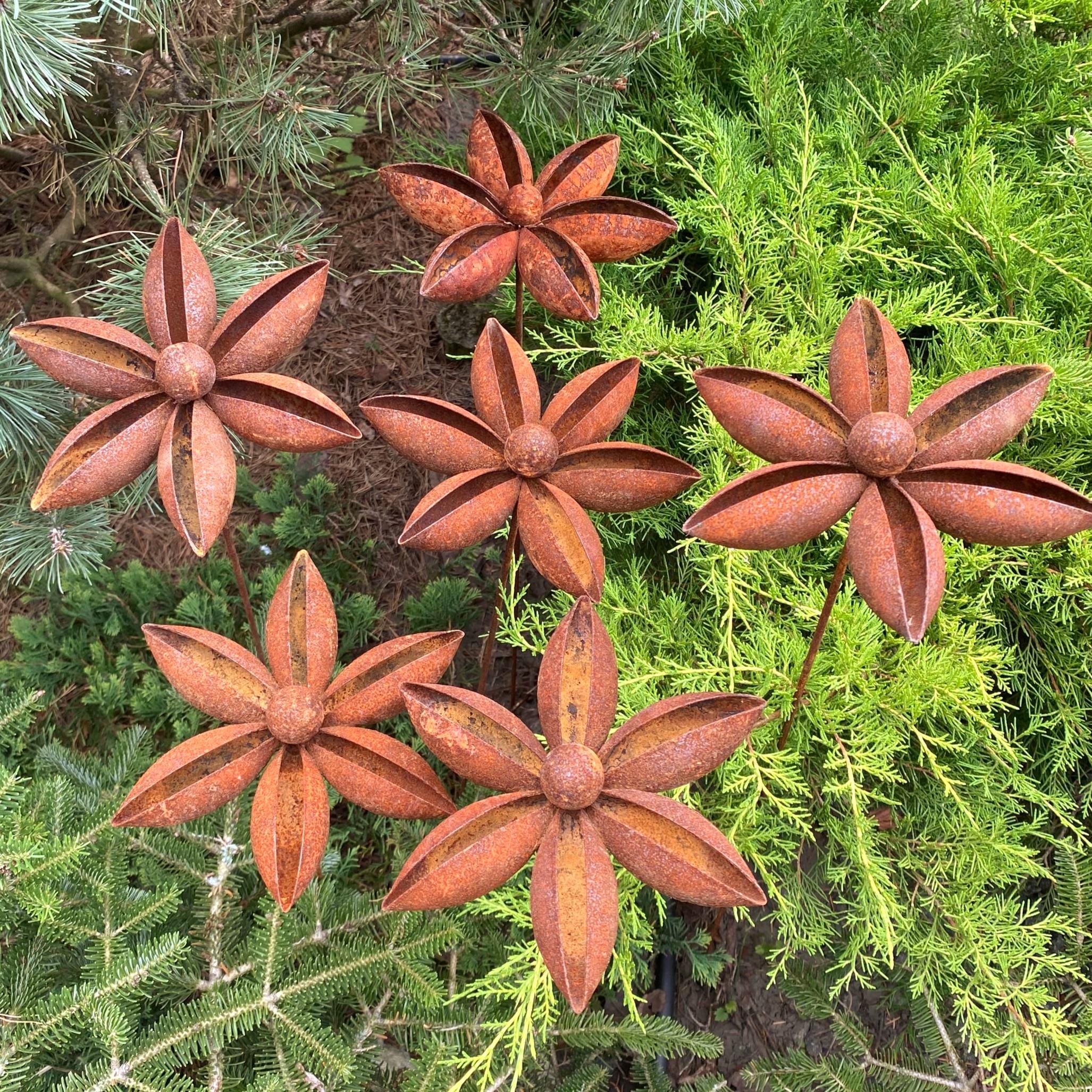 Add a touch of rustic charm to your garden with our set of six handcrafted metal flowers. These gorgeous pieces are ideal for enhancing garden designs and landscapes, creating a romantic and homely feel to any space. These rusty metal flowers are great for decorating your home, garden, patio or entrance - they'll add a unique and artistic touch wherever you place them.