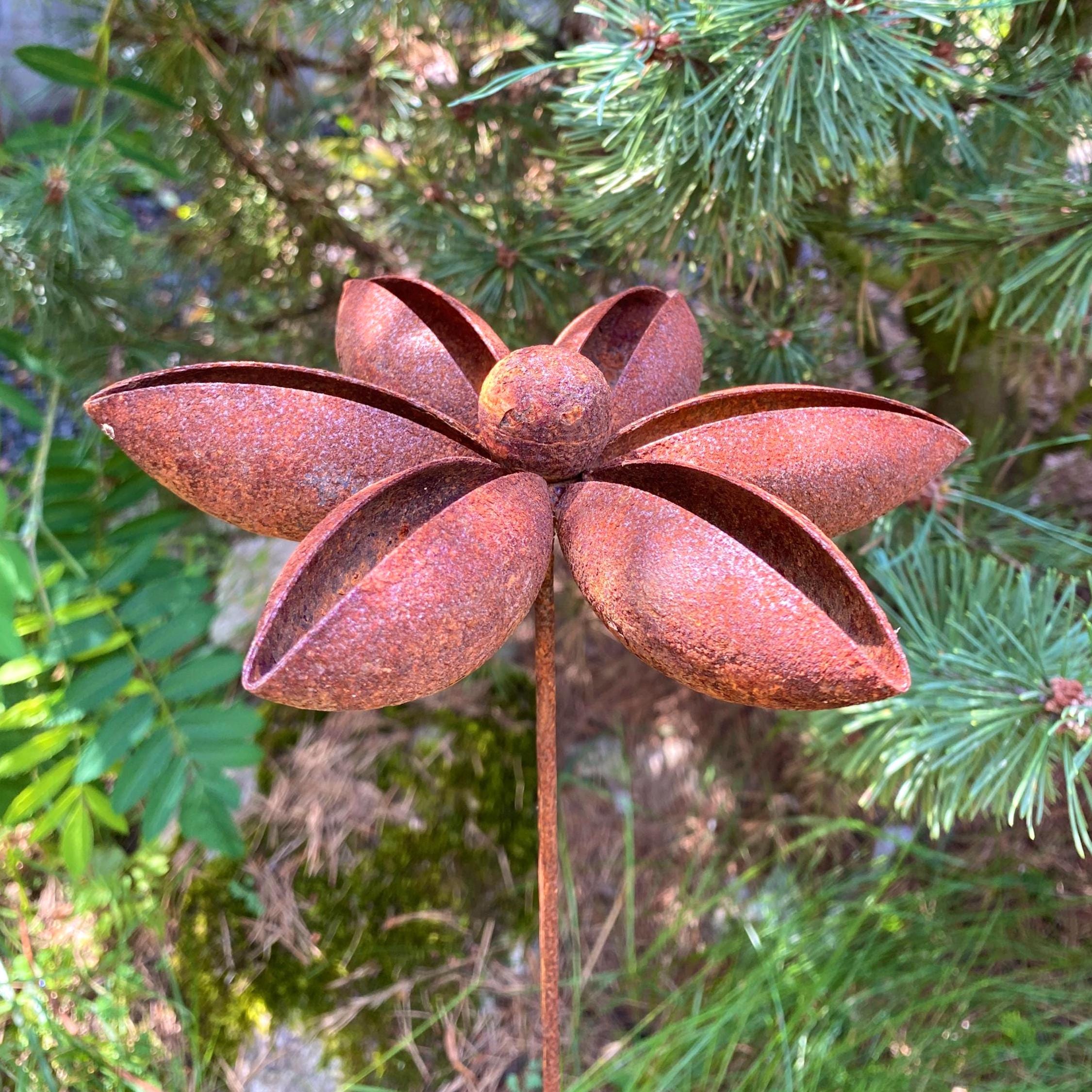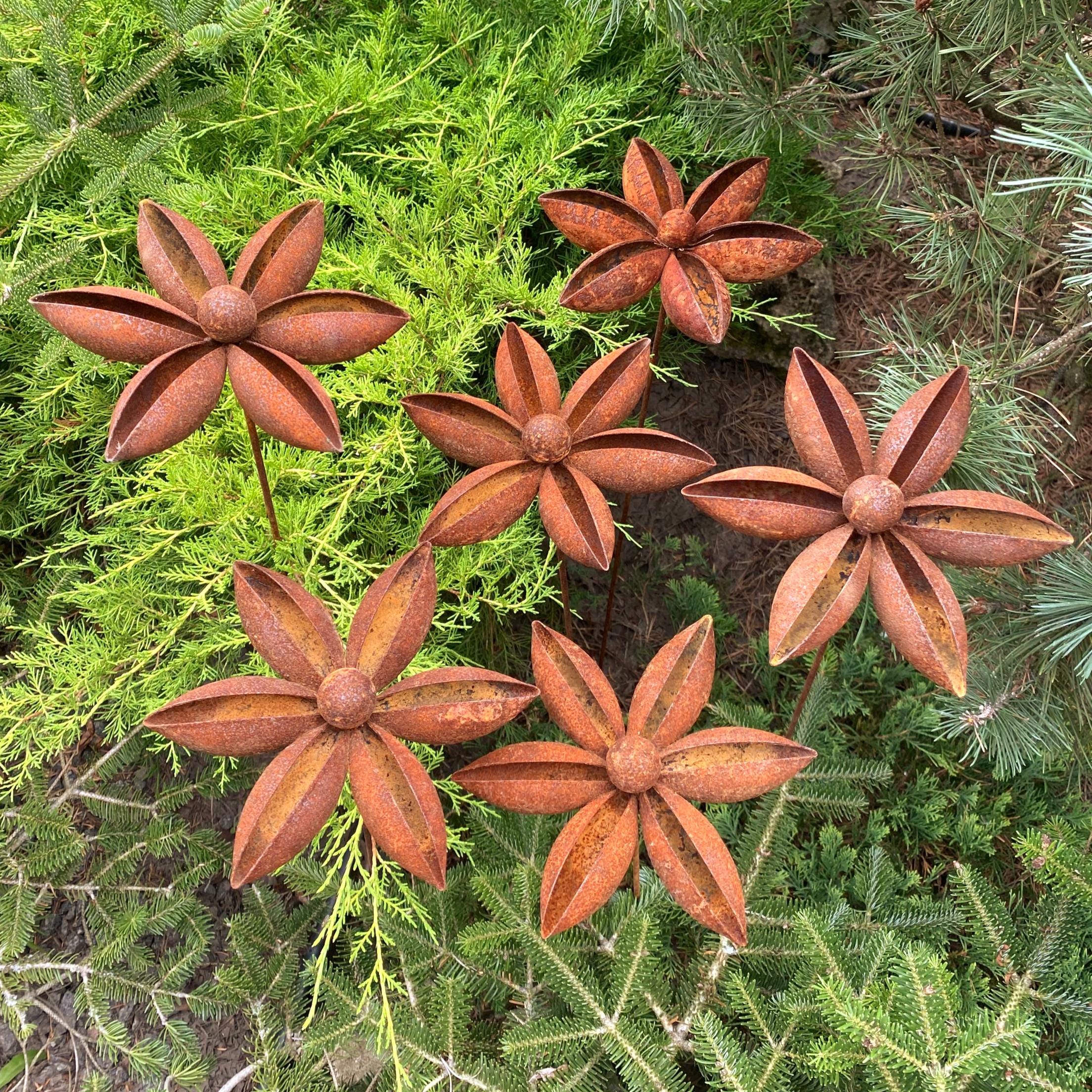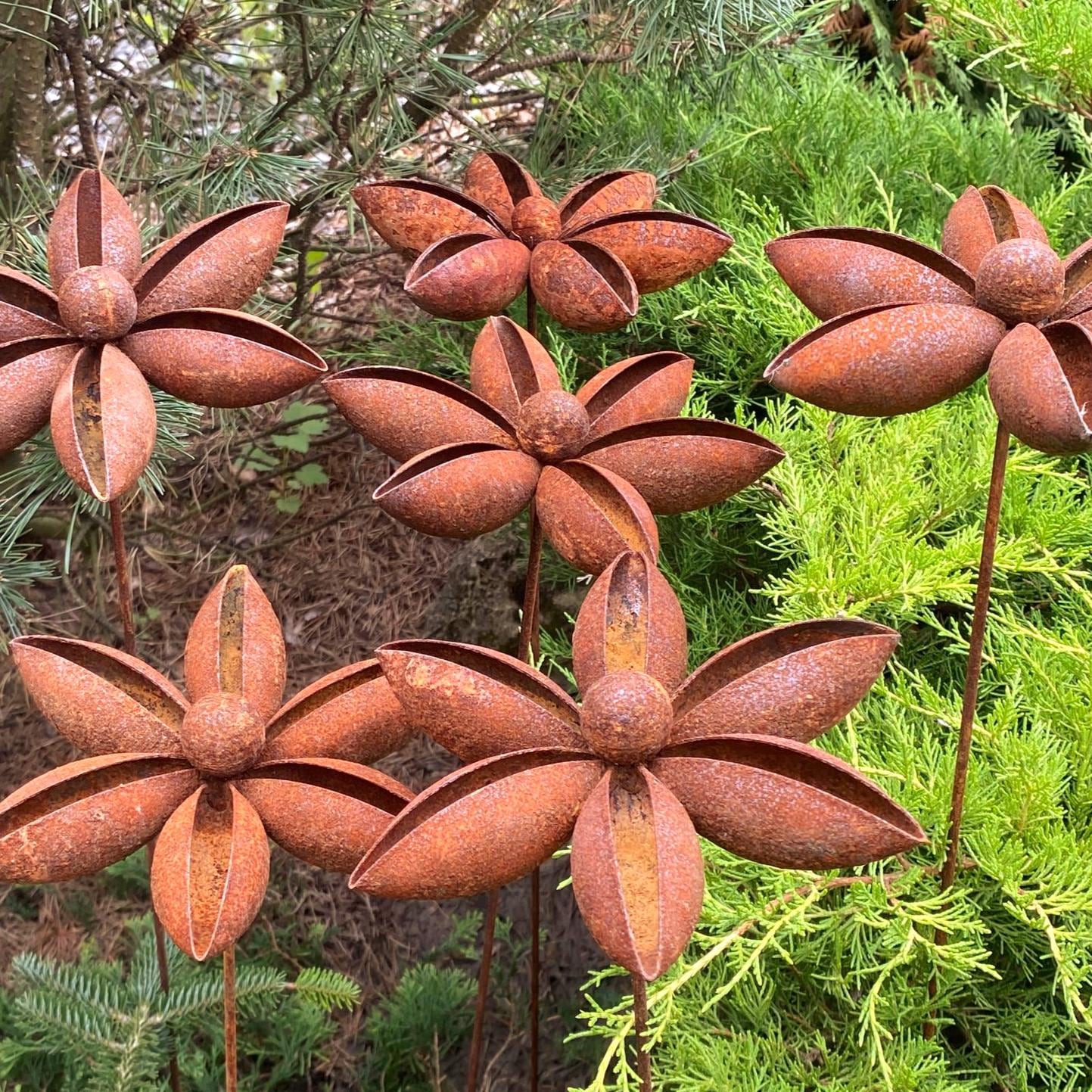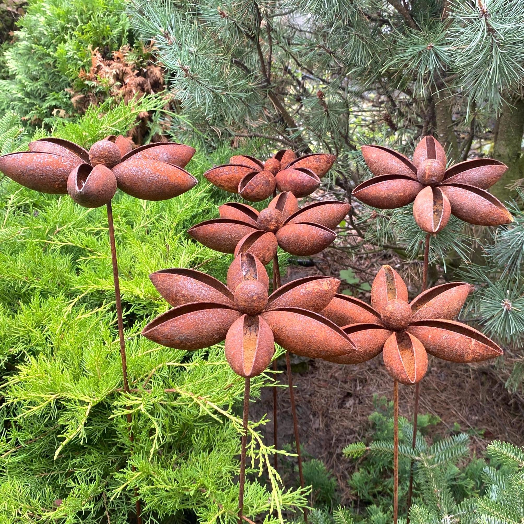 Add a touch of rustic charm to your garden with our set of six handcrafted metal flowers. These gorgeous pieces are ideal for enhancing garden designs and landscapes, creating a romantic and homely feel to any space. These rusty metal flowers are great for decorating your home, garden, patio or entrance - they'll add a unique and artistic touch wherever you place them.