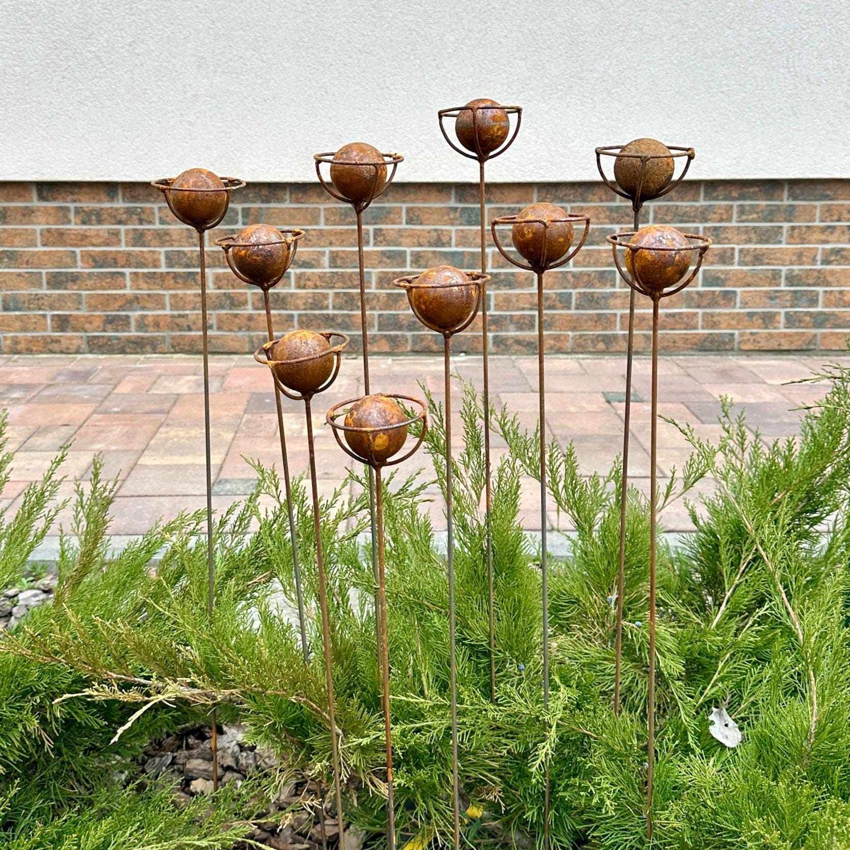 Each flower is mounted on its own stake, allowing you to arrange them individually in flower beds, planters, or along pathways to create a unique garden display.
