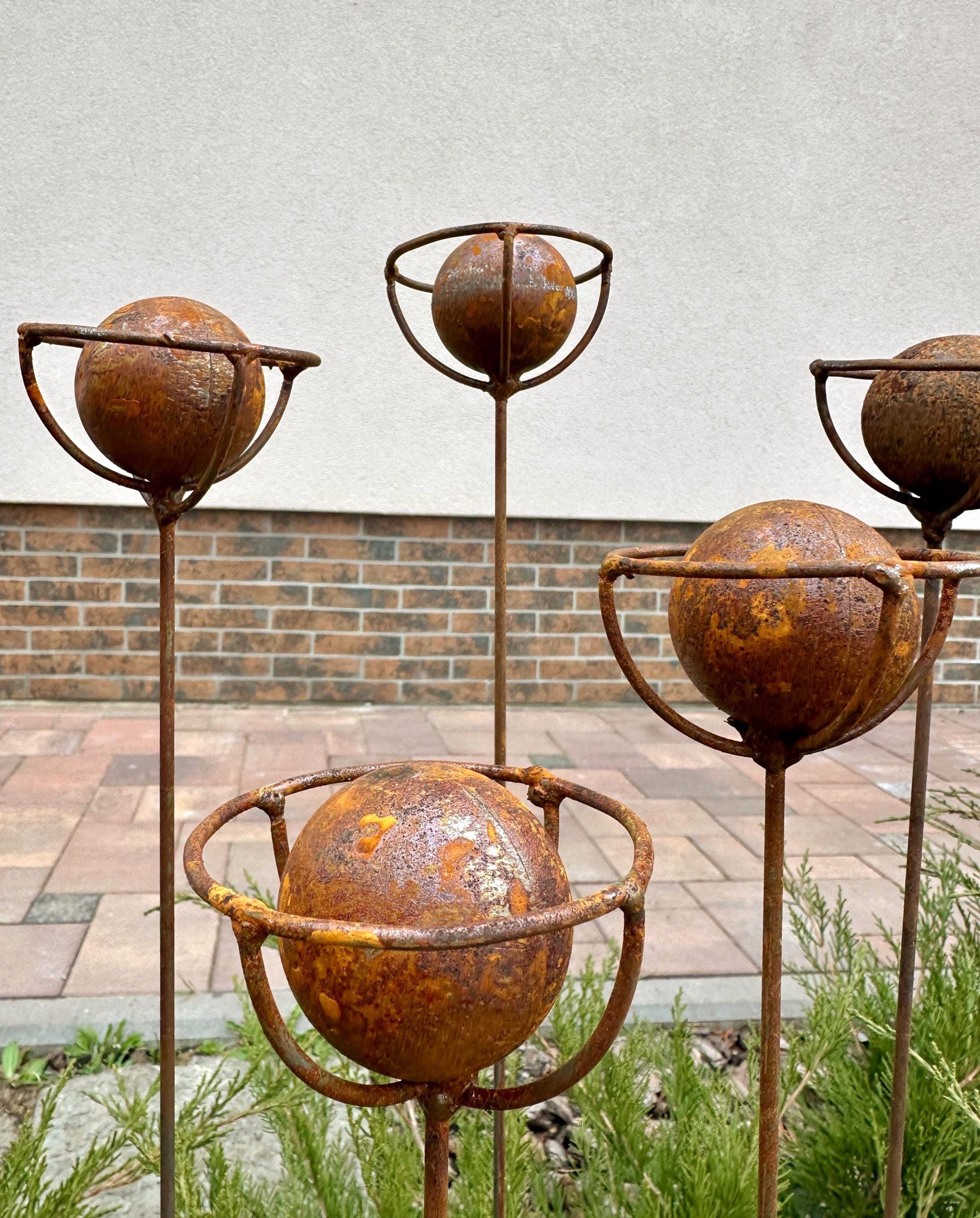 Crafted from natural metal, each flower develops a unique rusty patina, giving it a timeless, weathered charm. This durable yard art withstands all seasons—rain, snow, and direct sunlight—making it a perfect year-round outdoor decoration.