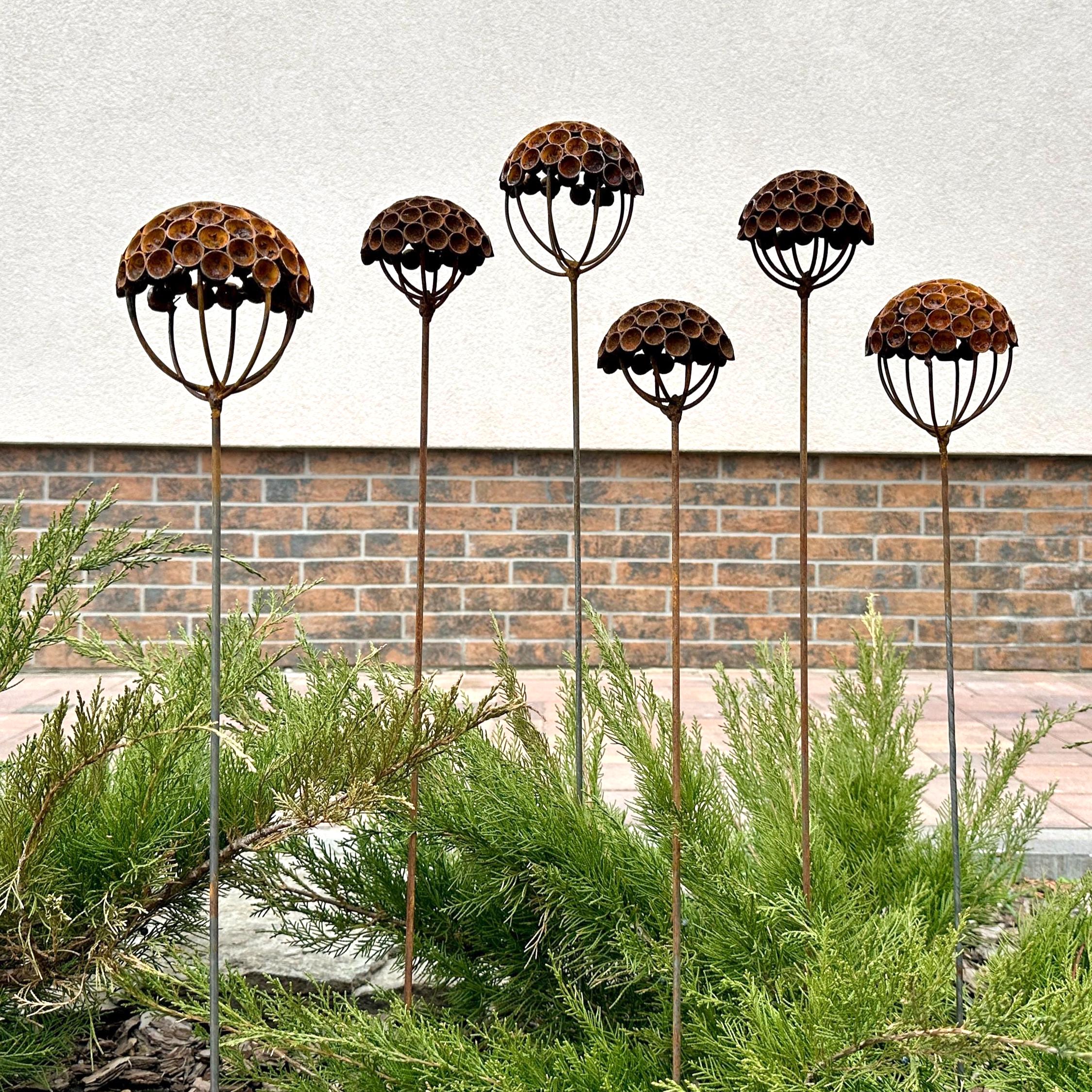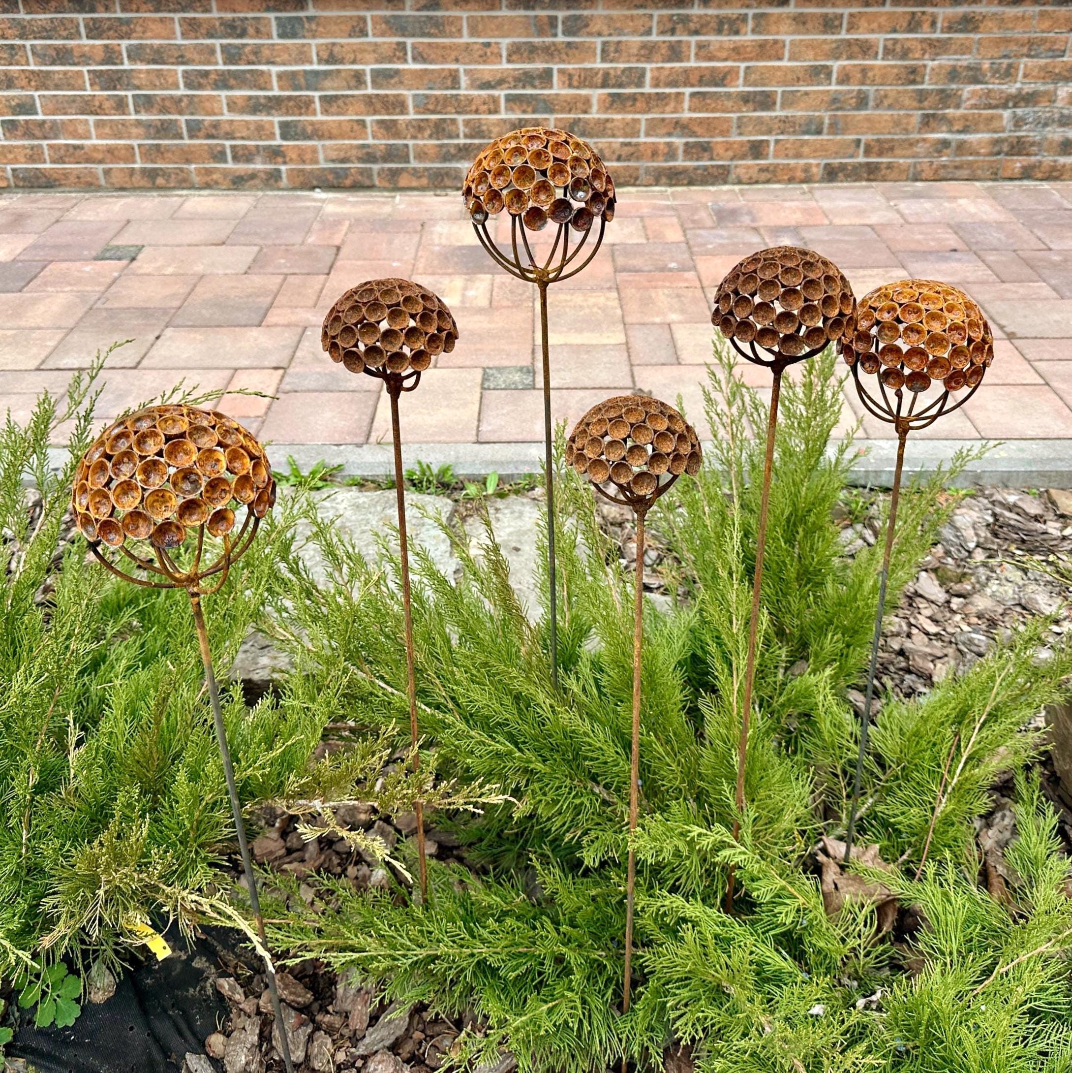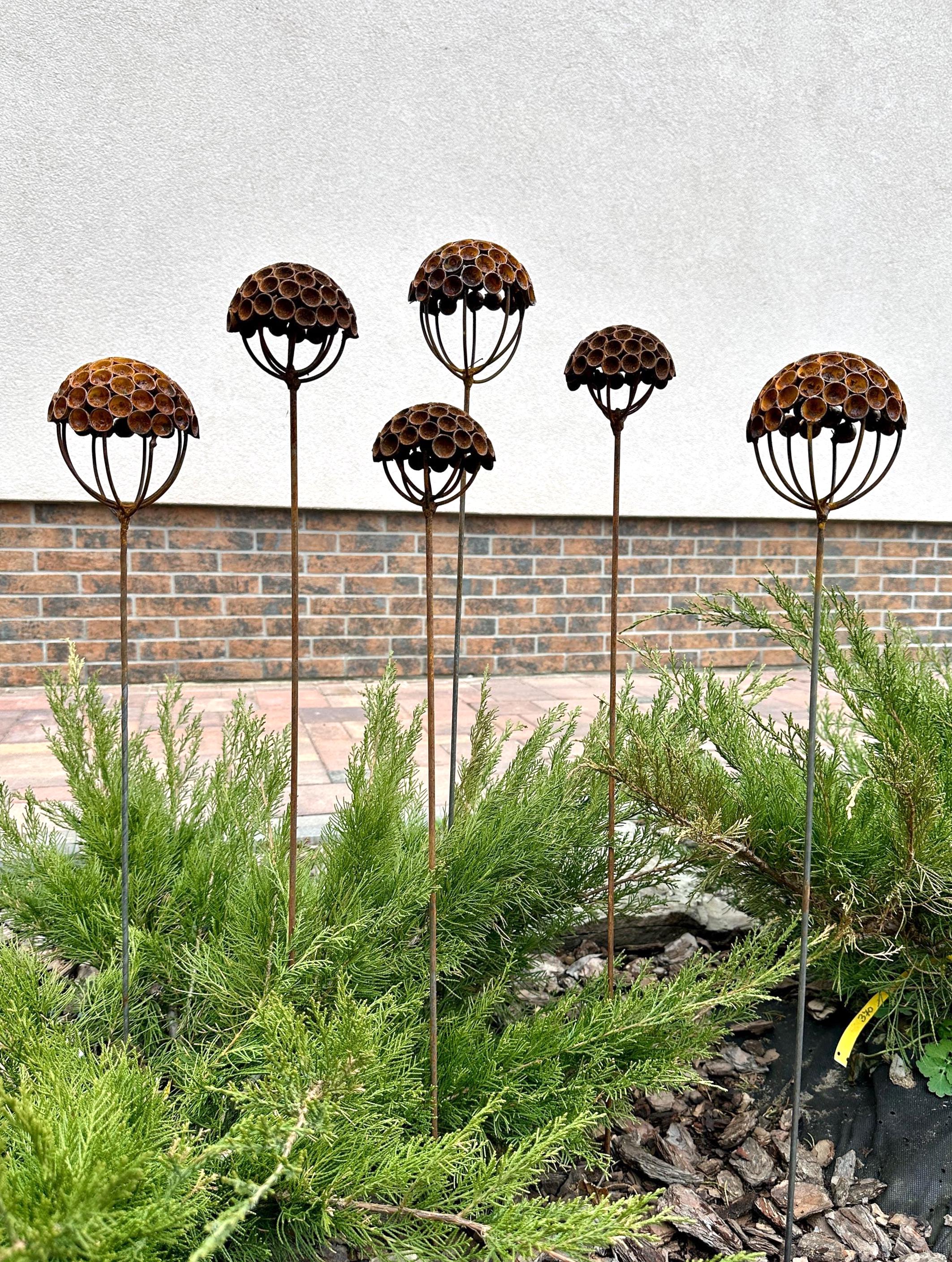 Transform your garden with this stunning set of 6 handmade rustic metal flower sculptures! Inspired by nature’s beauty, these unique garden stakes add an artistic touch to flower beds, pathways, and planters.