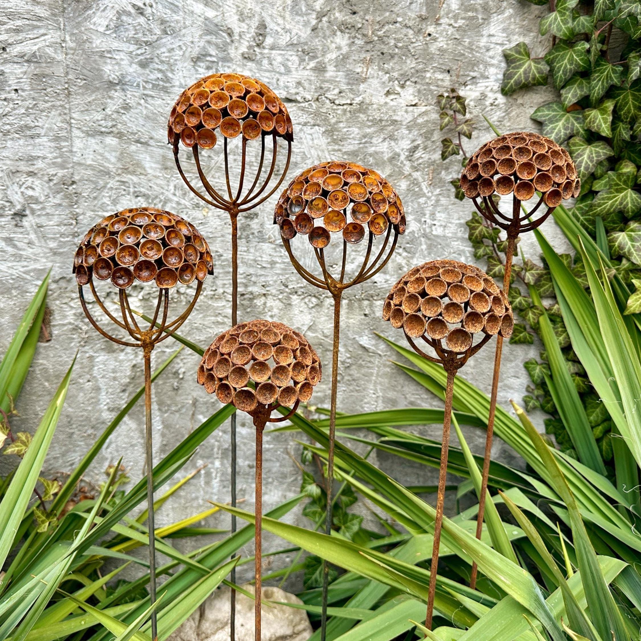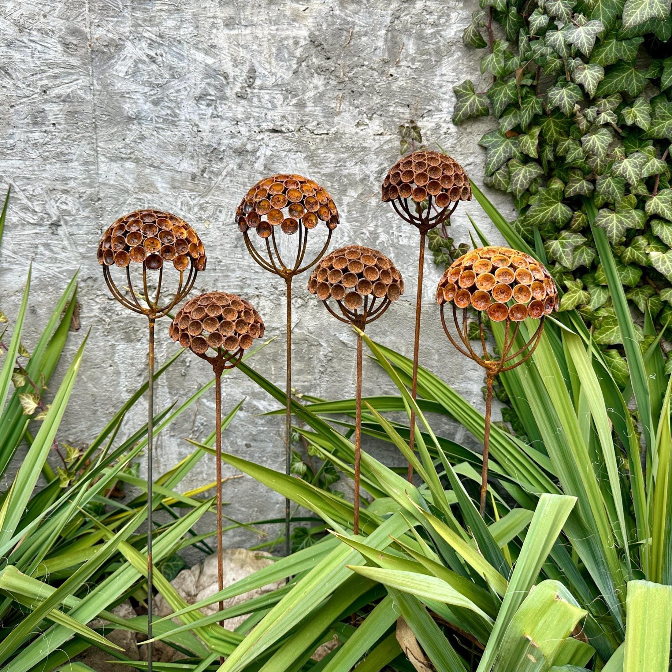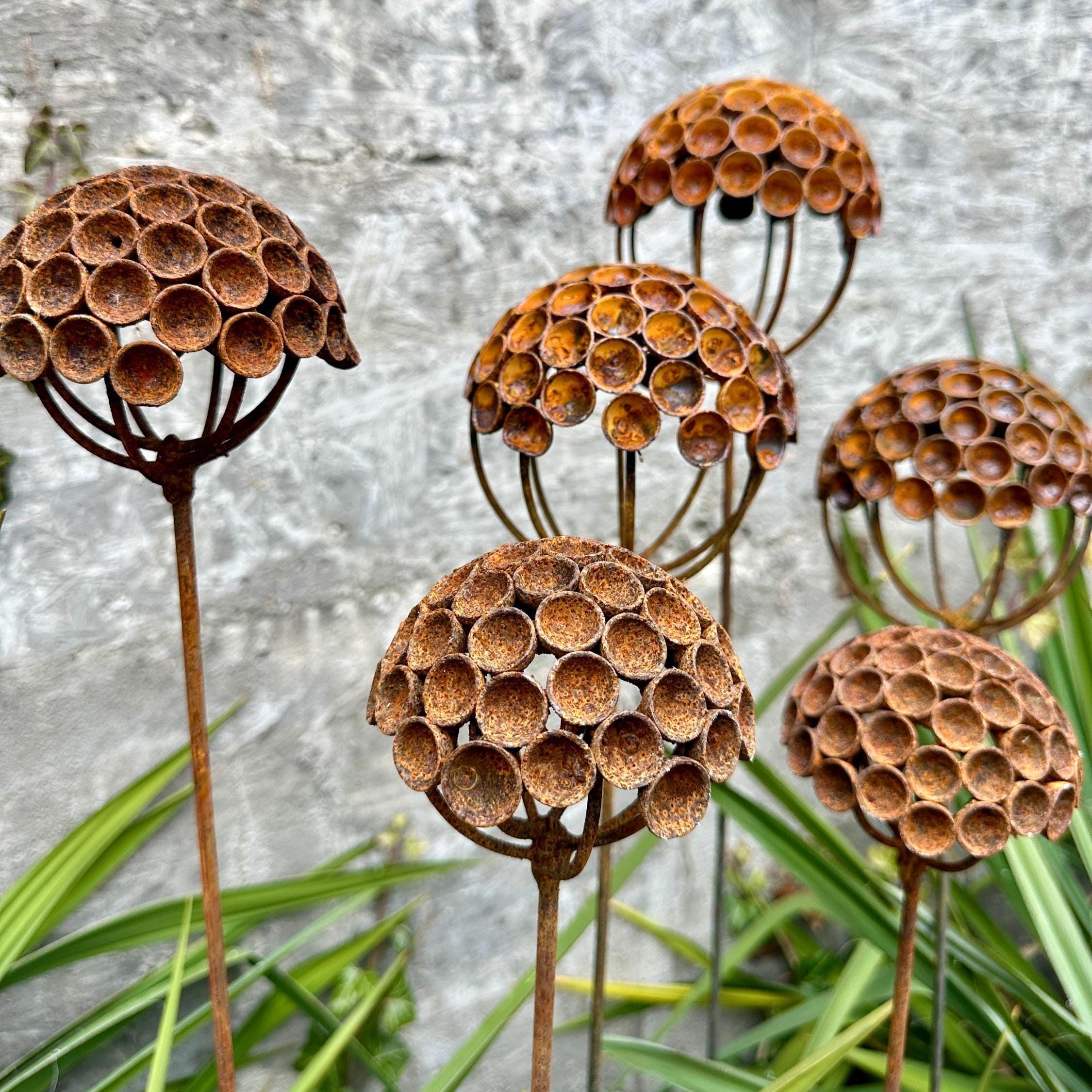 Transform your garden with this stunning set of 6 handmade rustic metal flower sculptures! Inspired by nature’s beauty, these unique garden stakes add an artistic touch to flower beds, pathways, and planters.