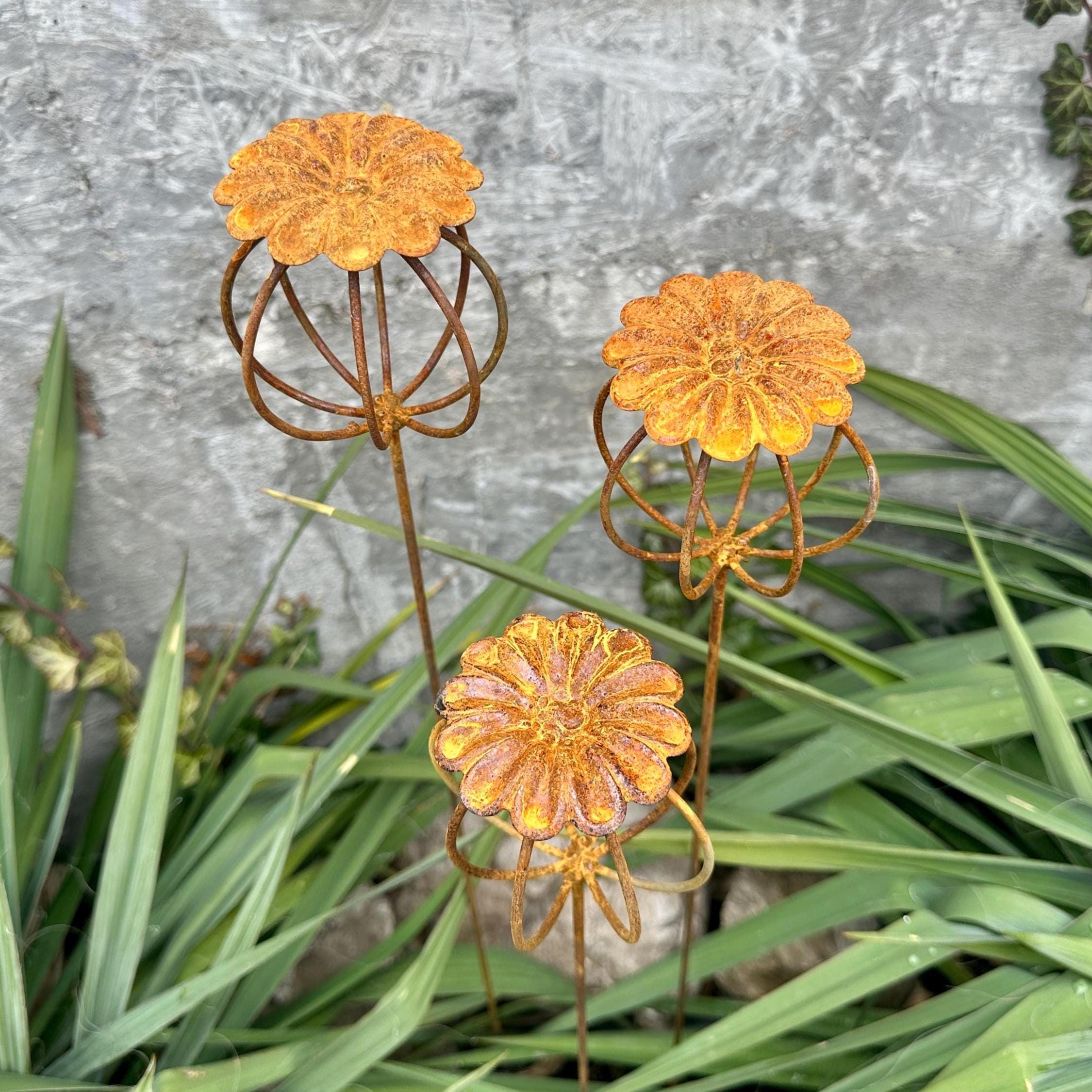 Crafted from natural metal, each flower develops a unique rusty patina, giving it a timeless, weathered charm. This durable yard art withstands all seasons—rain, snow, and direct sunlight—making it a perfect year-round outdoor decoration.