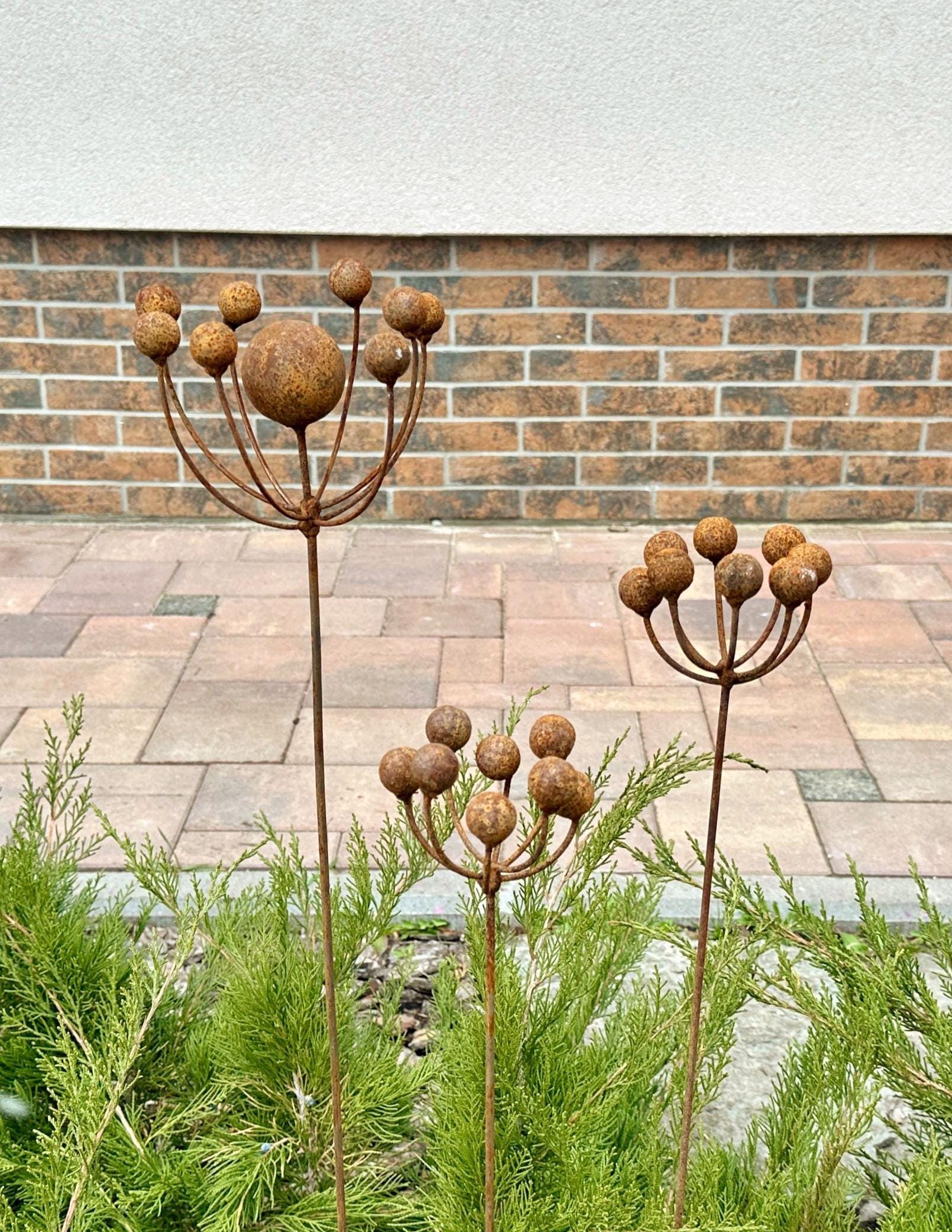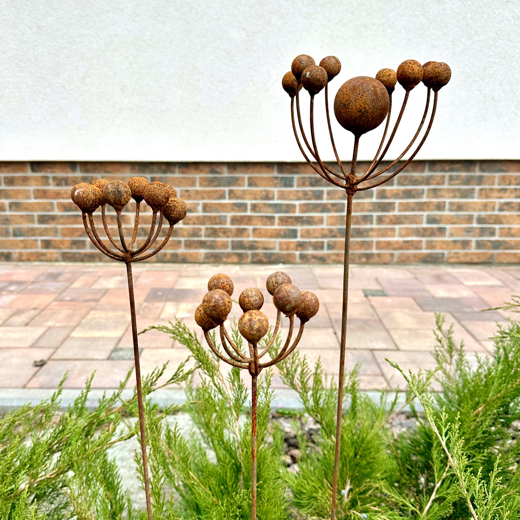 Each flower is carefully crafted from natural metal, allowing it to develop a one-of-a-kind rustic patina that enhances its character over time. Sturdy and durable, these metal blooms are designed to withstand all seasons, making them a long-lasting accent for your garden.