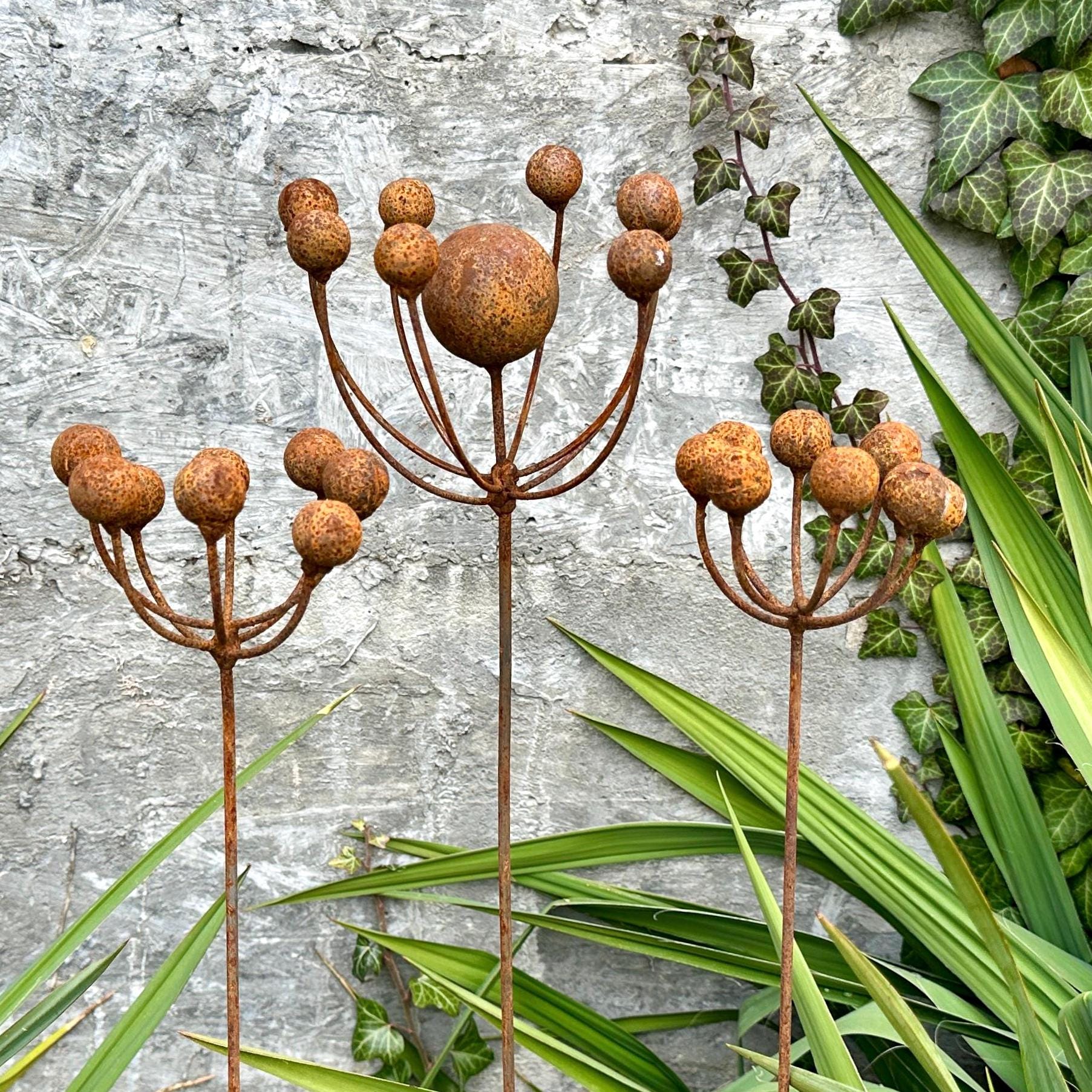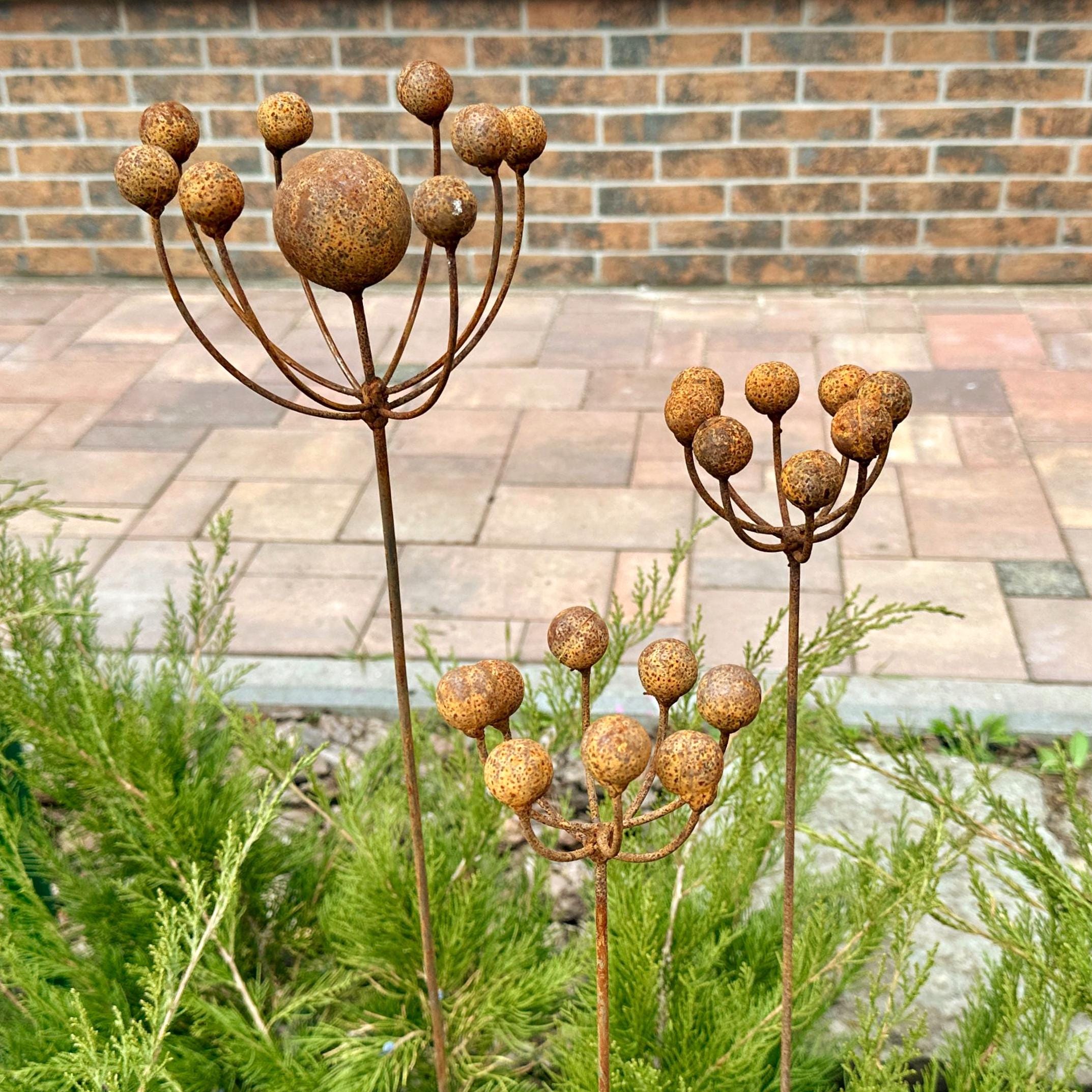 Enhance your garden, patio, or yard with these beautiful metal flower stakes, blending nature-inspired design with rustic elegance!