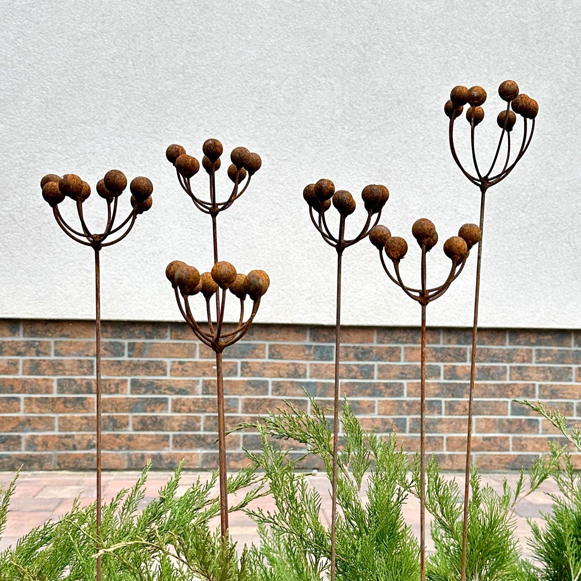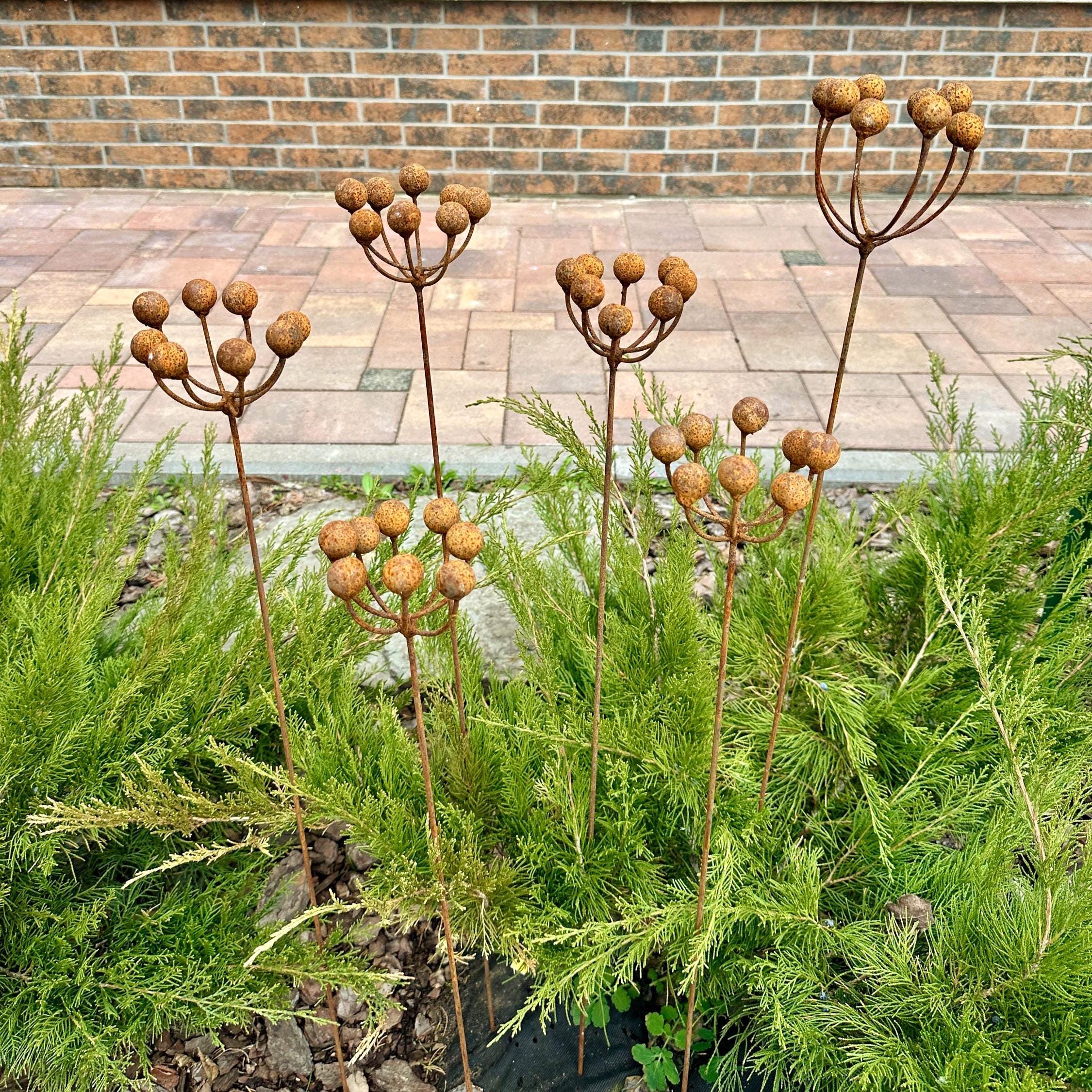 Elevate your garden with this handcrafted set of six rustic metal flower sculptures, designed to add a touch of natural charm and artistic elegance to any outdoor space. Whether nestled in flower beds, lining pathways, or placed in decorative planters, these unique garden stakes bring warmth, character, and a timeless rustic appeal.