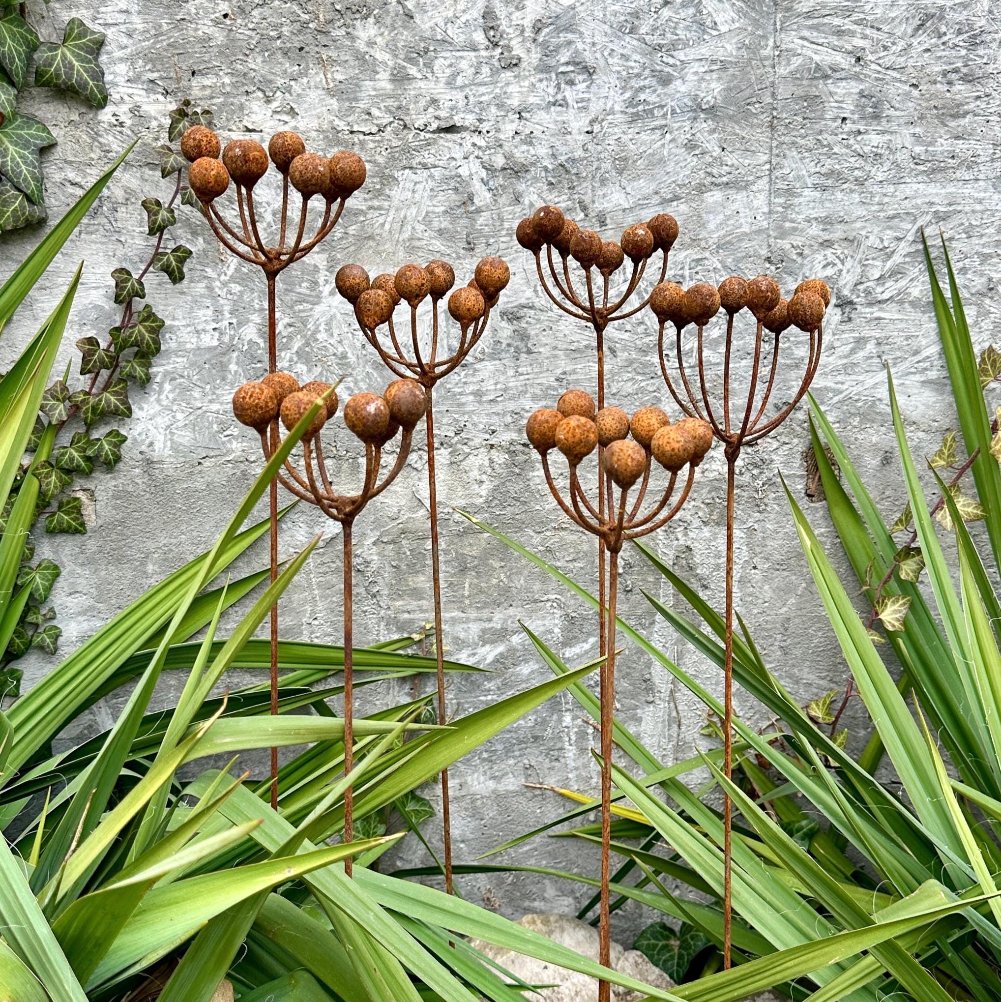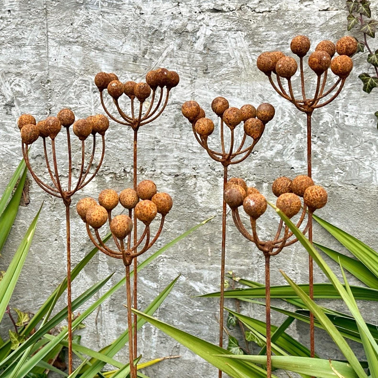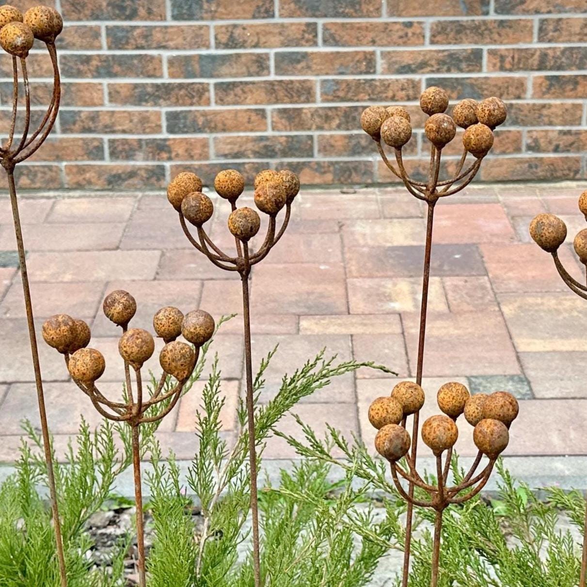Crafted from high-quality natural metal, each flower develops a gorgeous, one-of-a-kind rusty patina, blending beautifully with its surroundings. Built to last, these weathered metal blooms stand strong through the seasons, making them a perfect year-round garden accent.