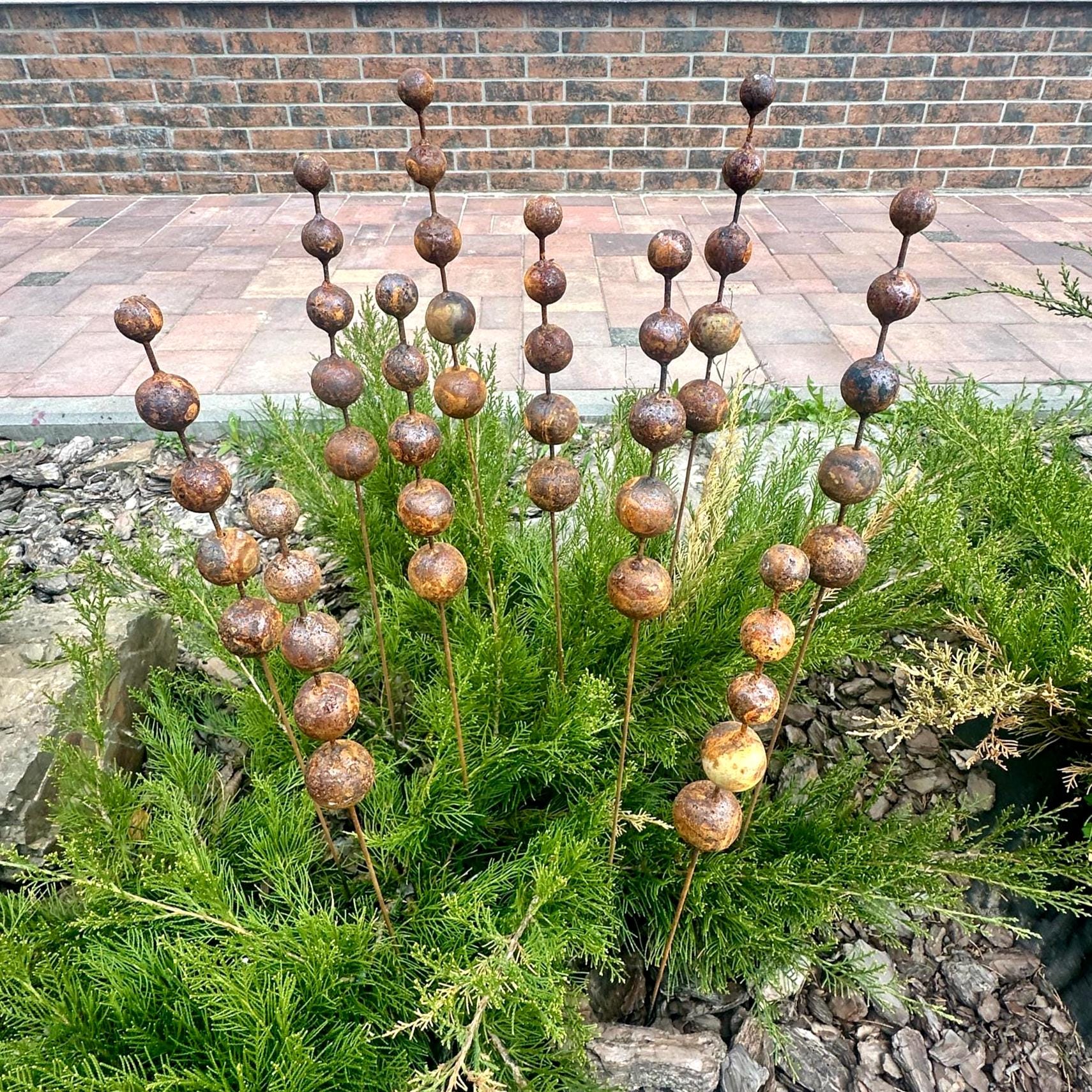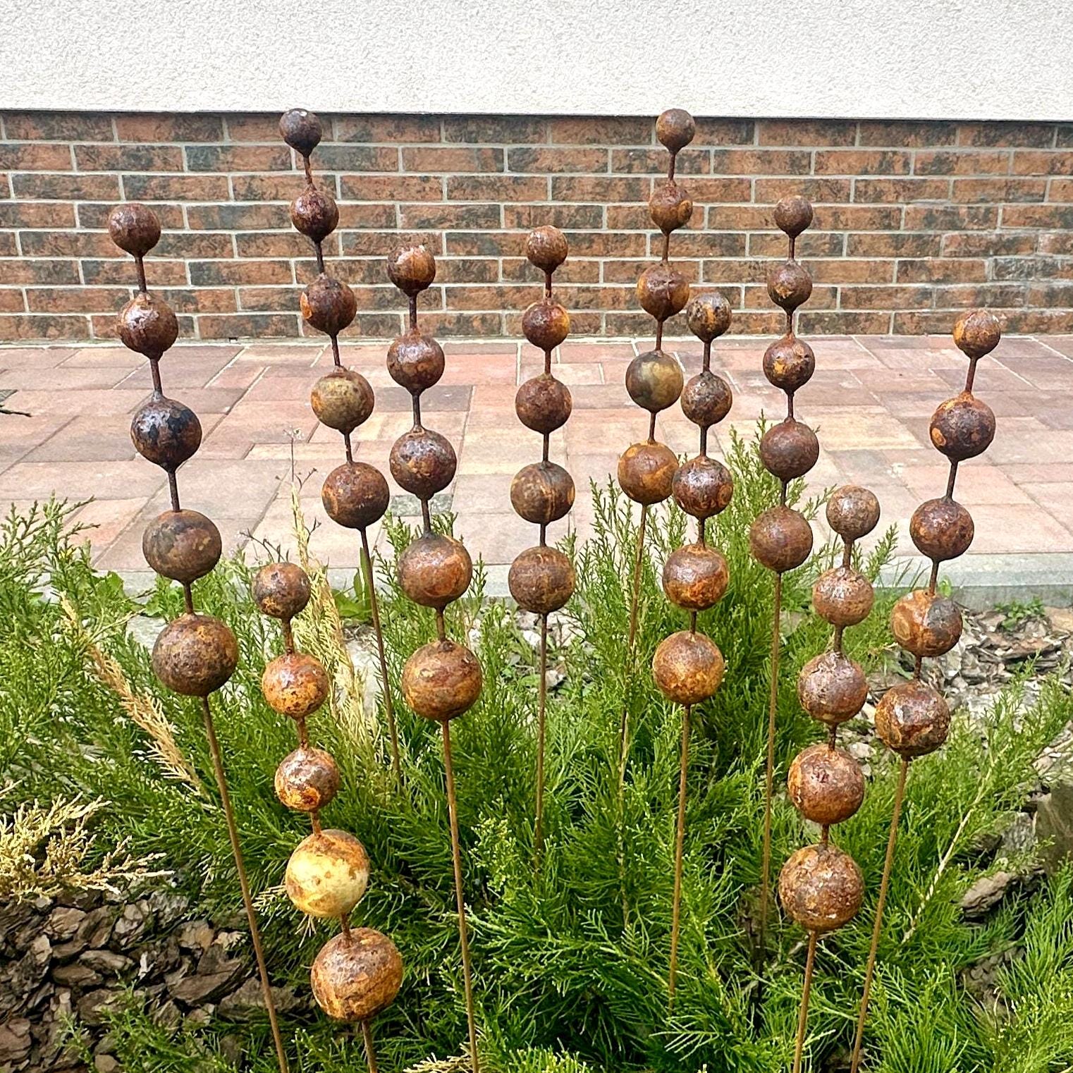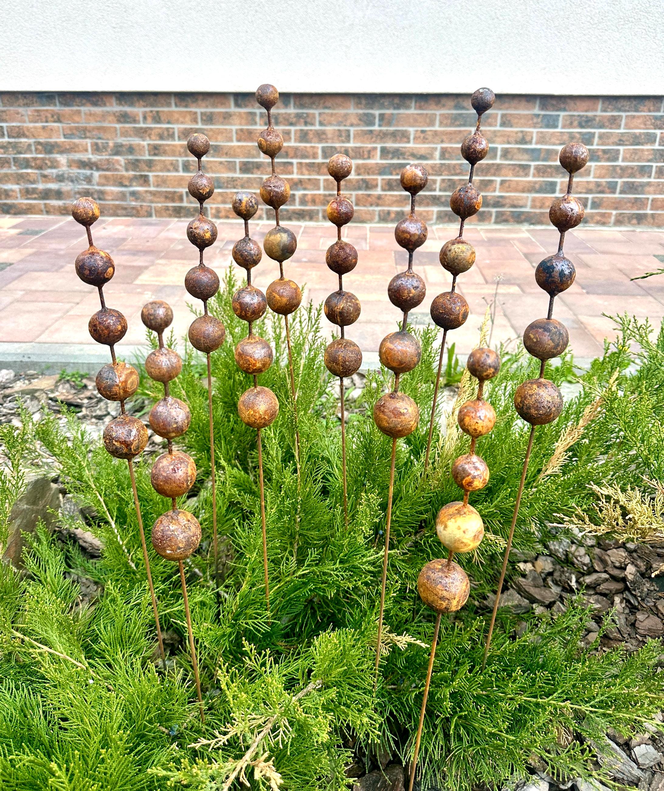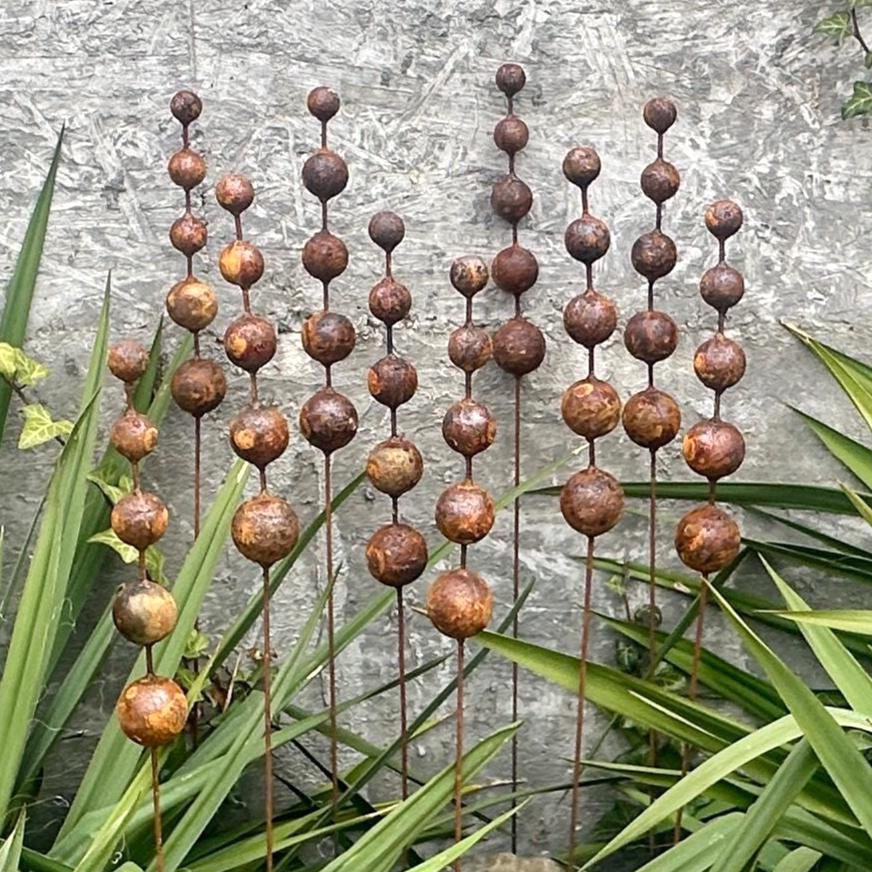 Made from weathering Corten steel, these garden finials develop a rich, rustic patina that only grows more beautiful with time. They shift in color with the weather—glowing warm bronze in sunlight and deepening to earthy tones after rain.