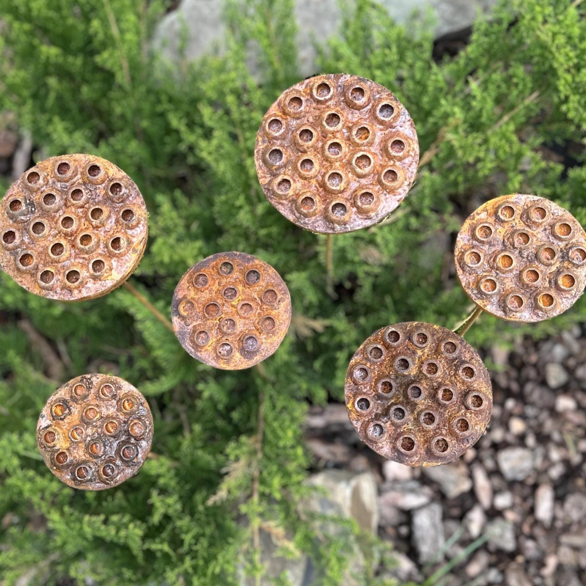 Set of 6 Rustic Metal Lotus Flowers – Unique Handmade Garden Art
