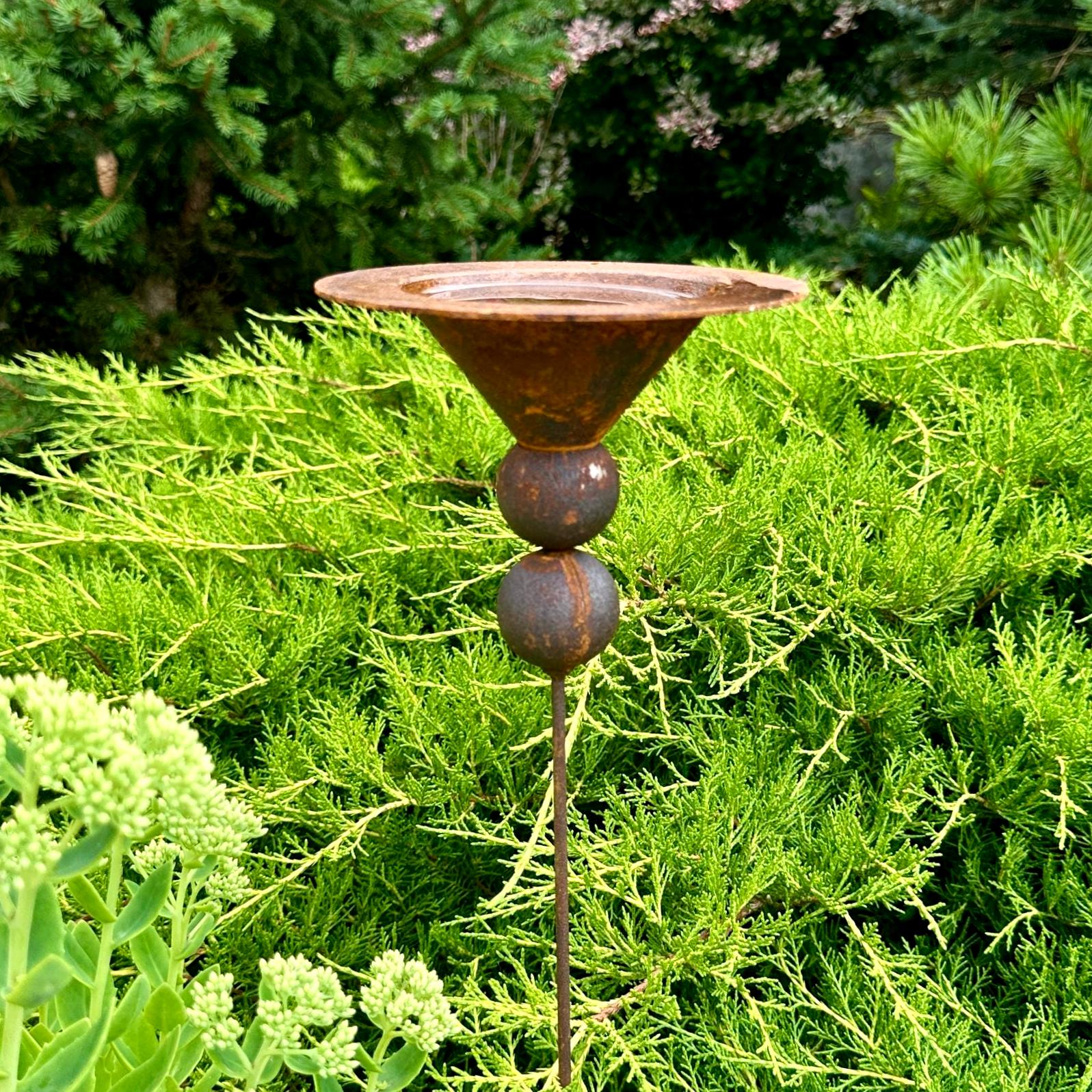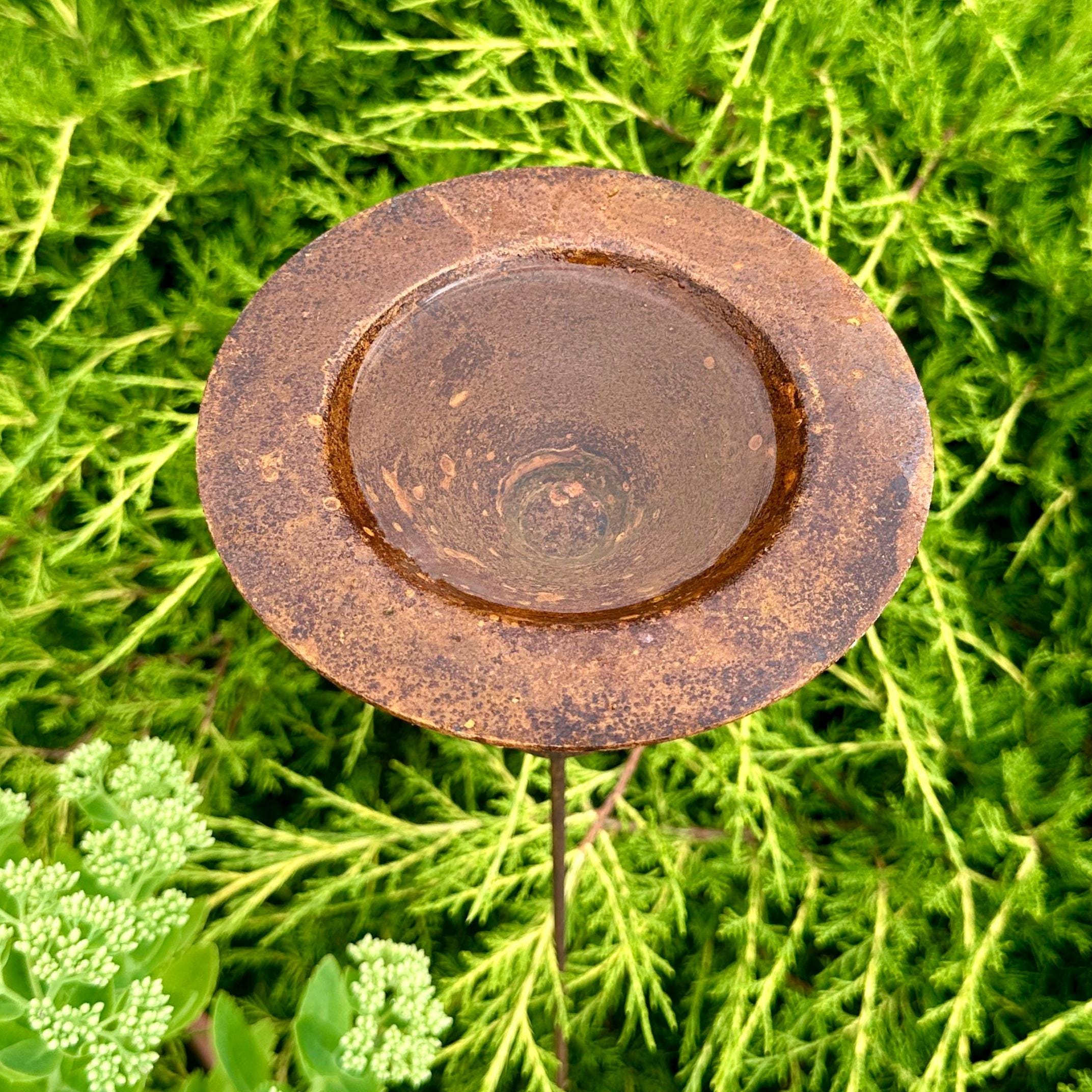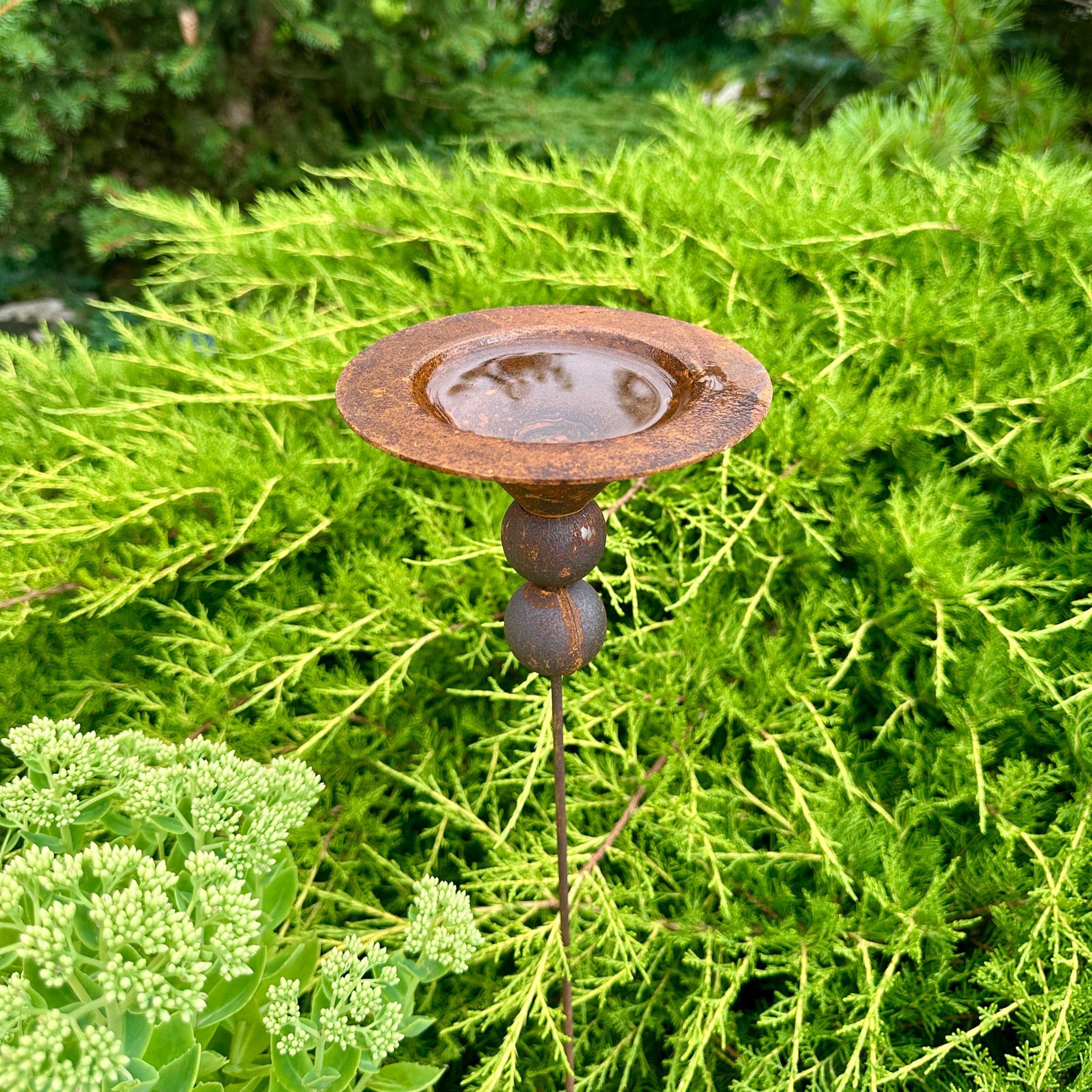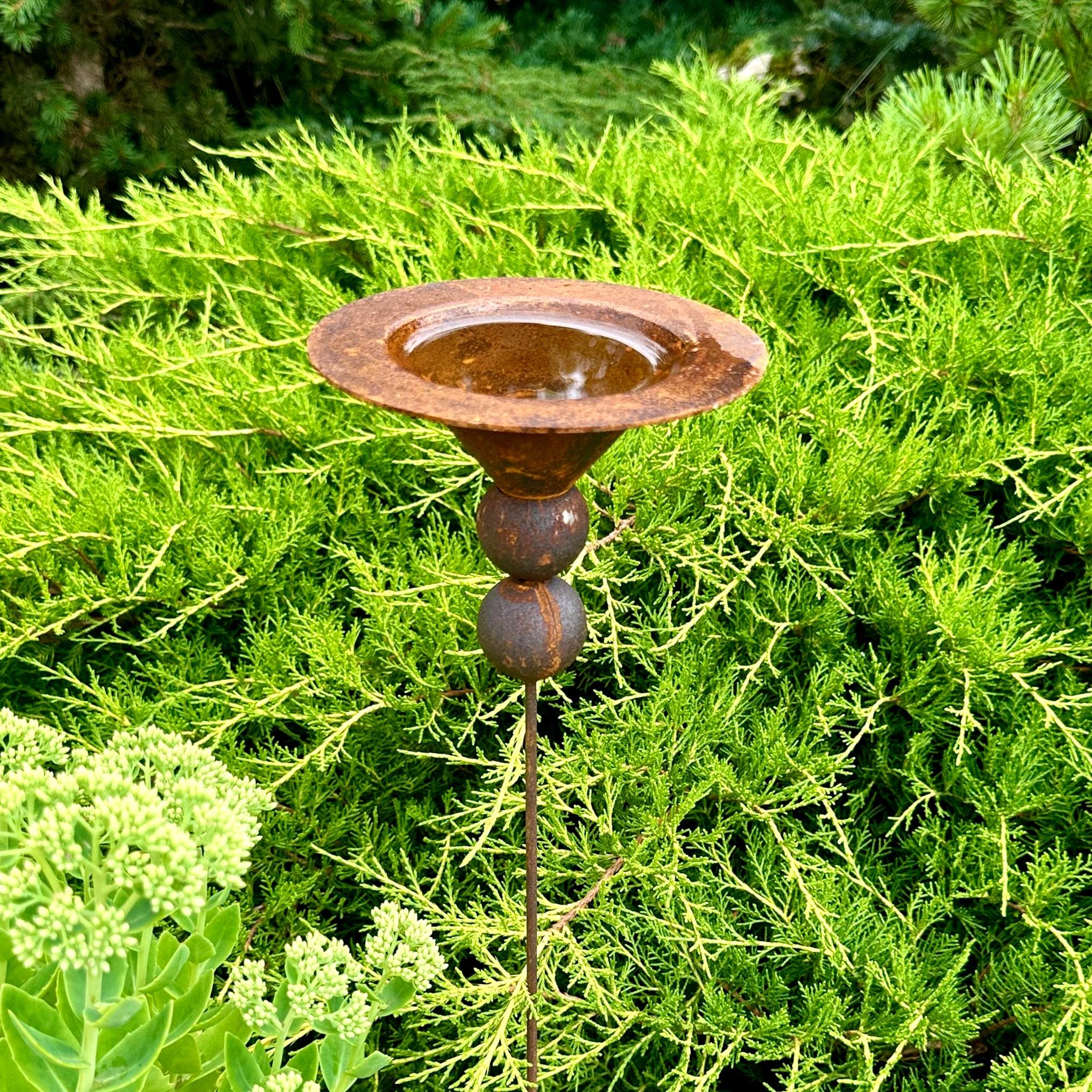 Rustic Metal Garden Rain Catcher – Bird Bath on Stake