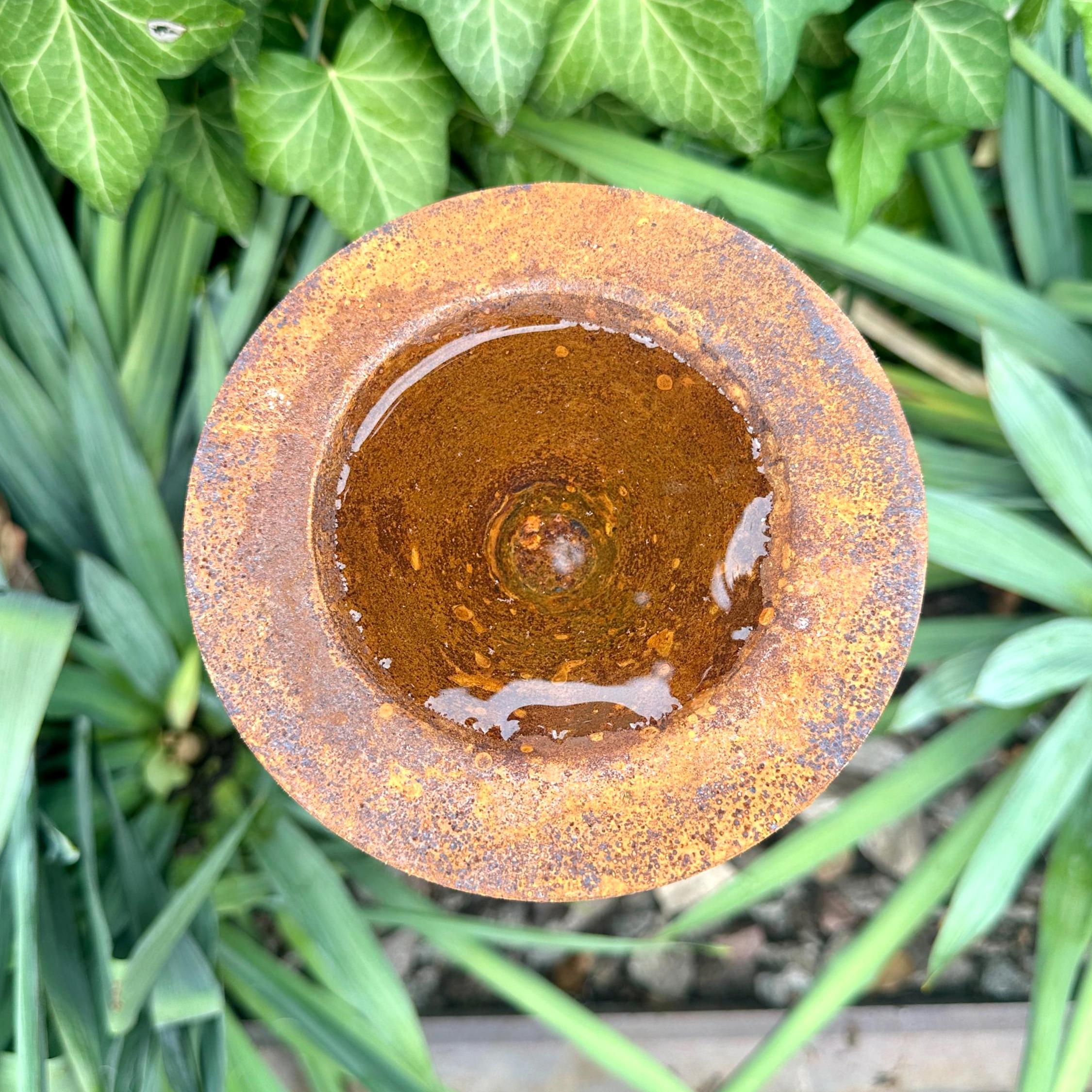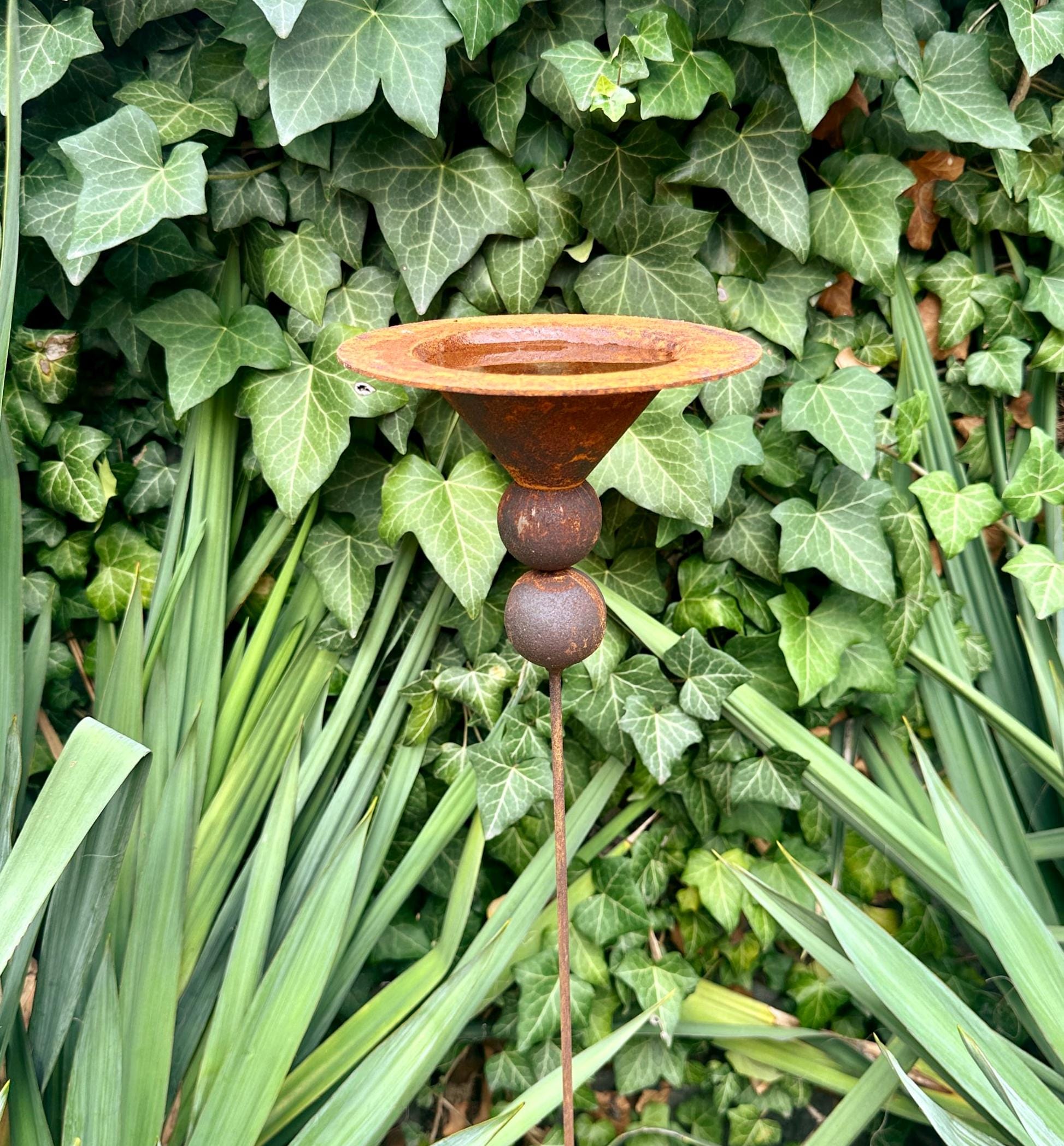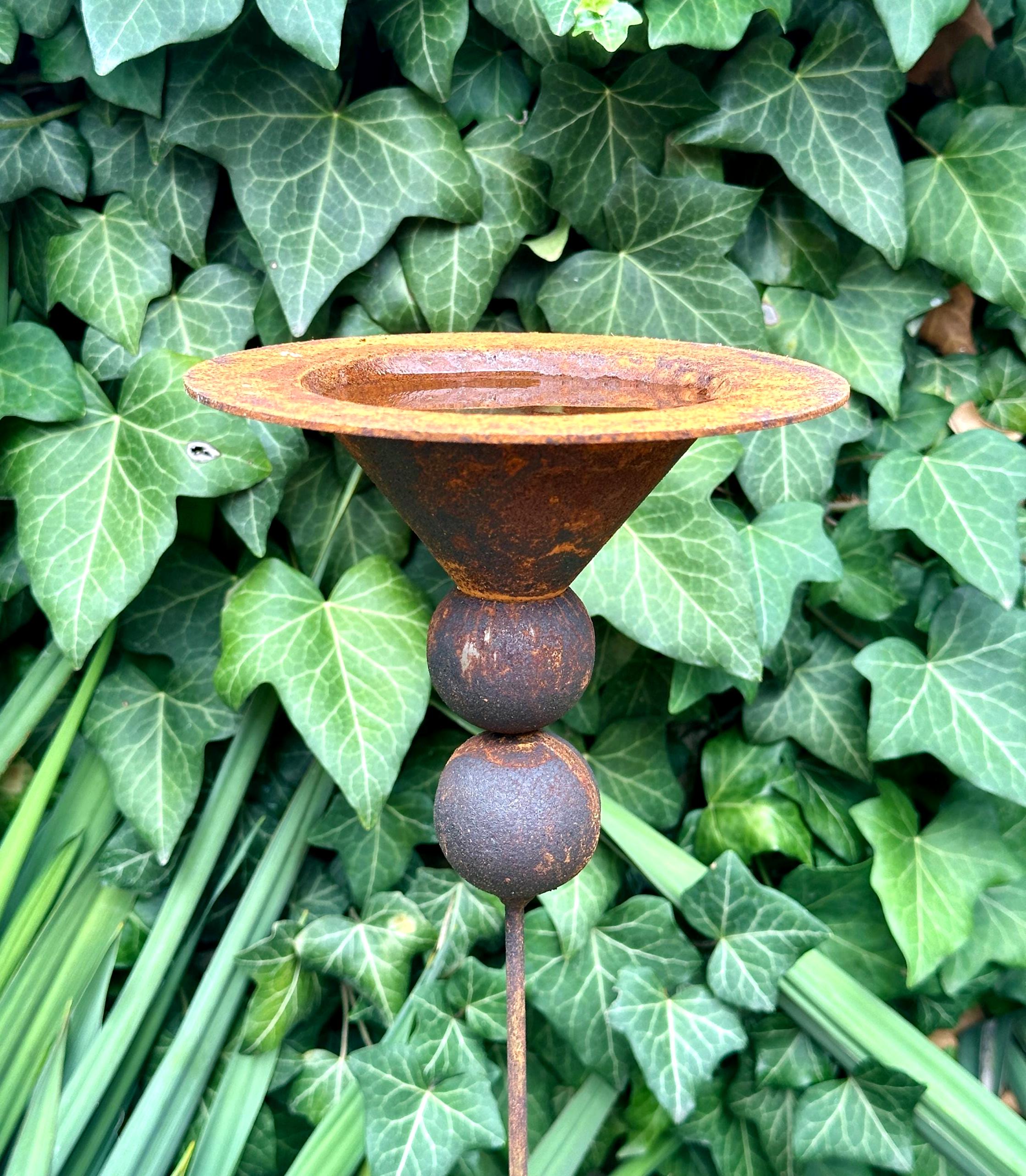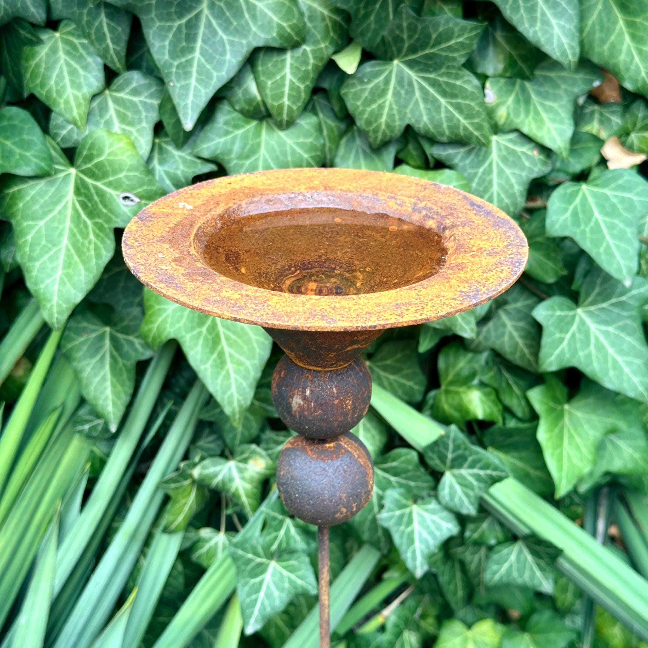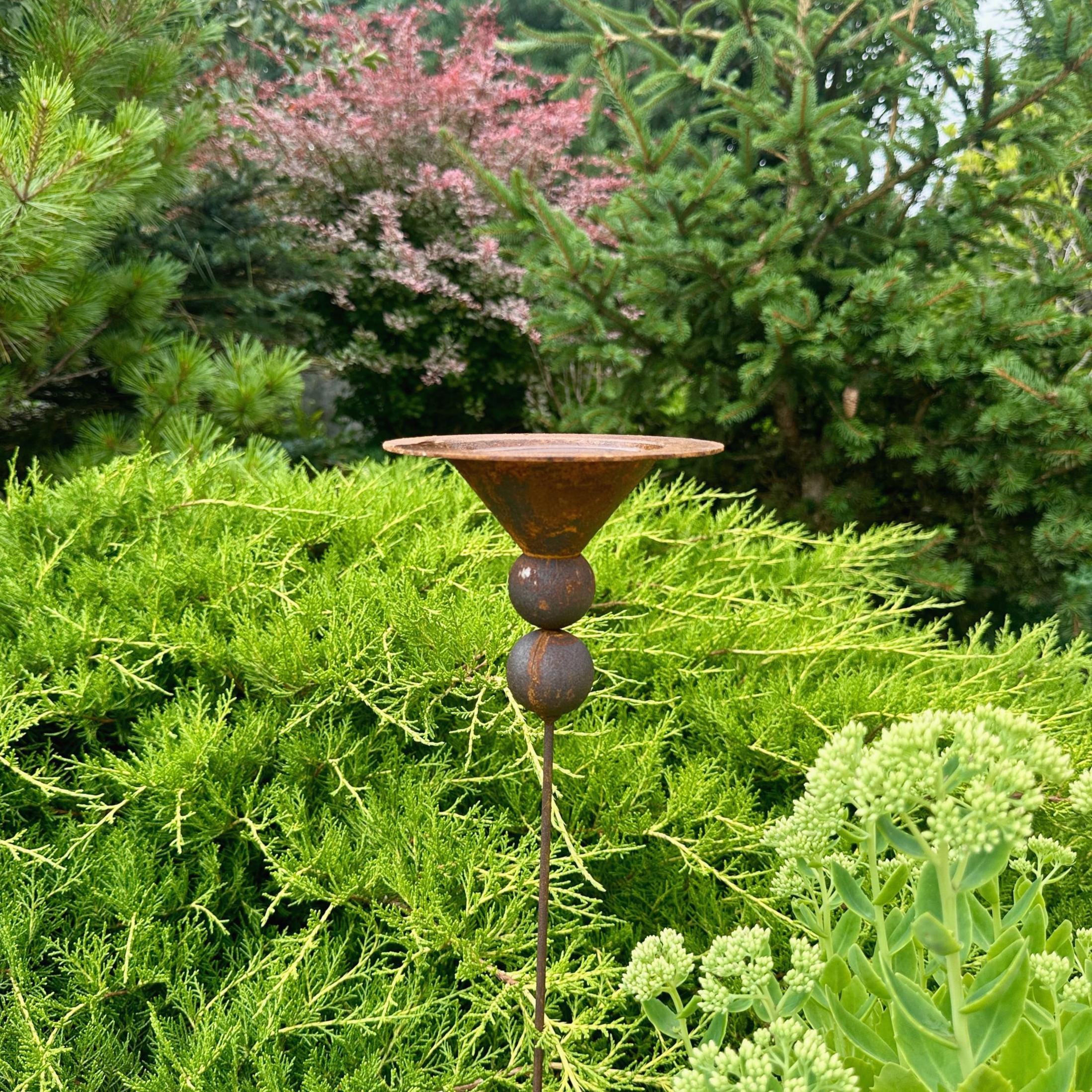 Rustic Metal Garden Rain Catcher – Bird Bath on Stake