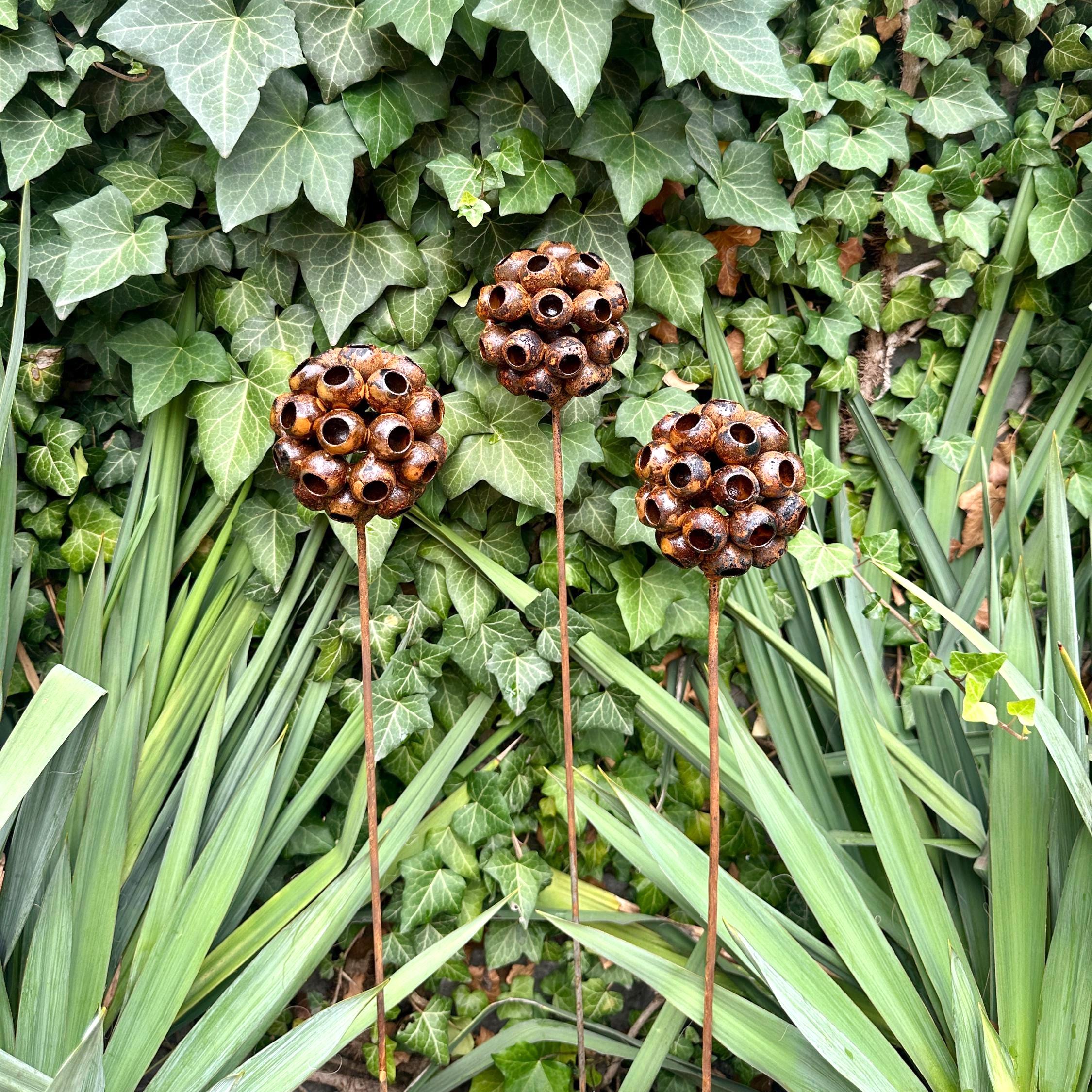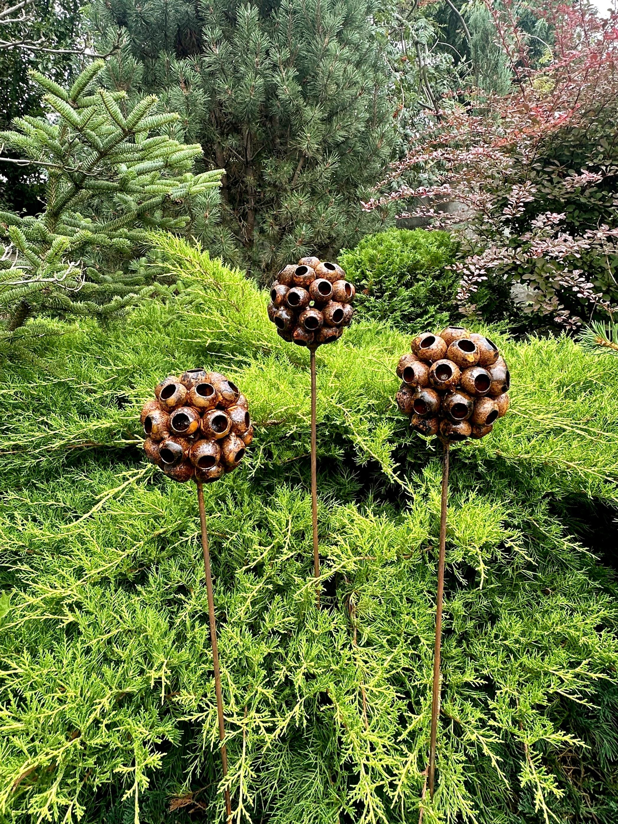 Set of 3 Rustic Metal Exotic Flowers – Unique Garden Art