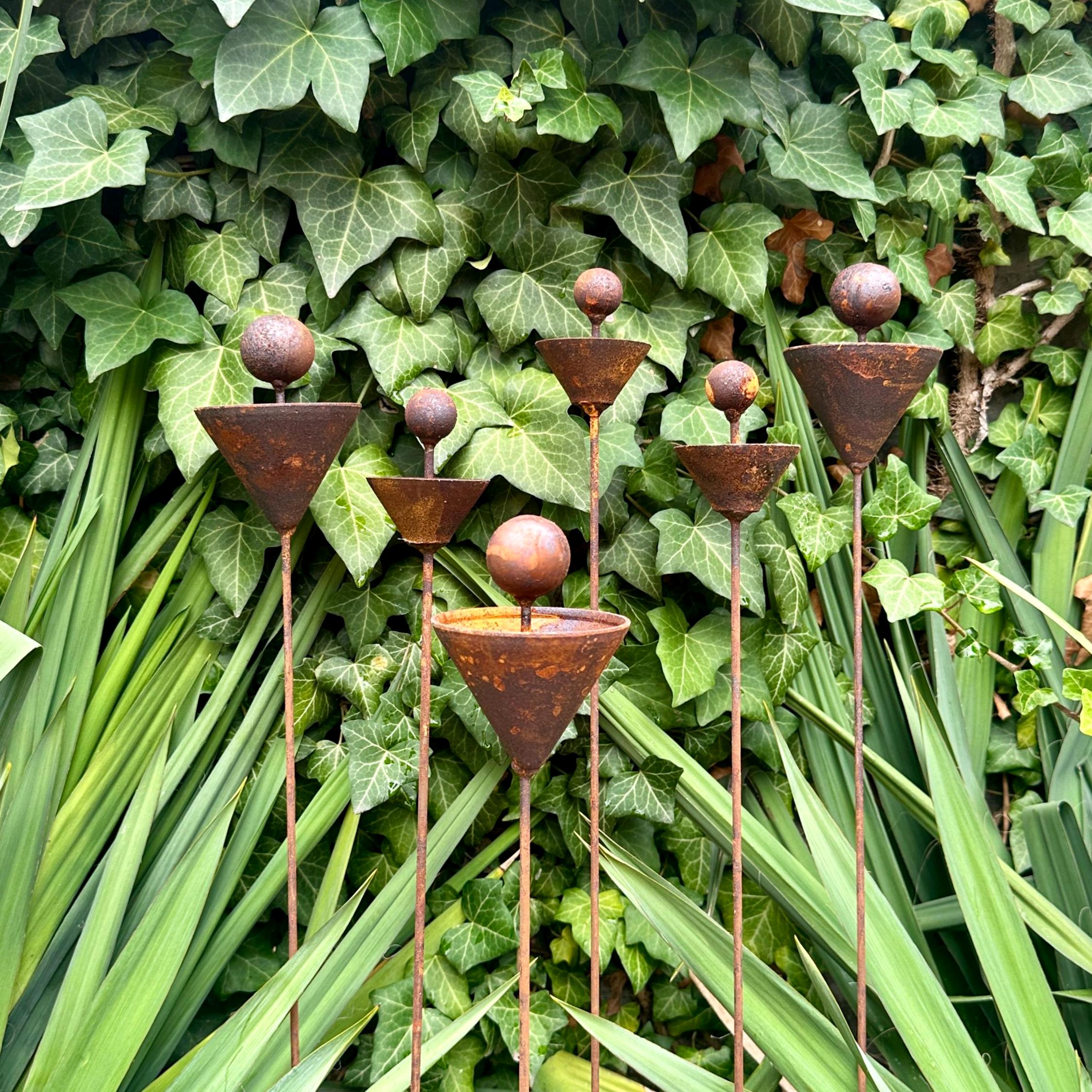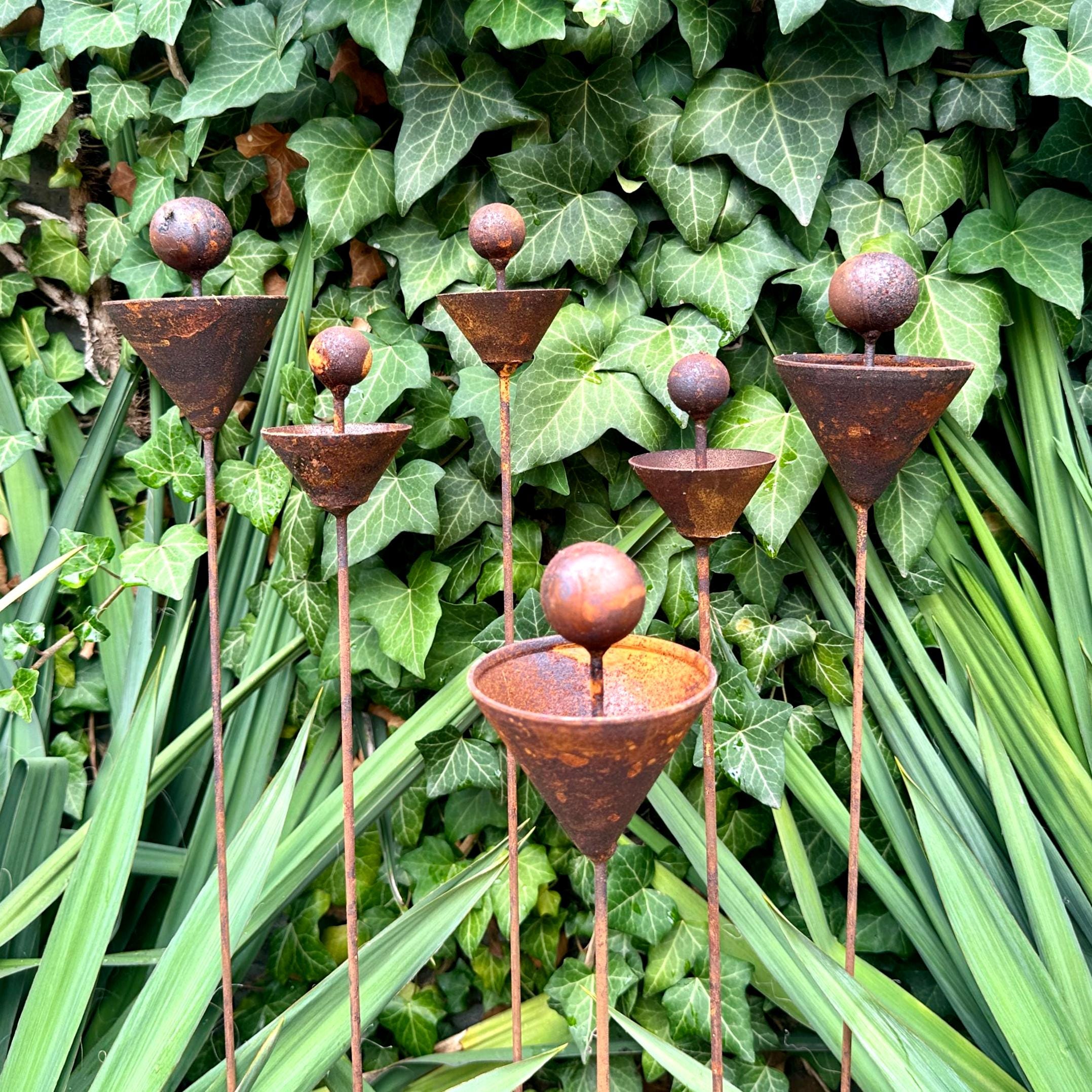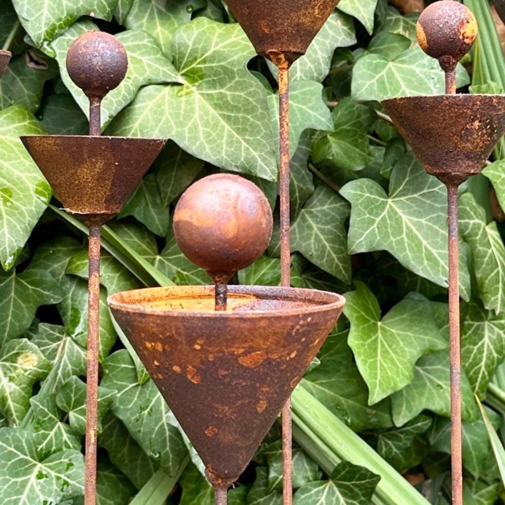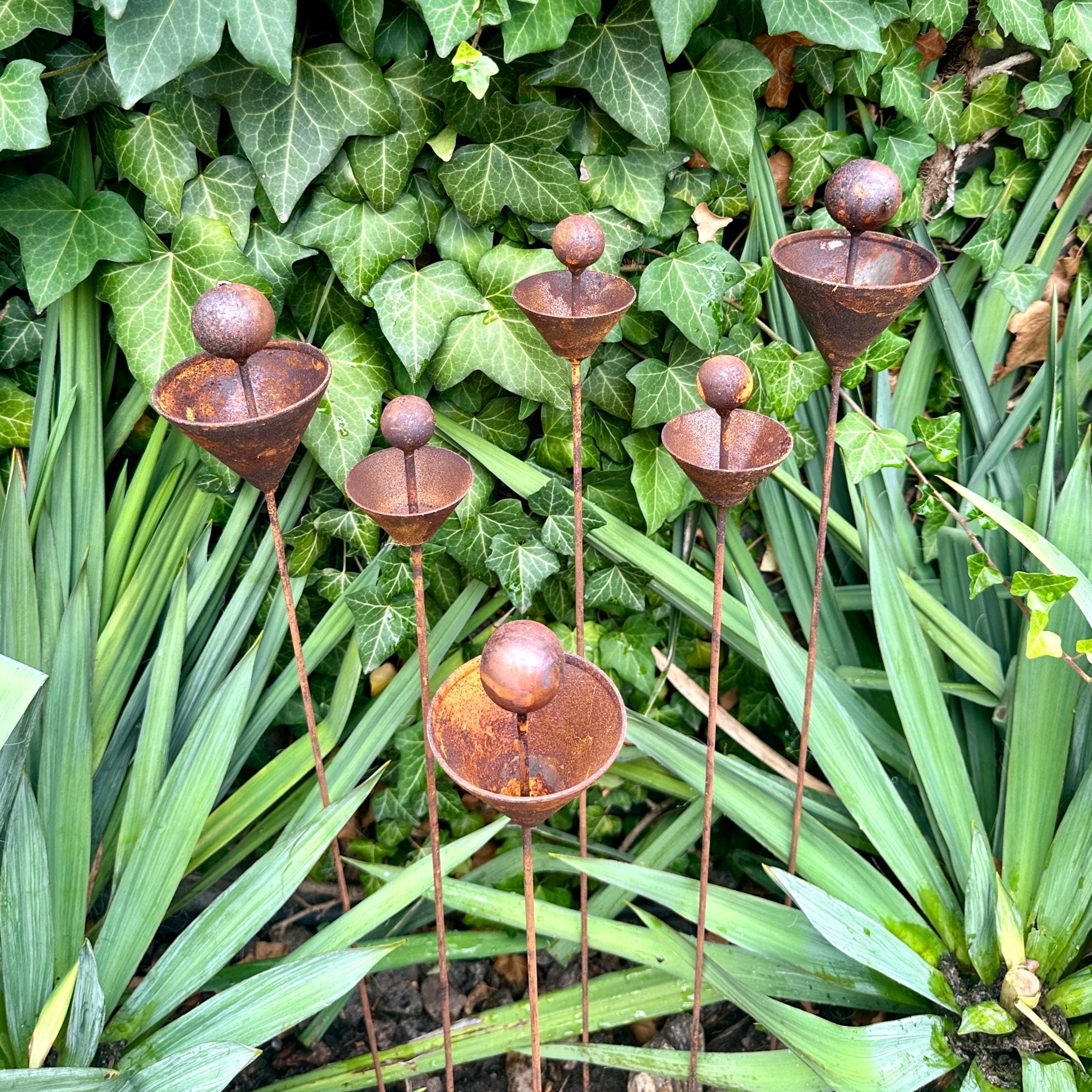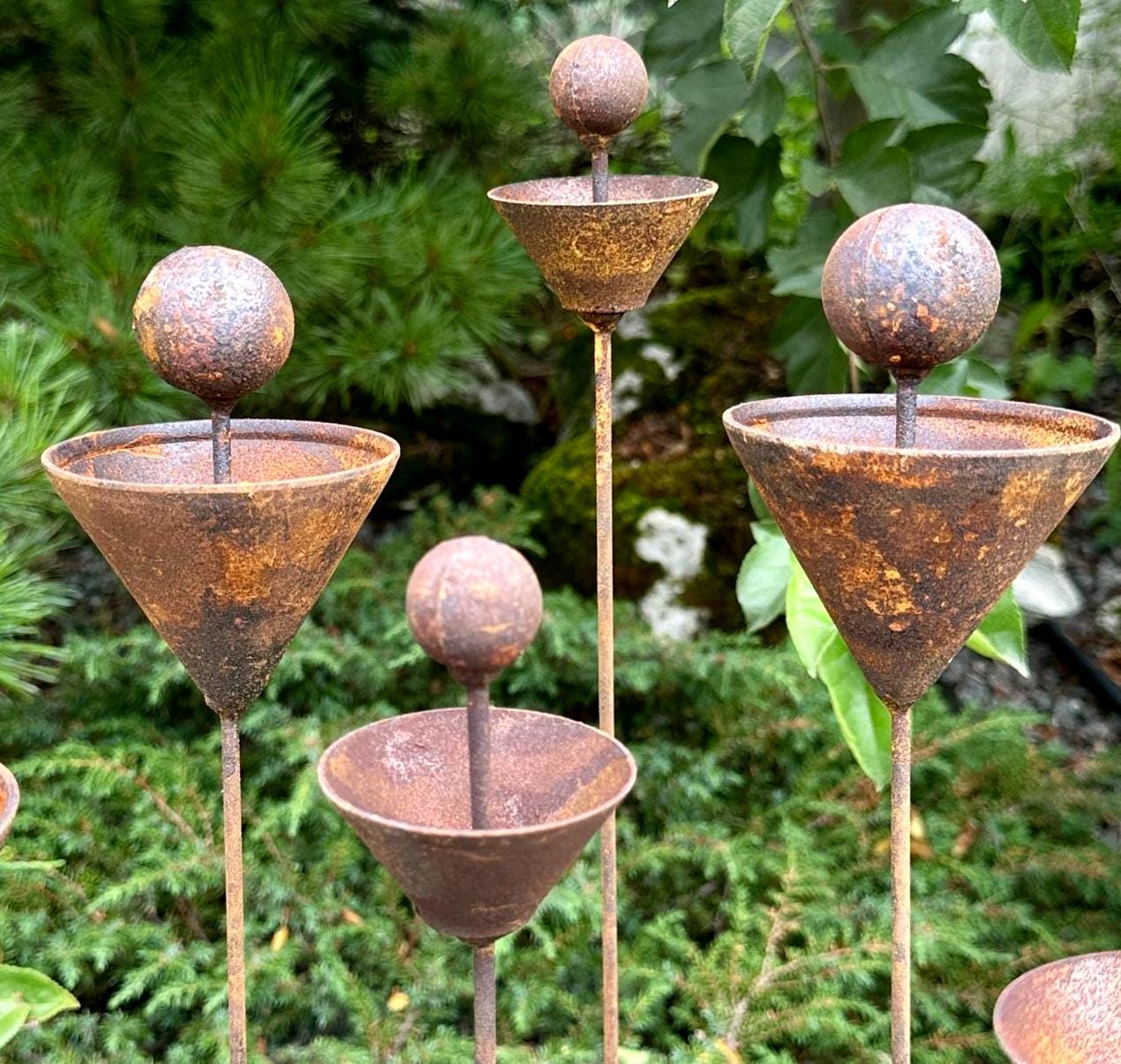 Handcrafted from natural steel and covered with a natural rust finish, these sculptures are made to withstand the elements year-round — resistant to rain, snow, and direct sunlight. Each flower is mounted on its own sturdy metal stake, allowing you to arrange them individually in beds, planters, or throughout your garden.